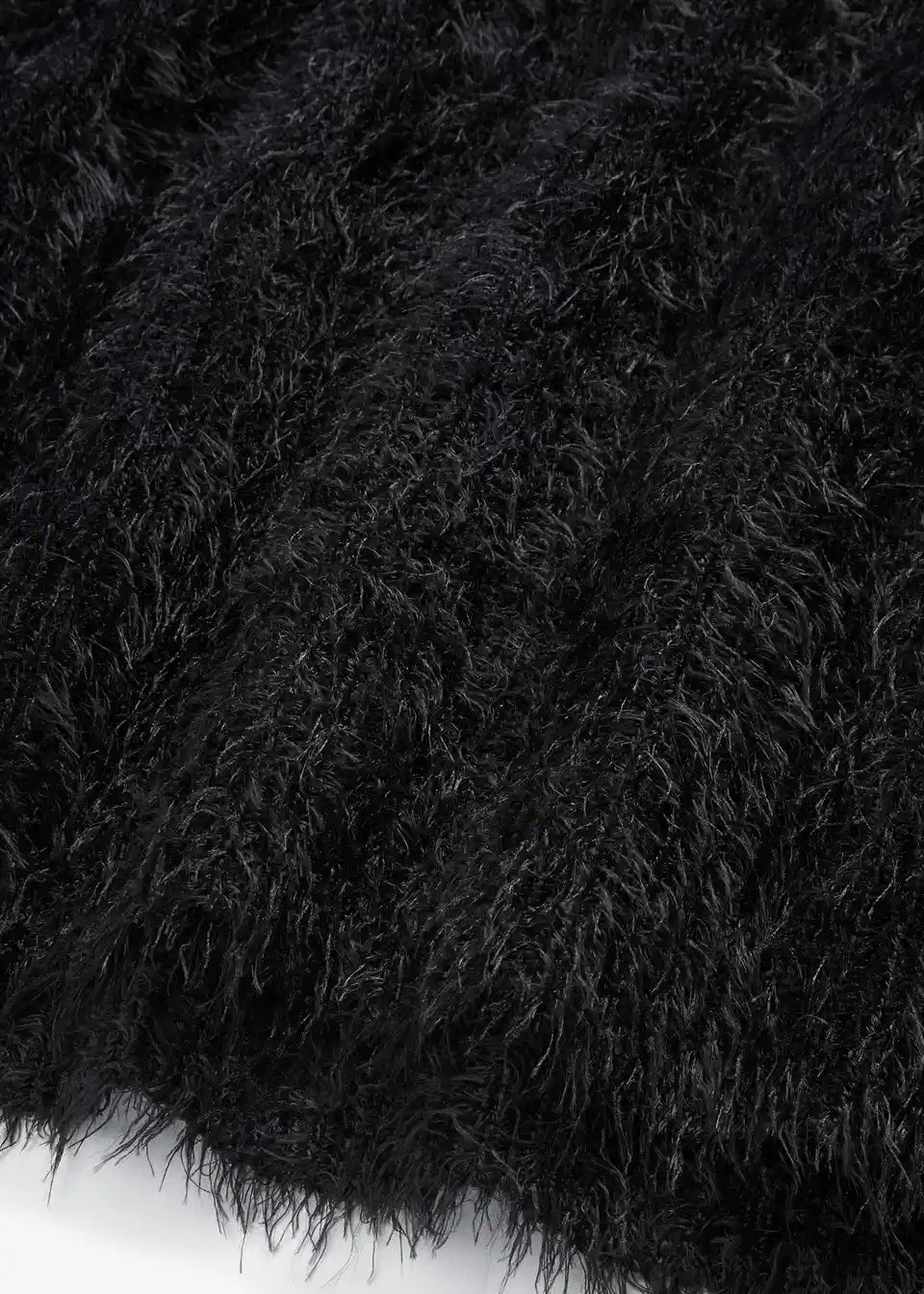 Pulover s širokimi rokavi in puhastimi vlakni v kvadratnem kroju