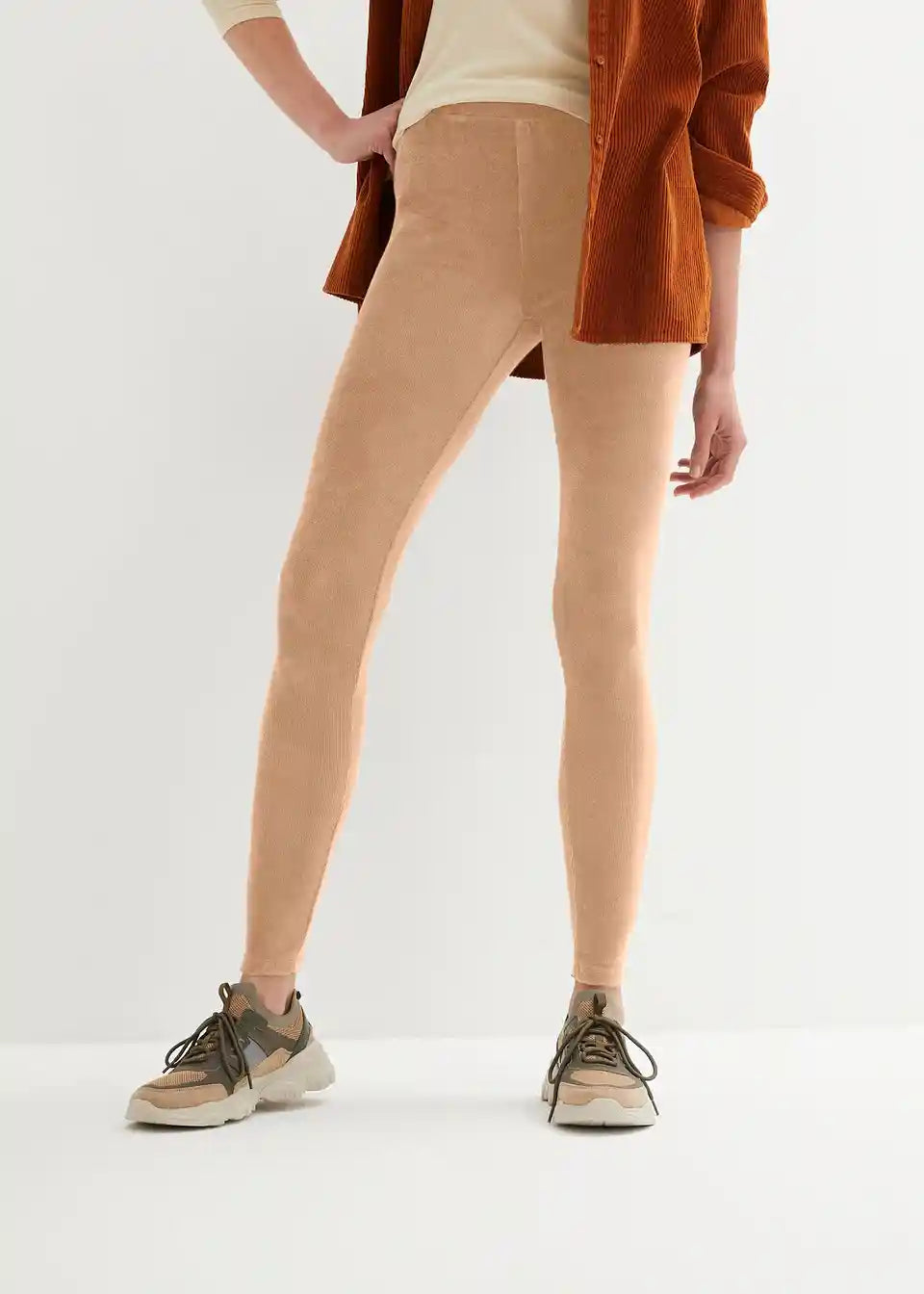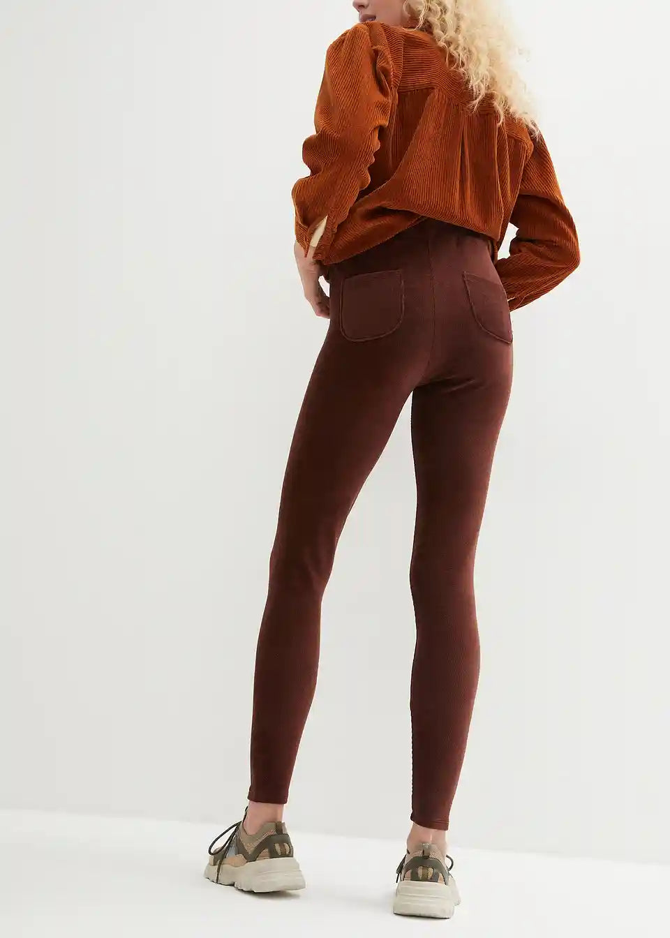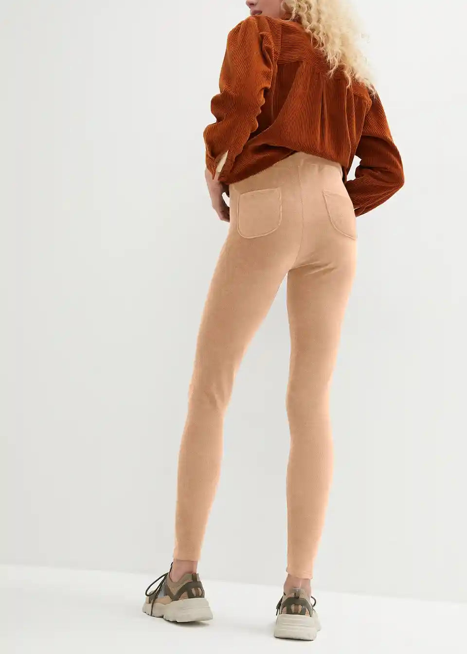 Udobne leggins iz finega žameta oblikujejo postavo s svojim širokim udobnim pasom