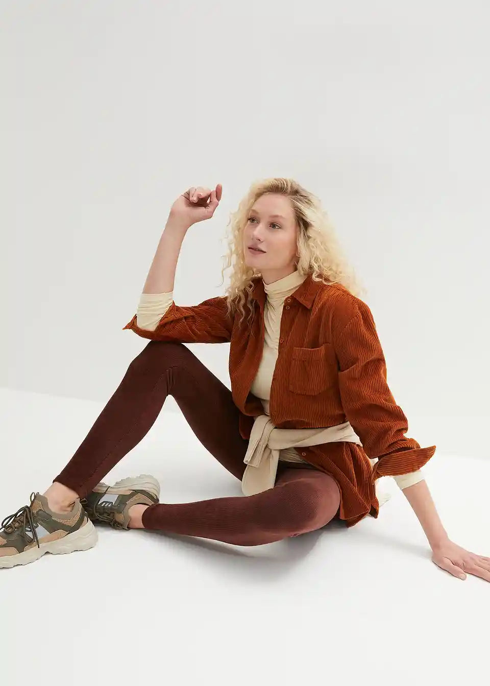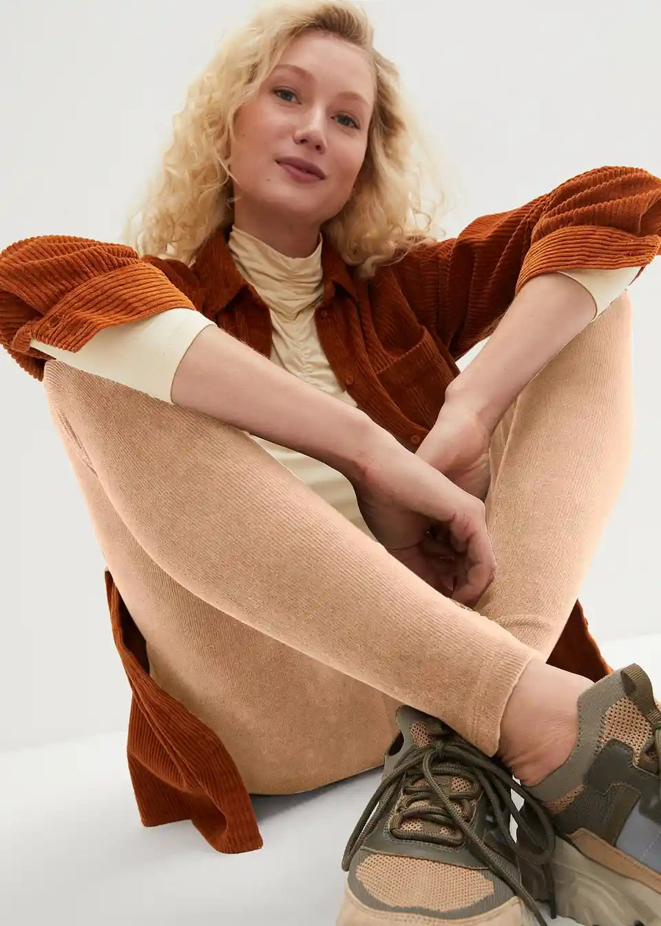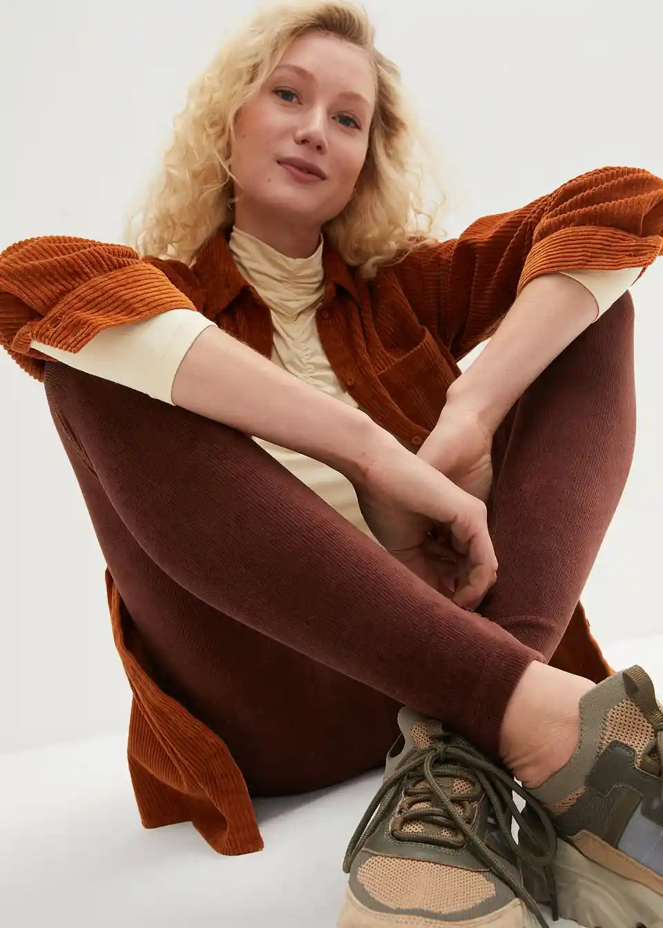 Udobne leggins iz finega žameta oblikujejo postavo s svojim širokim udobnim pasom