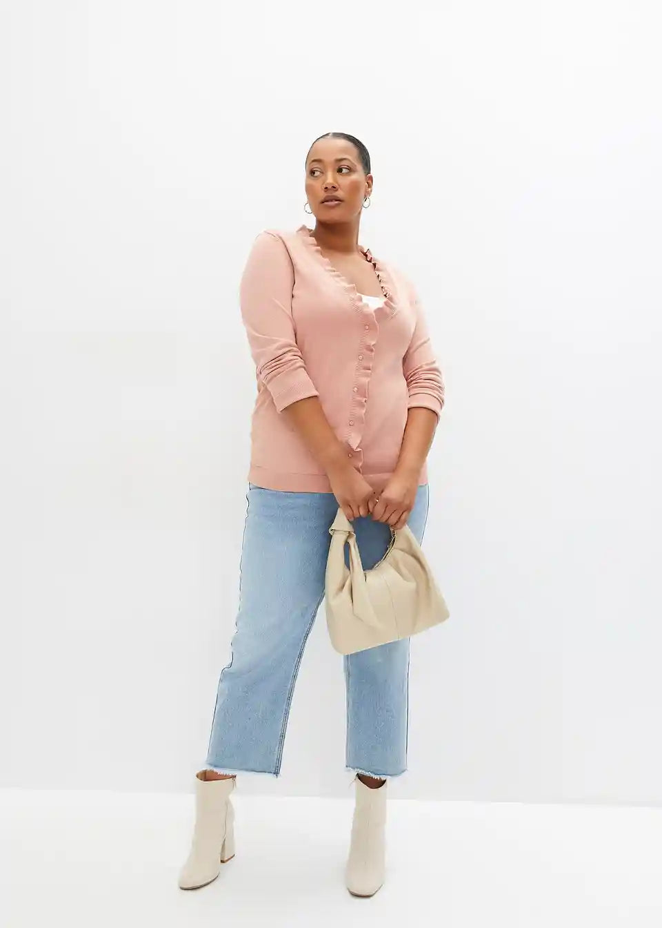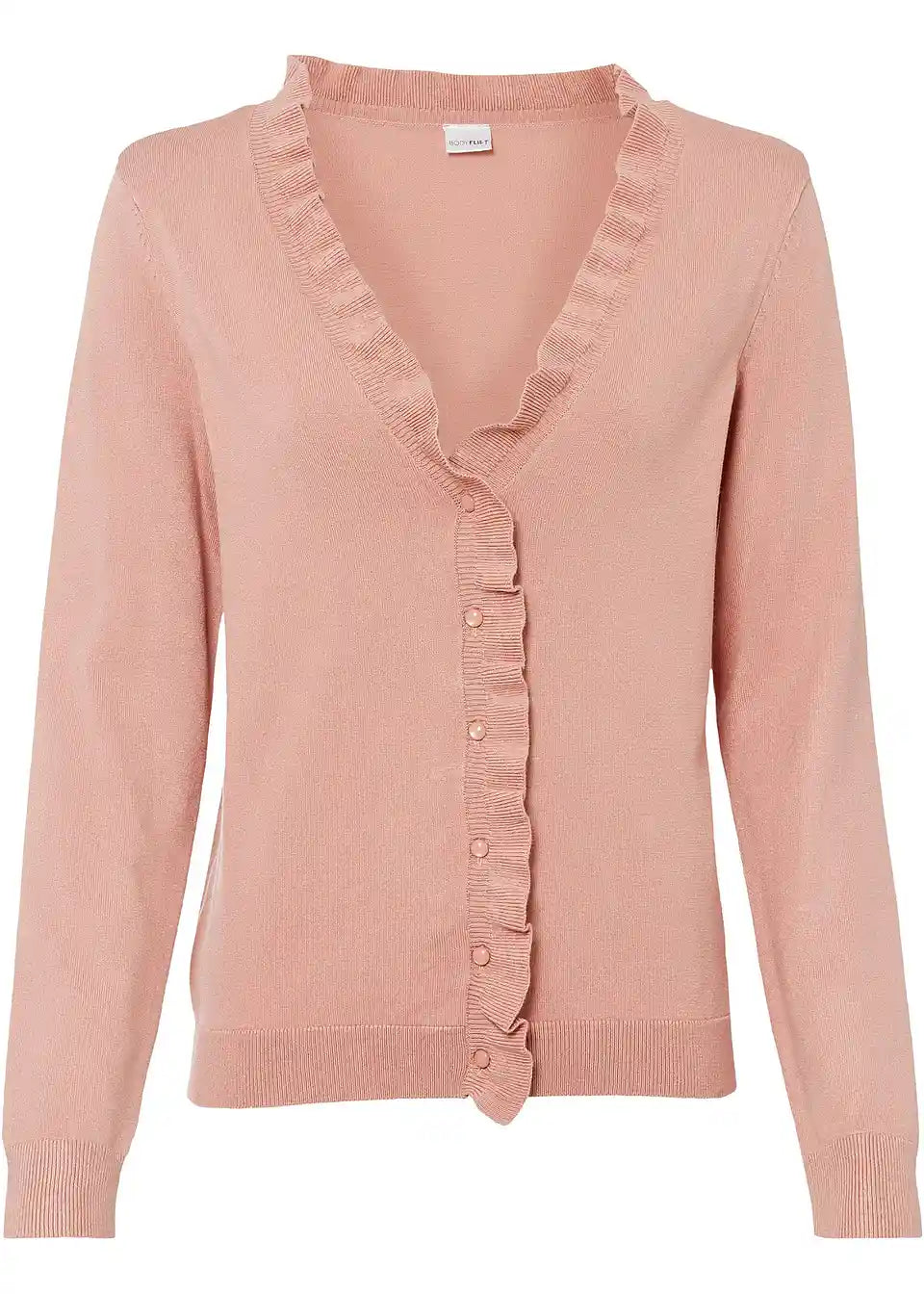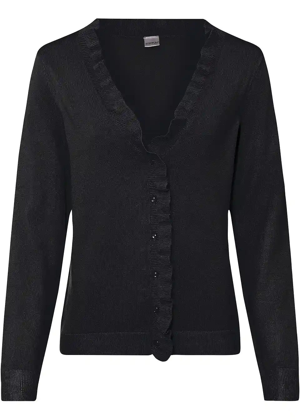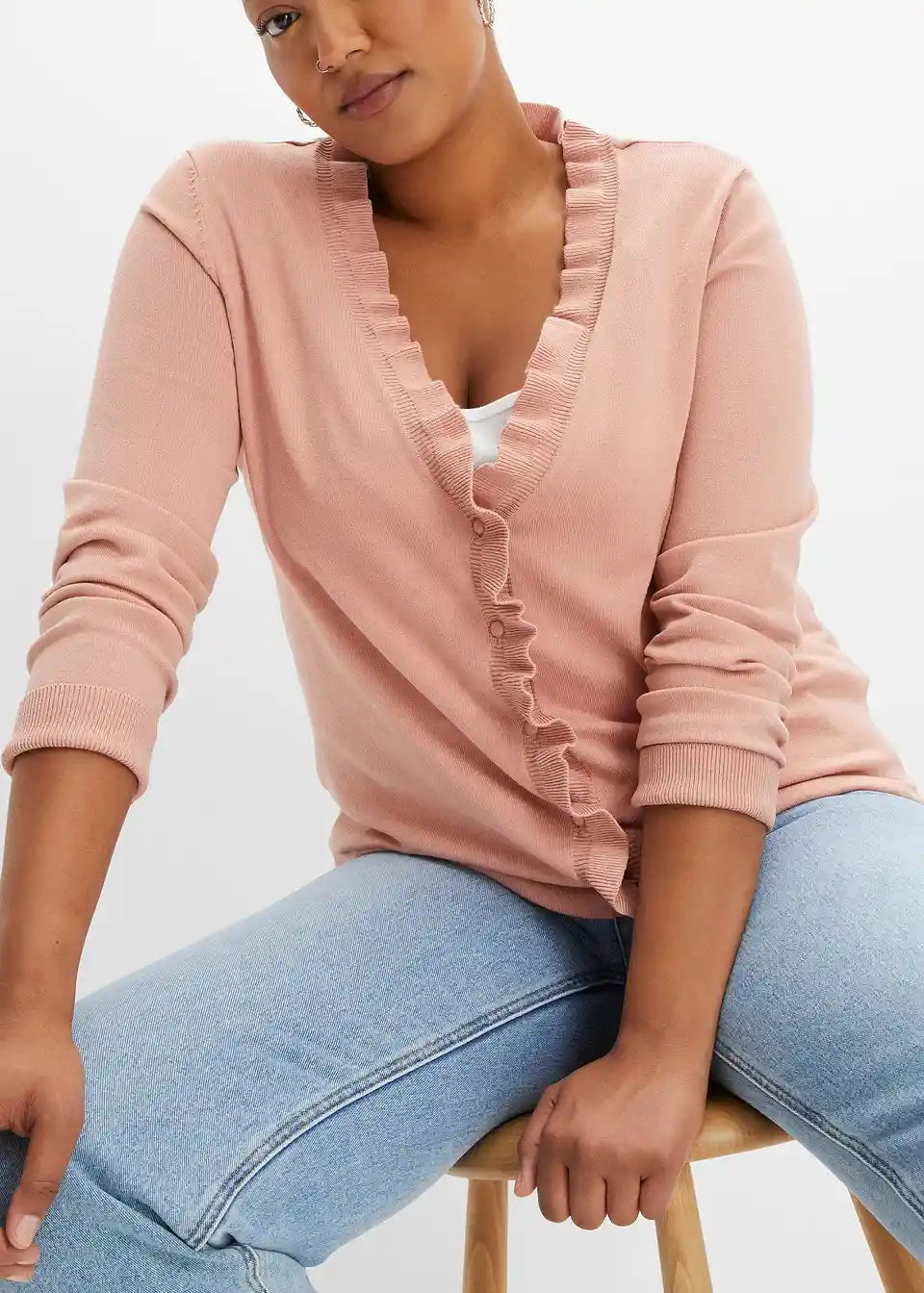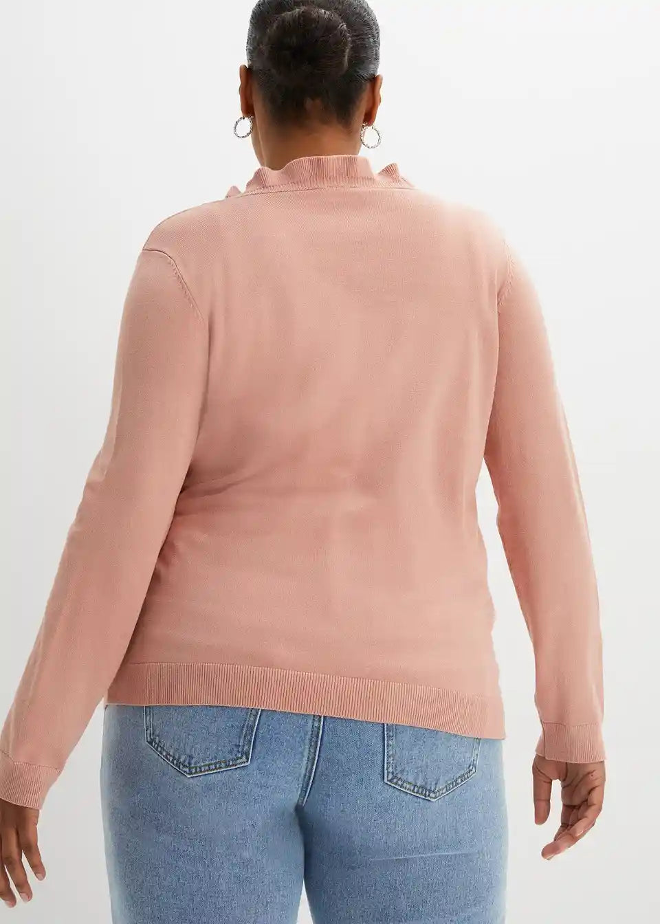 Mehka pletena jopica z igrivim naborkastim ovratnikom.
