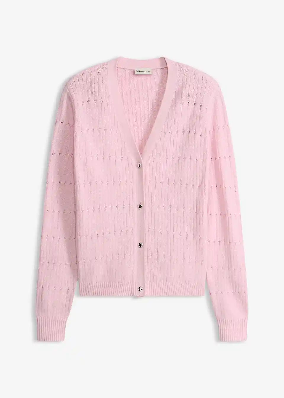 Ženstvena pletena jopa z gumbi v obliki srca