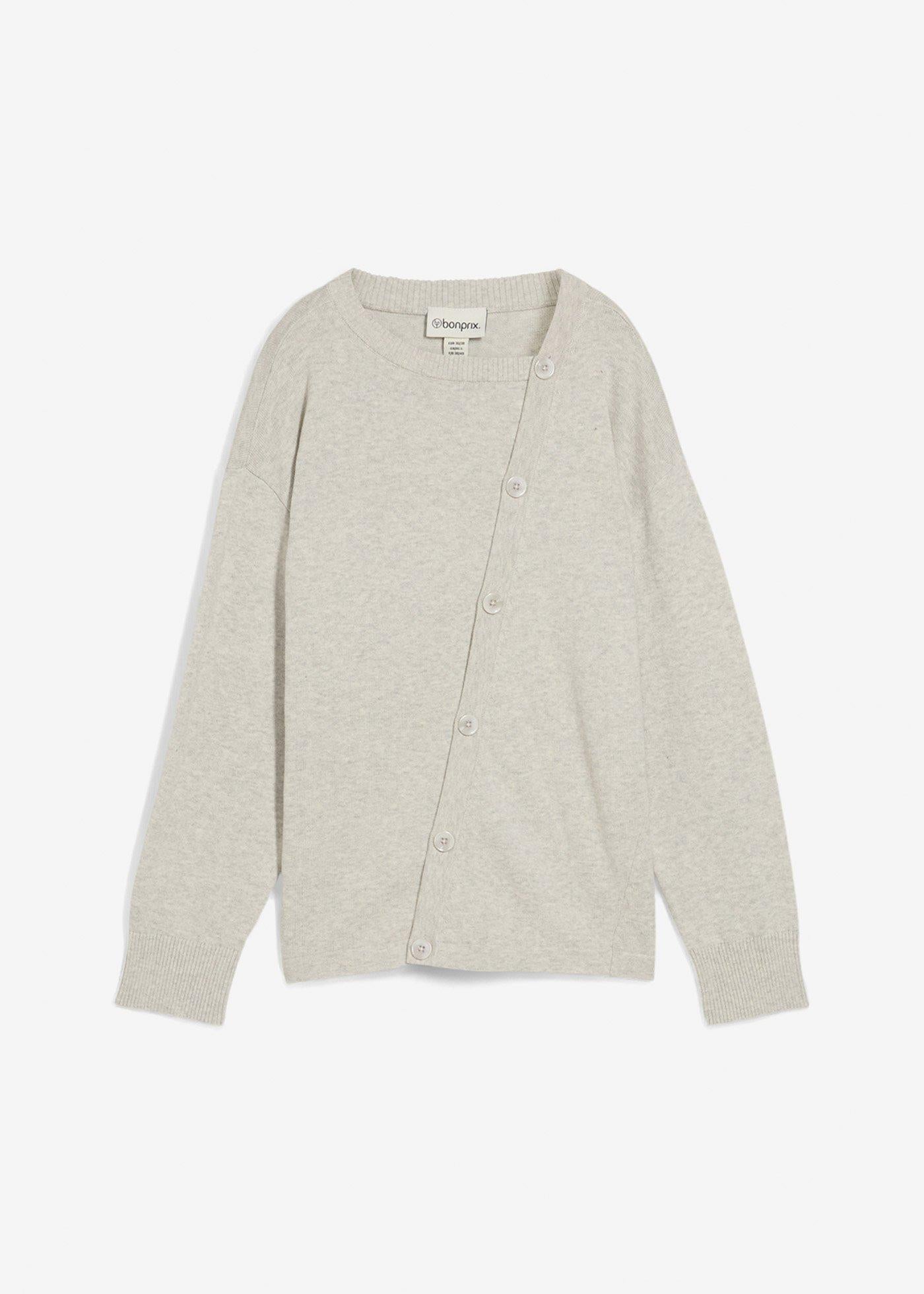 Fino pleten pulover z asimetrično letvijo za zapenjanje z gumbi