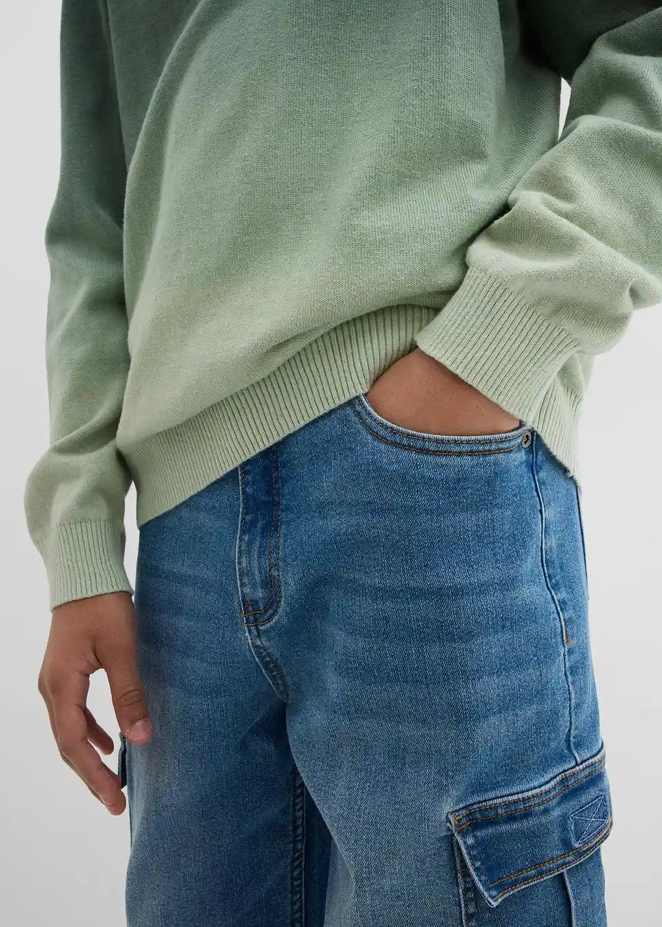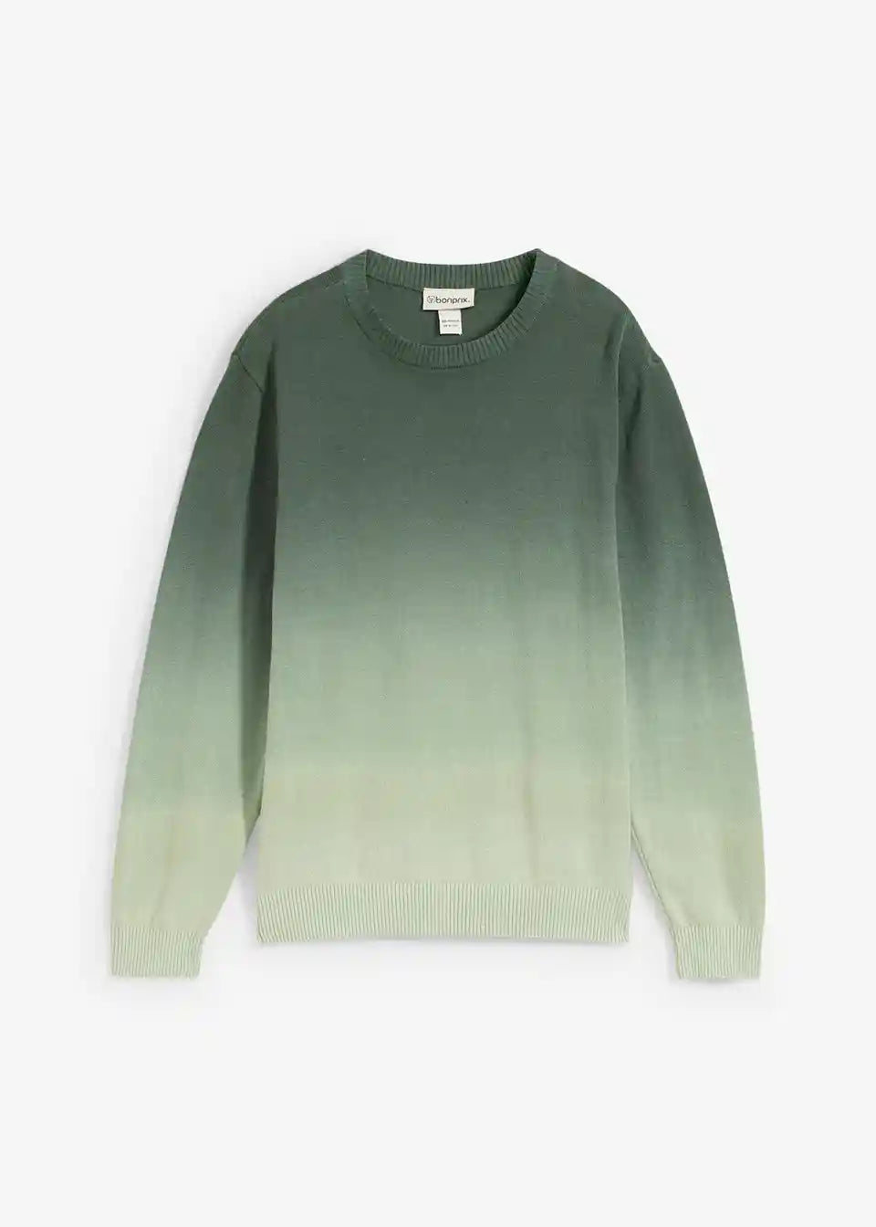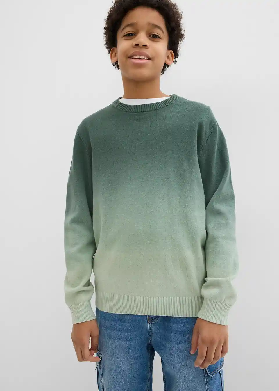 Fantovski fino pleten pulover z barvnim prehodom in okroglim izrezom