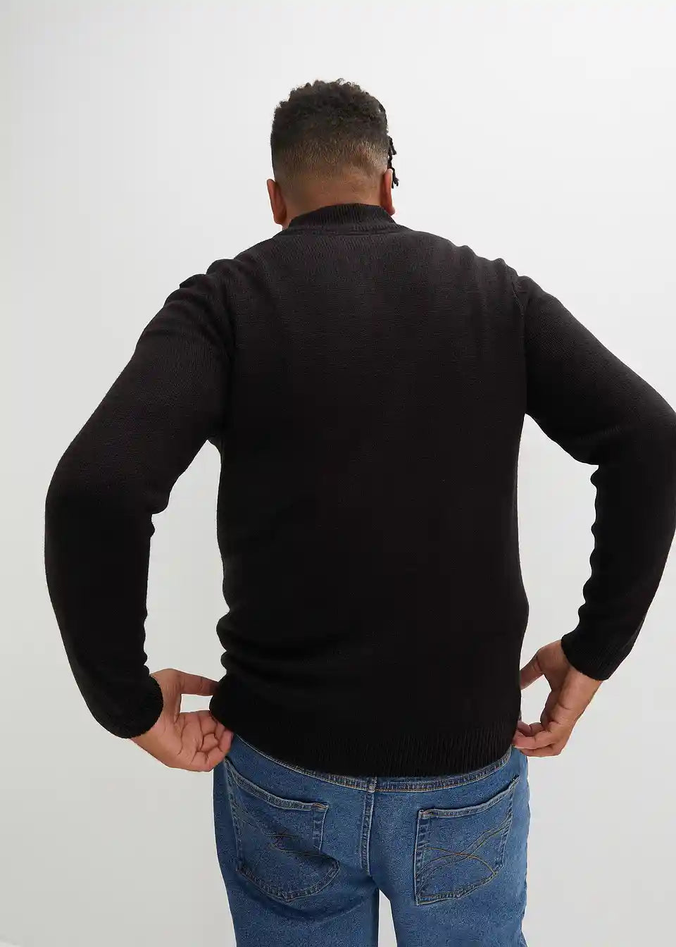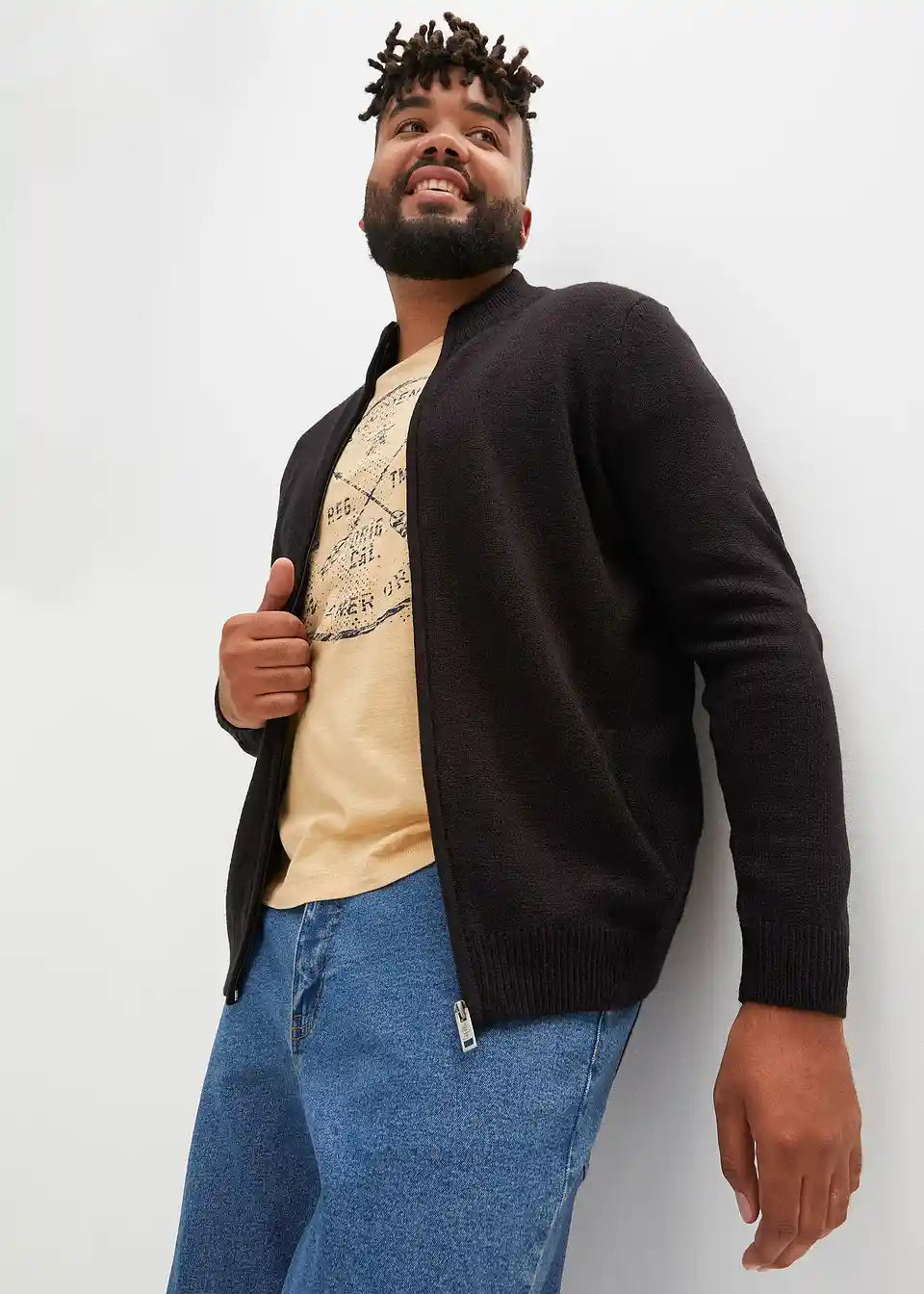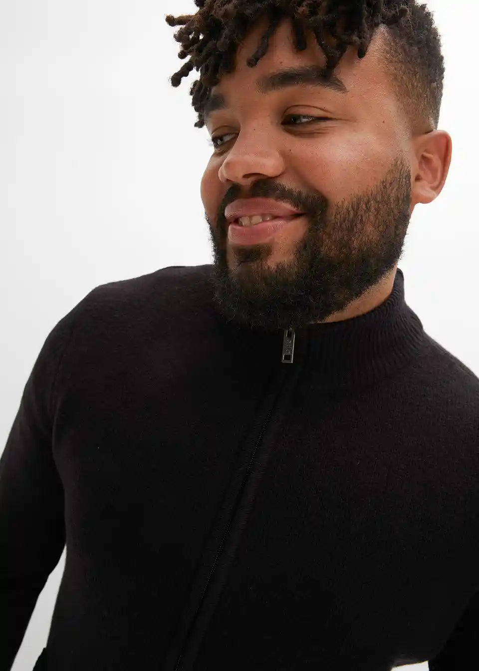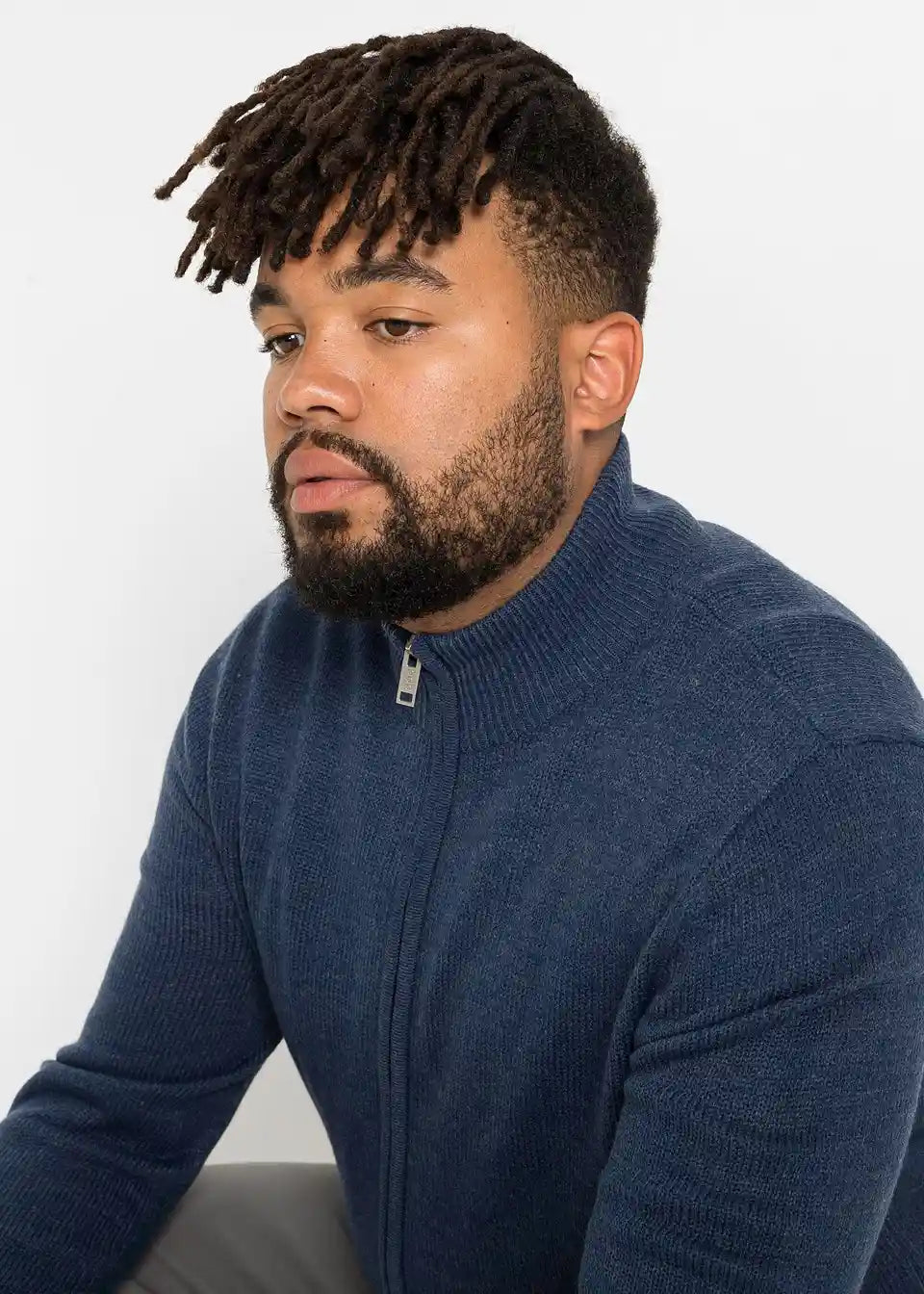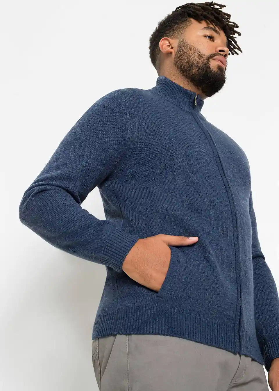 Pletena jopa s stoječim ovratnikom in zadrgo na sprednji sredini.