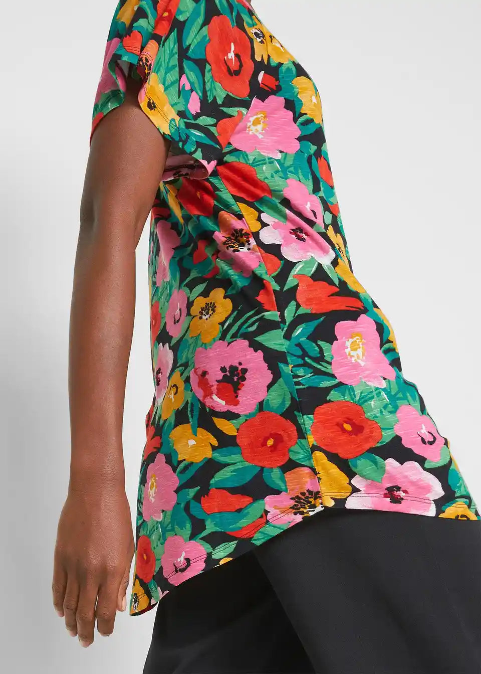 Udobna Flammgarn-majica z krilnimi rokavi in dekorativnimi gubanimi detajli
