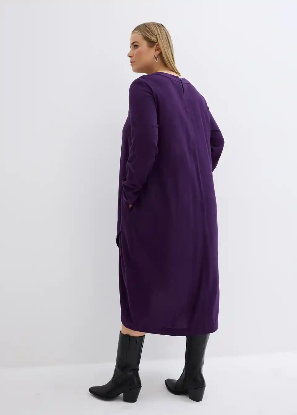 Sodobna bombažna obleka z O-krojem v midi dolžini