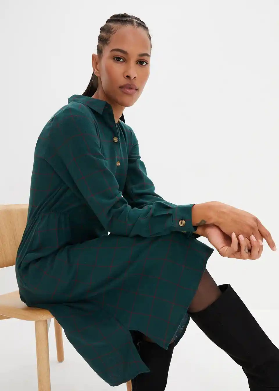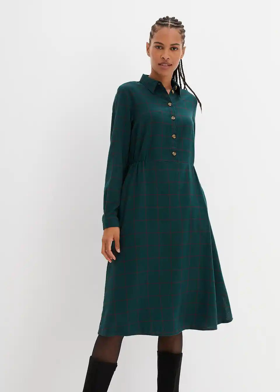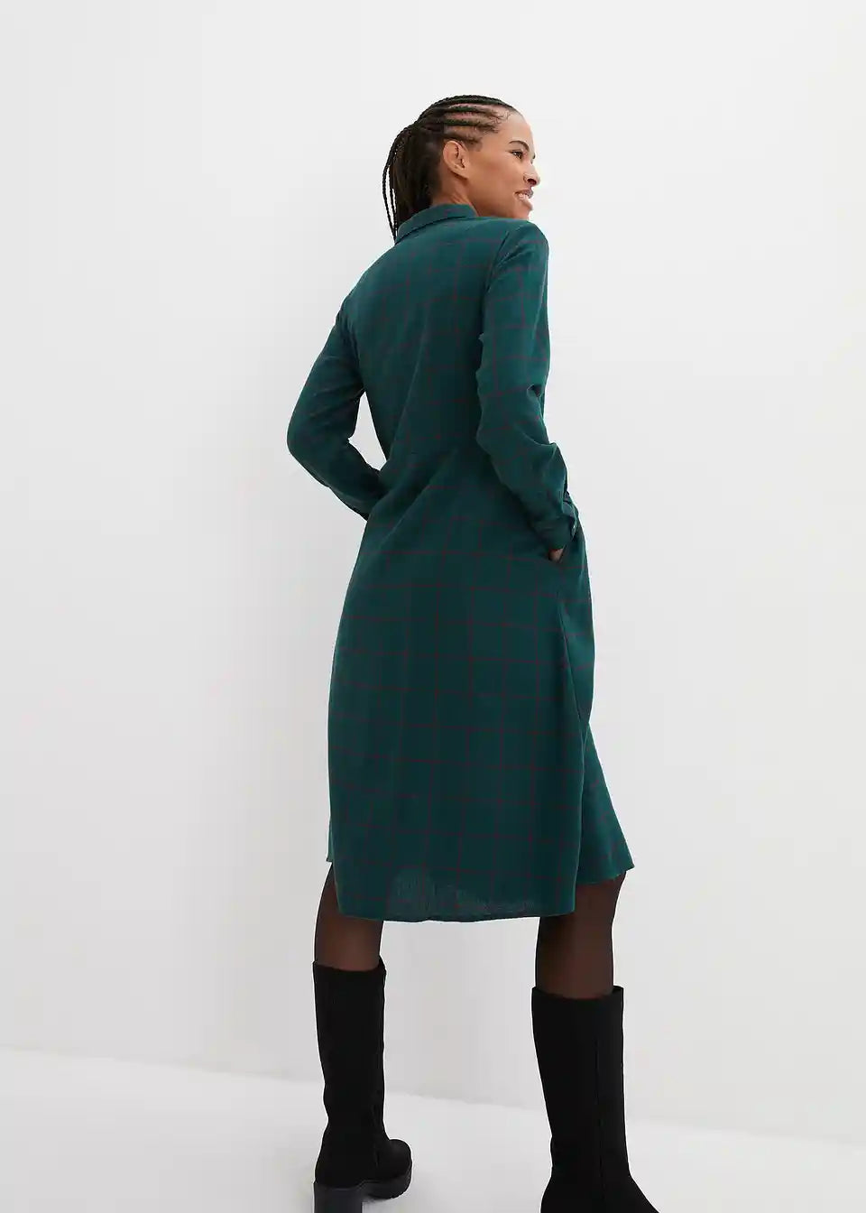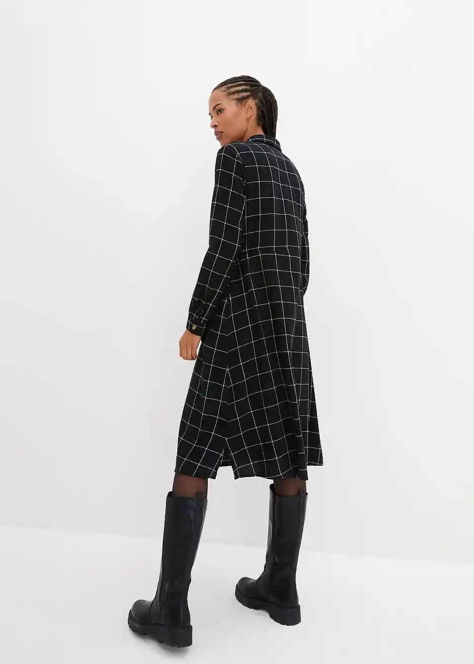 Flanelastična srajčna obleka do kolen s kariranim vzorcem