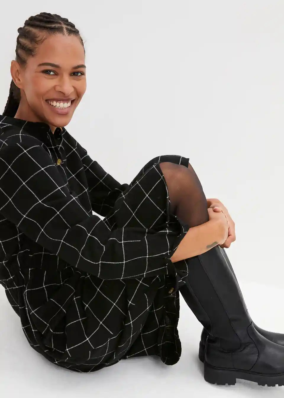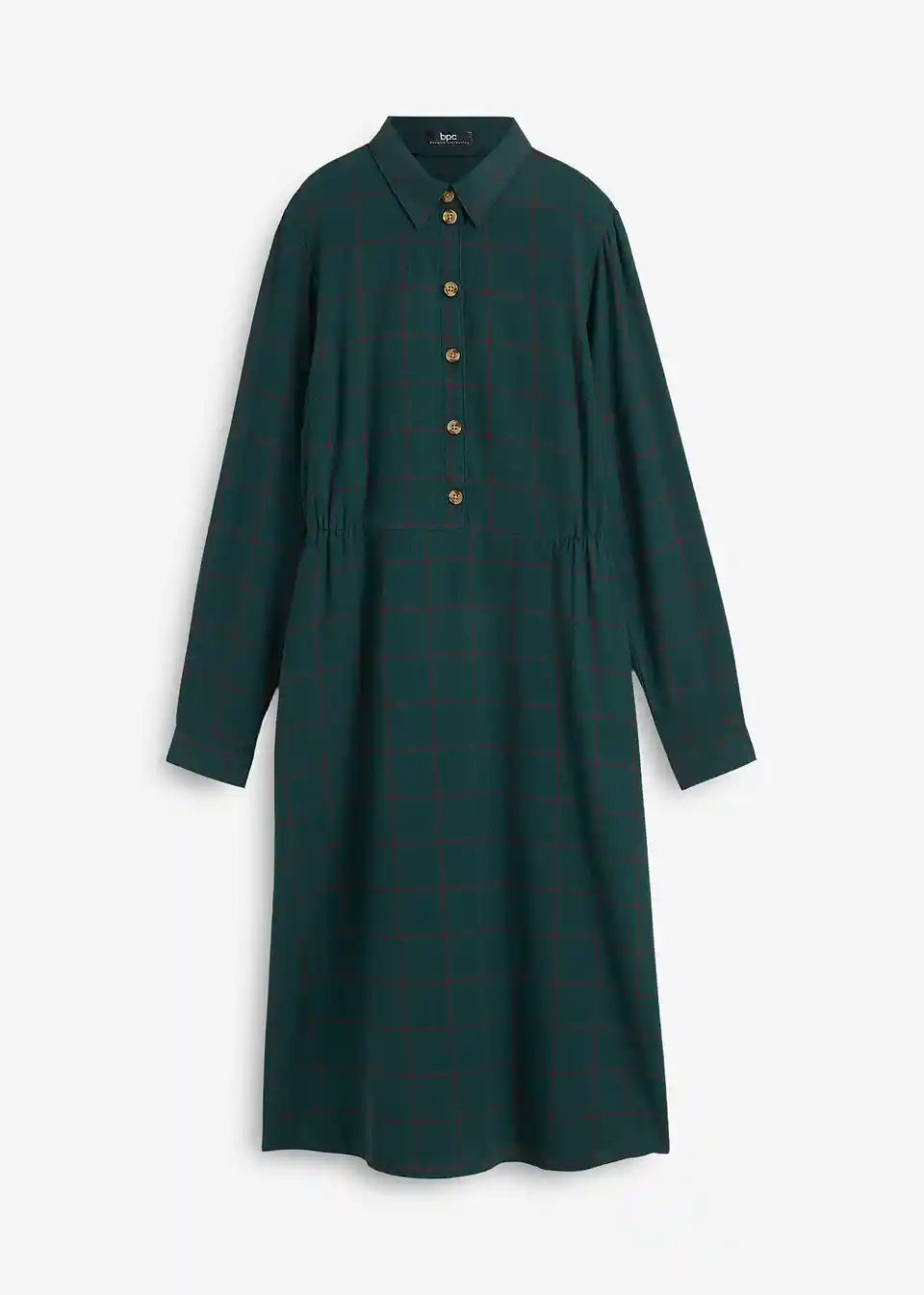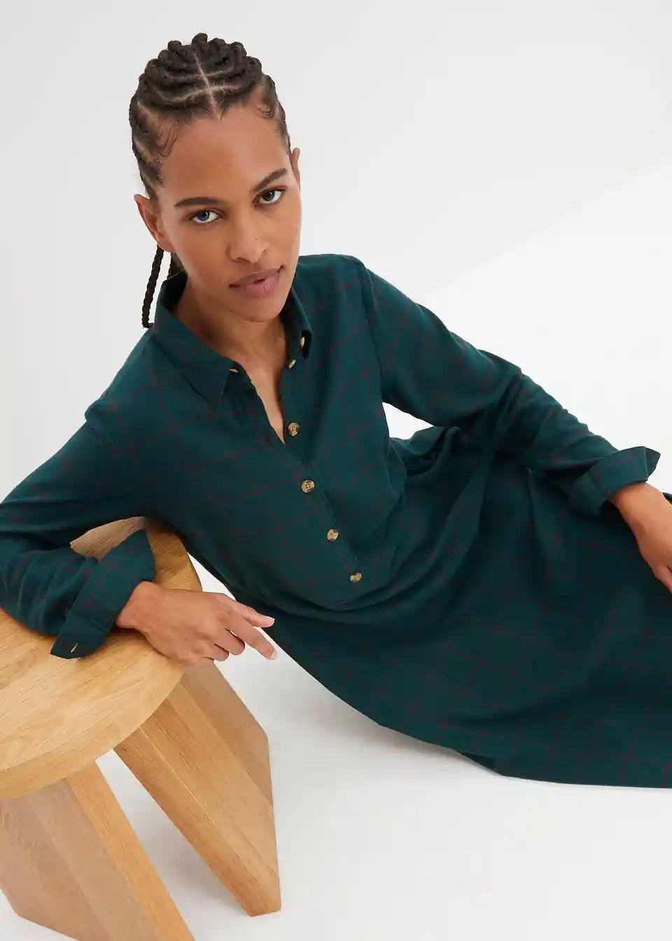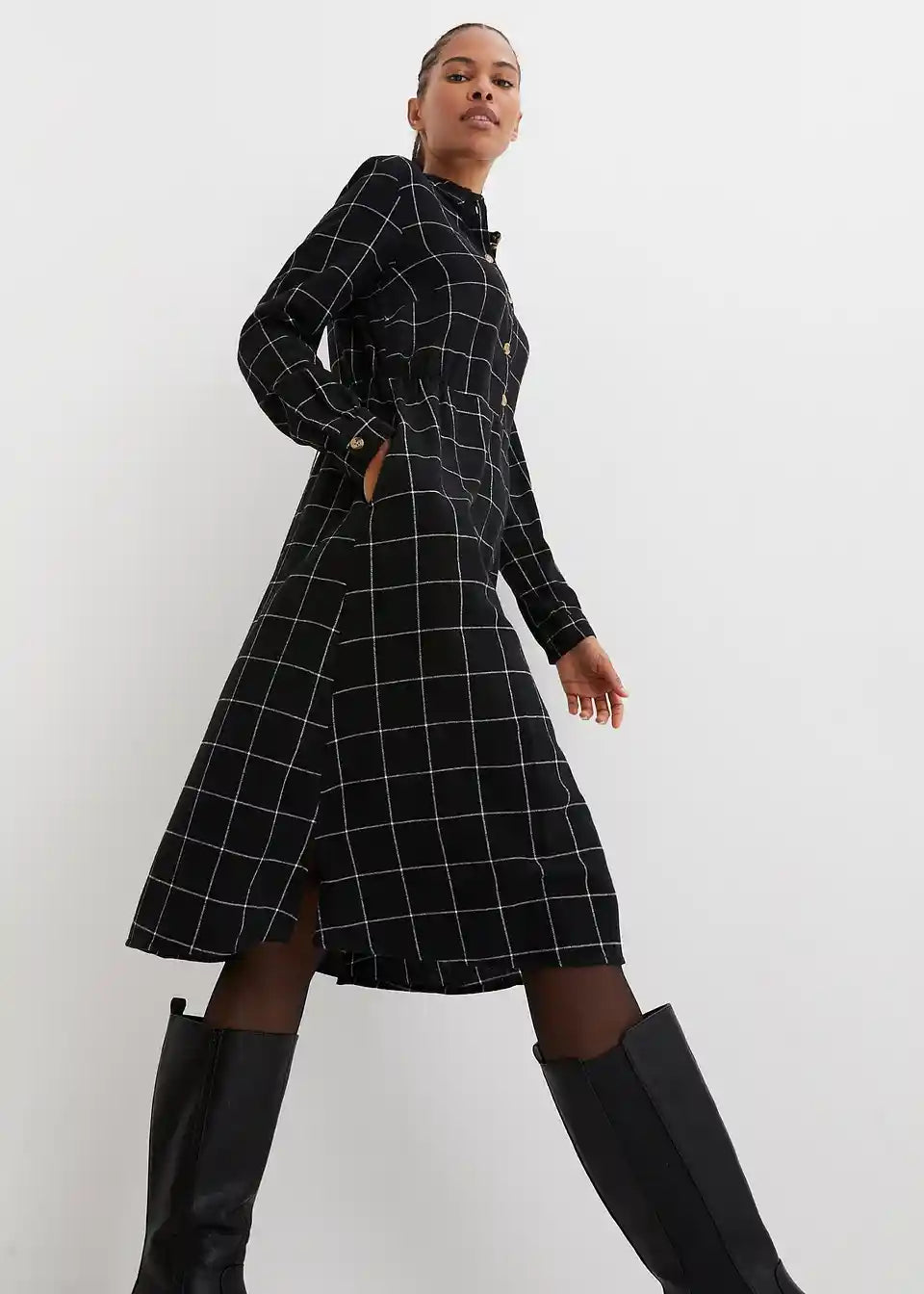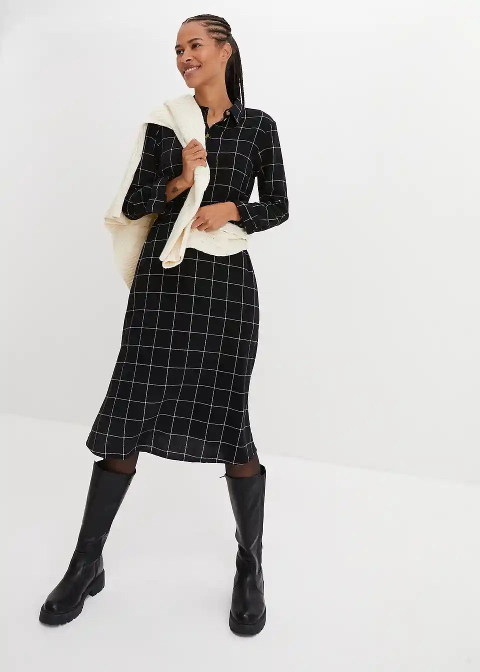 Flanelastična srajčna obleka do kolen s kariranim vzorcem