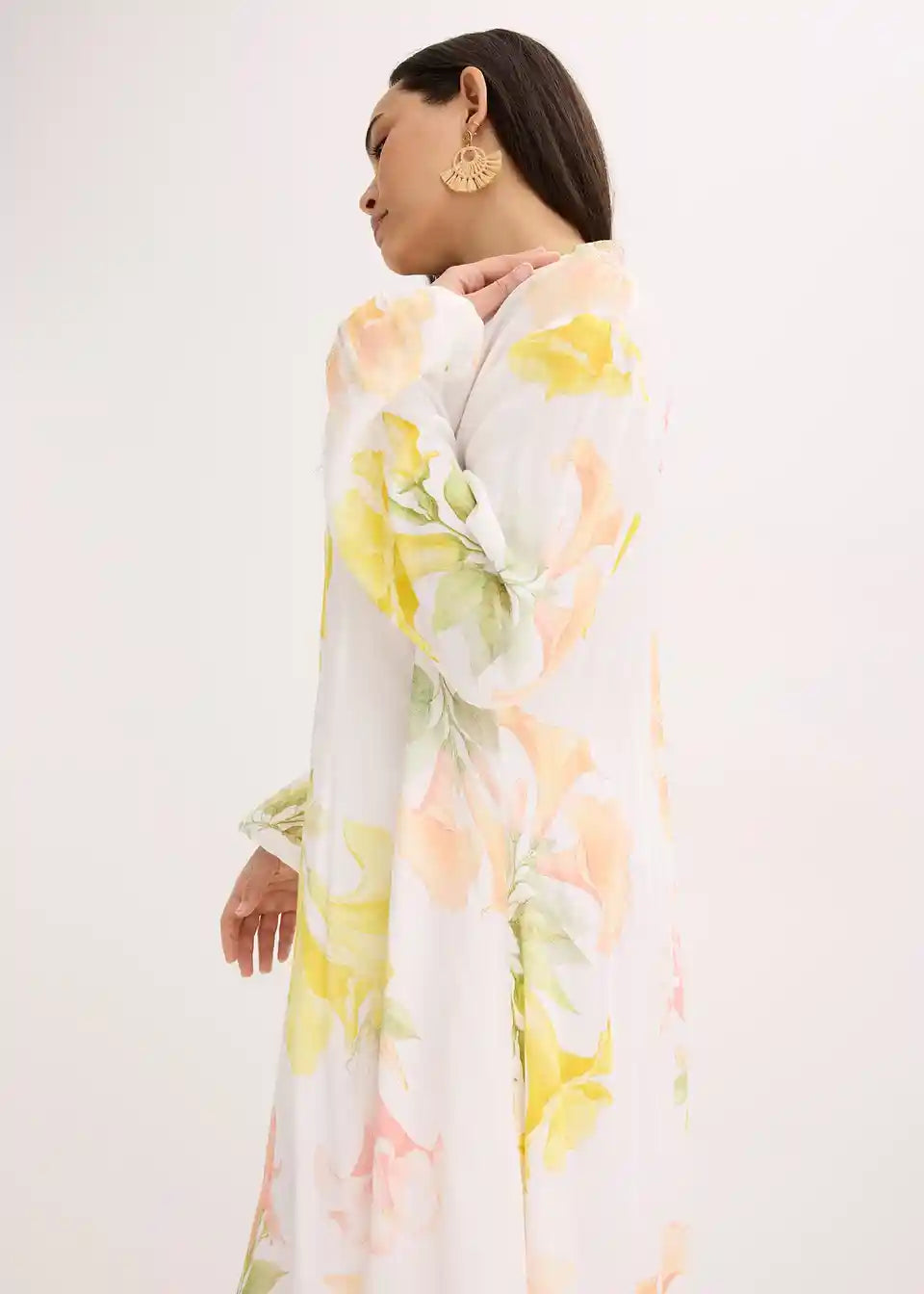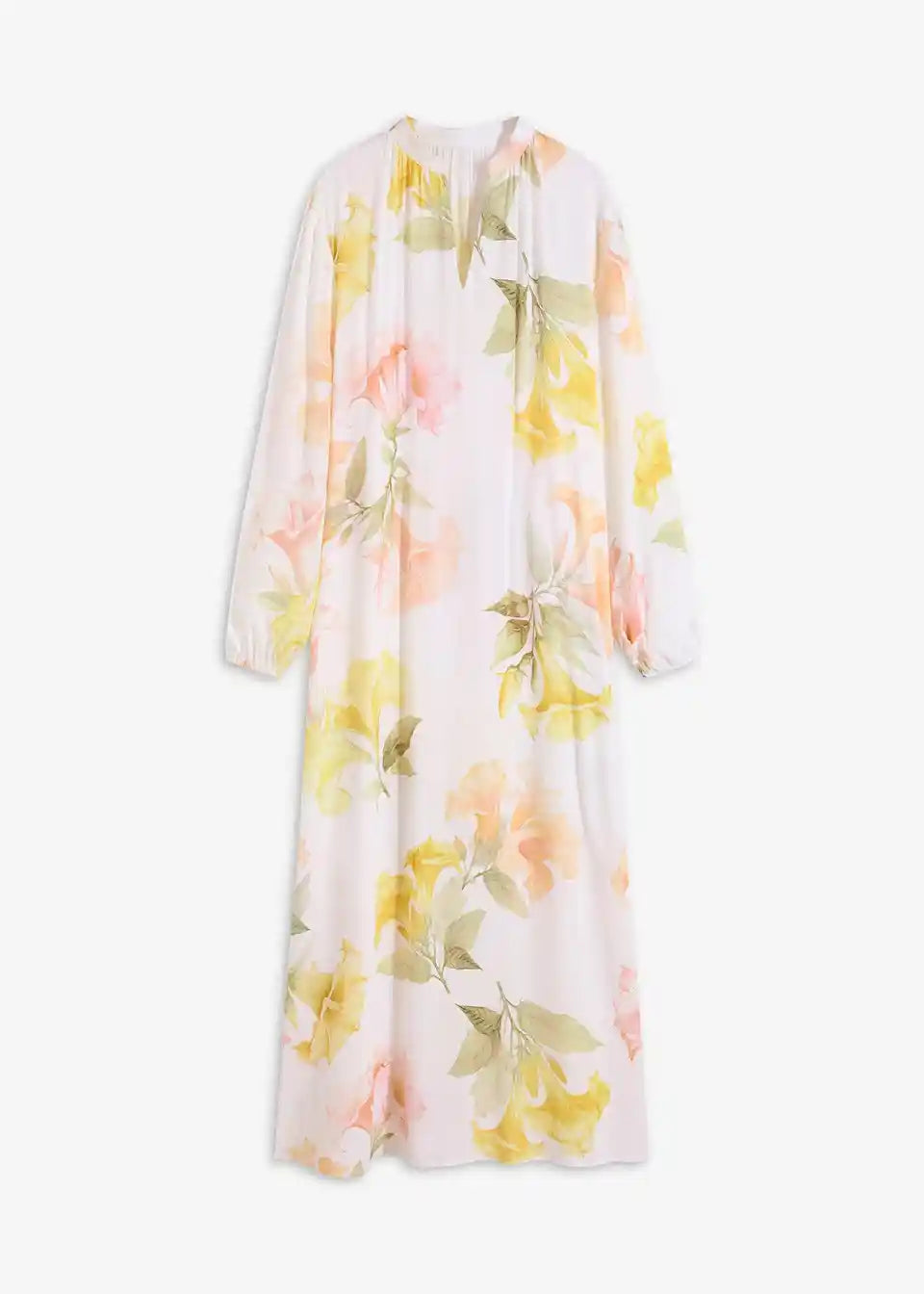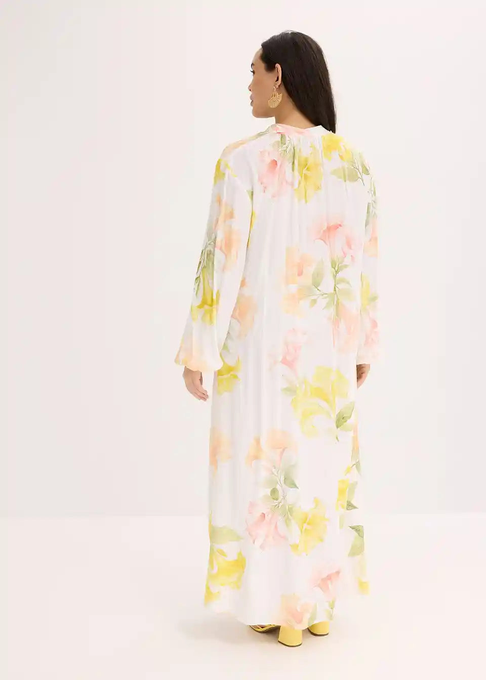 Ohlapna dolga cvetlična obleka z voluminoznimi rokavi