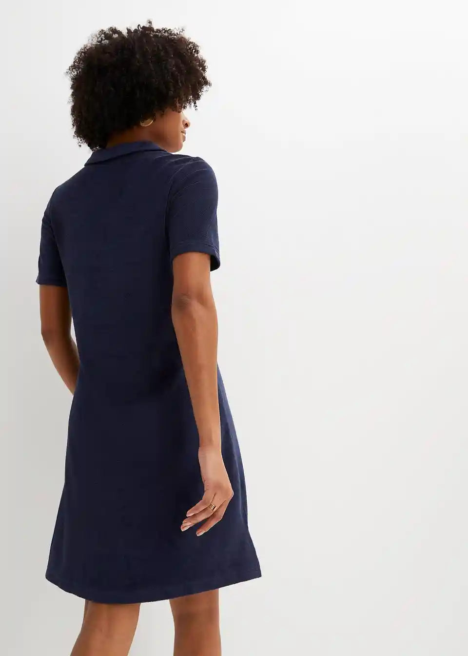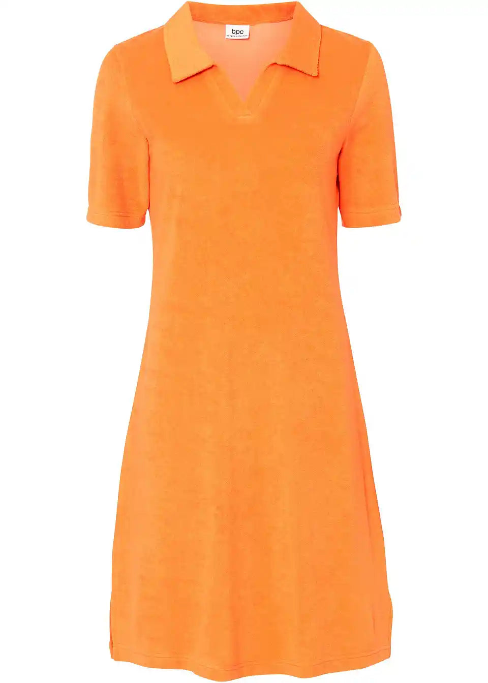 Čez kolena dolga obleka iz frotirja s polo ovratnikom