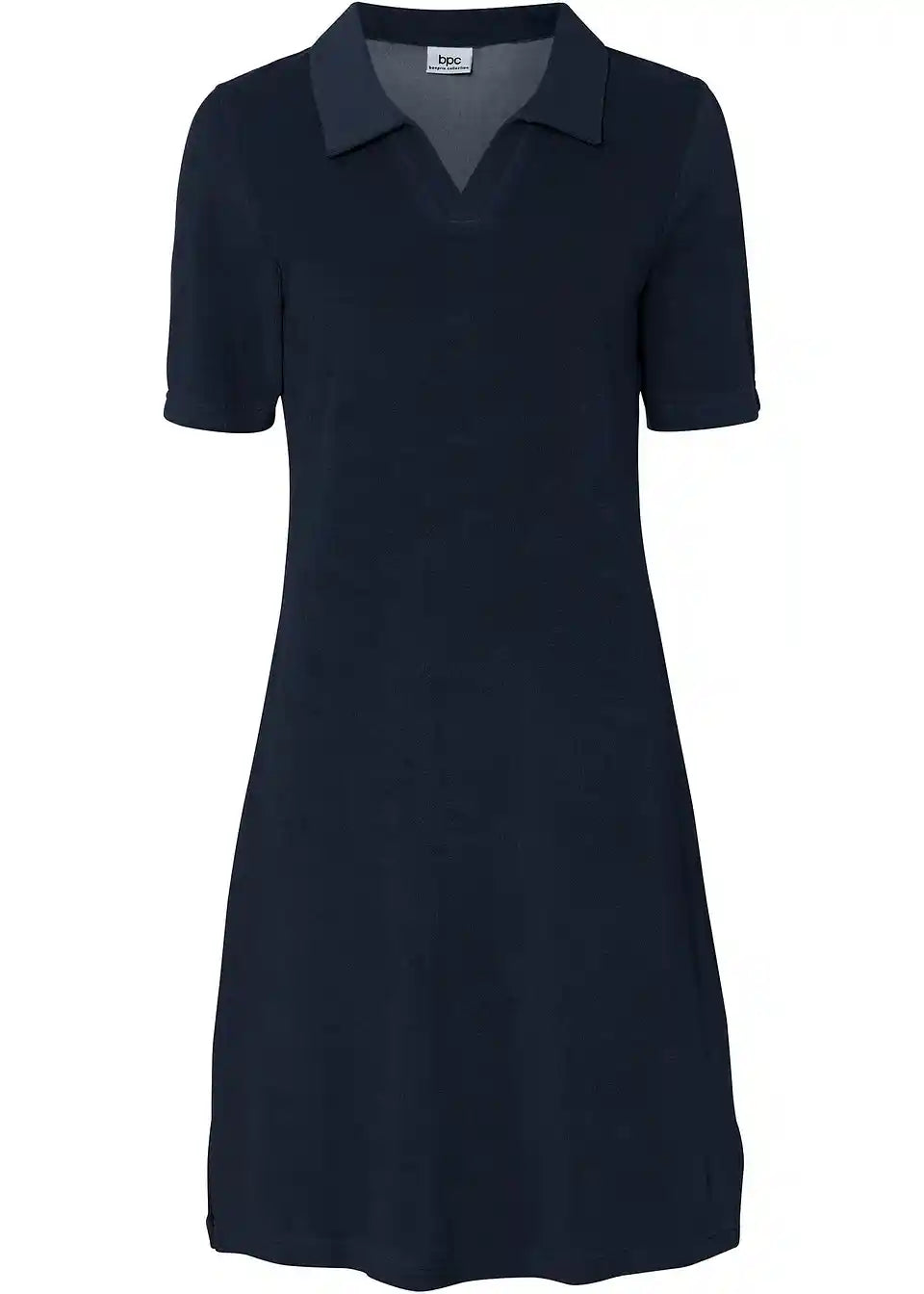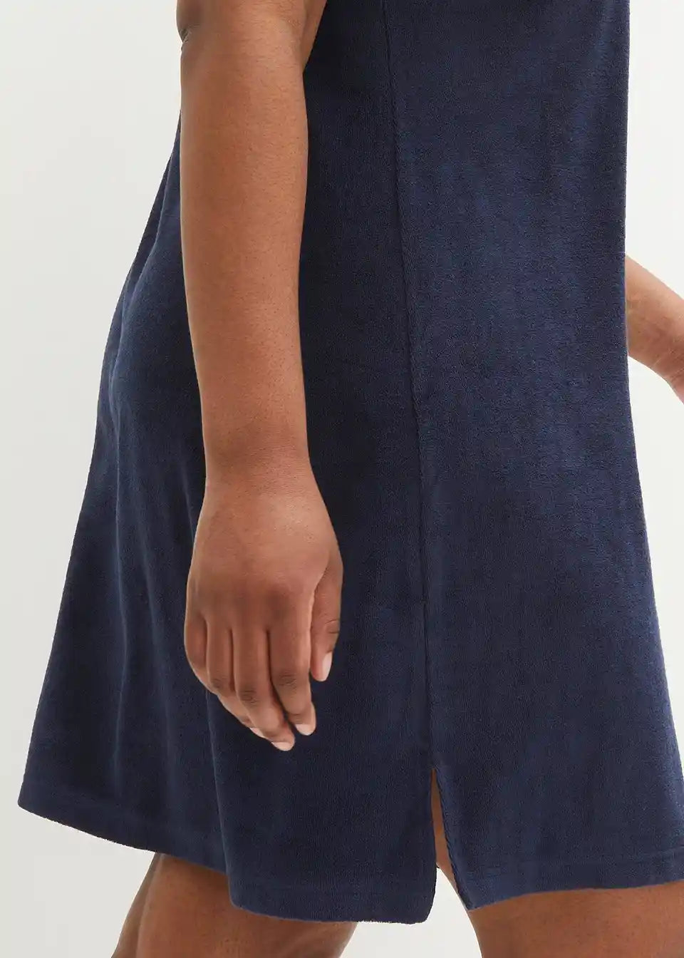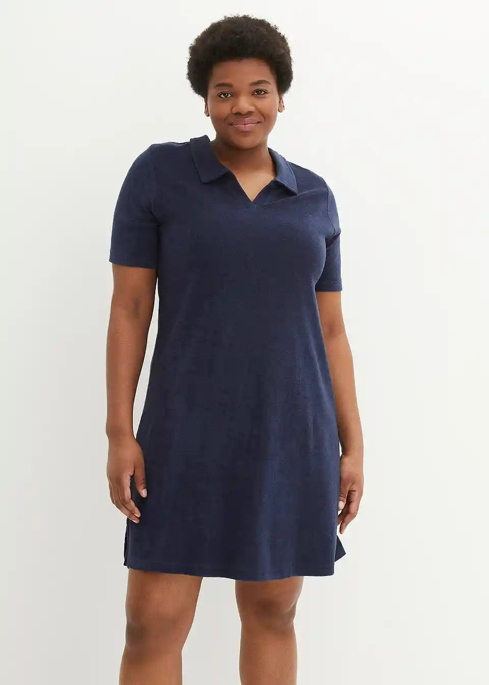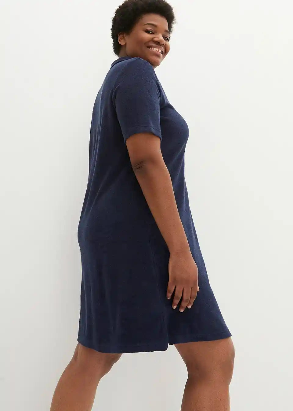 Čez kolena dolga obleka iz frotirja s polo ovratnikom