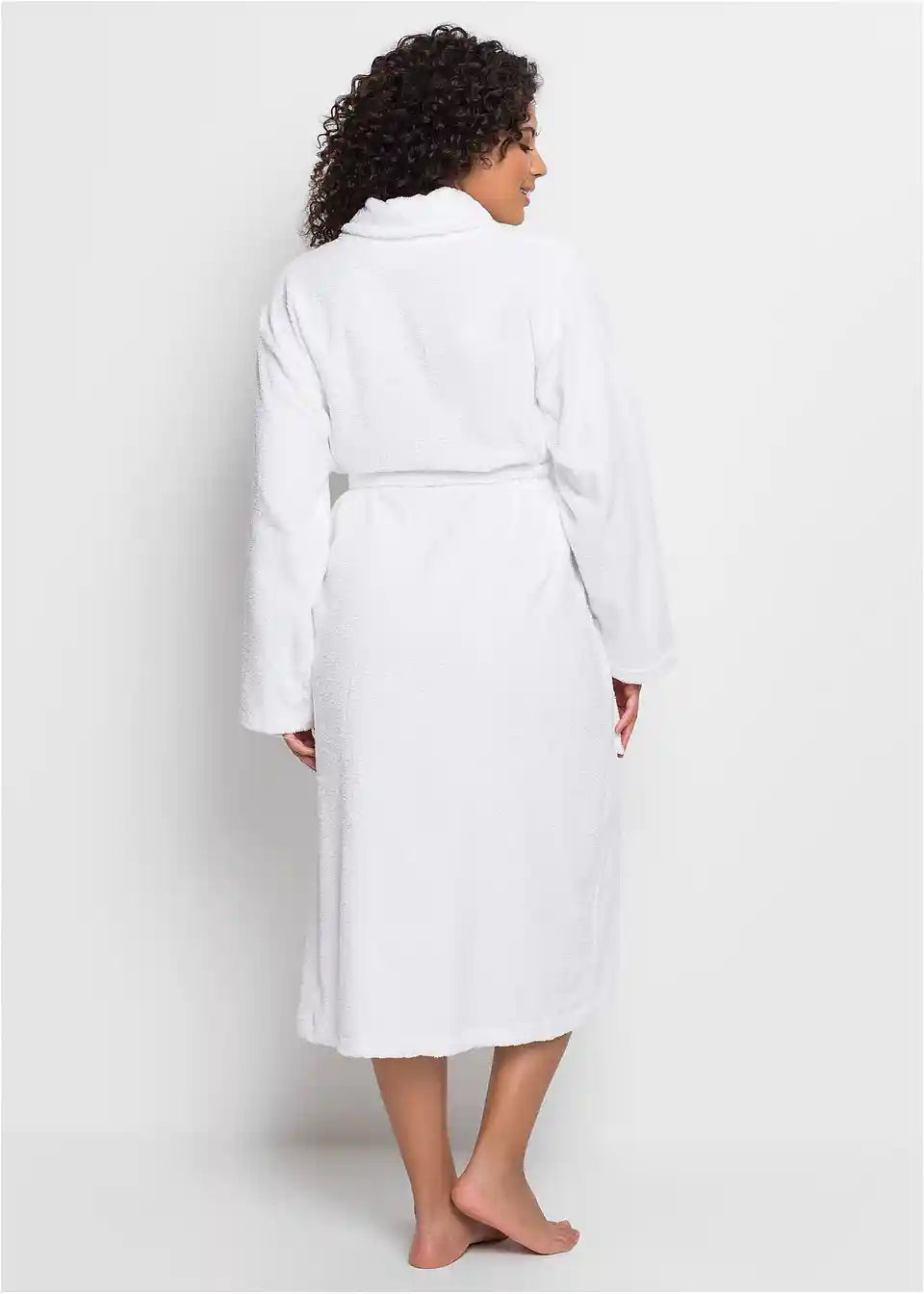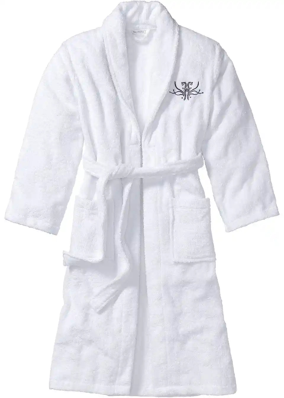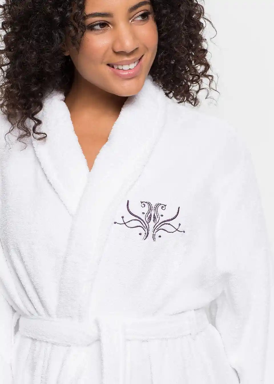 Frotirni kopalni plašč znamke bpc selection je izdelan iz mehkega bombaža in zagotavlja udoben občutek nošenja. Lep model se pokaže v klasičnem kroju z vezalnim trakom za pritrditev in z dvema prišitima žepoma spredaj. Majhno vezenje poleg ovratnika doda eleganten poudarek. Kot udoben spremljevalec za obisk savne kopalni plašč naredi dober vtis.