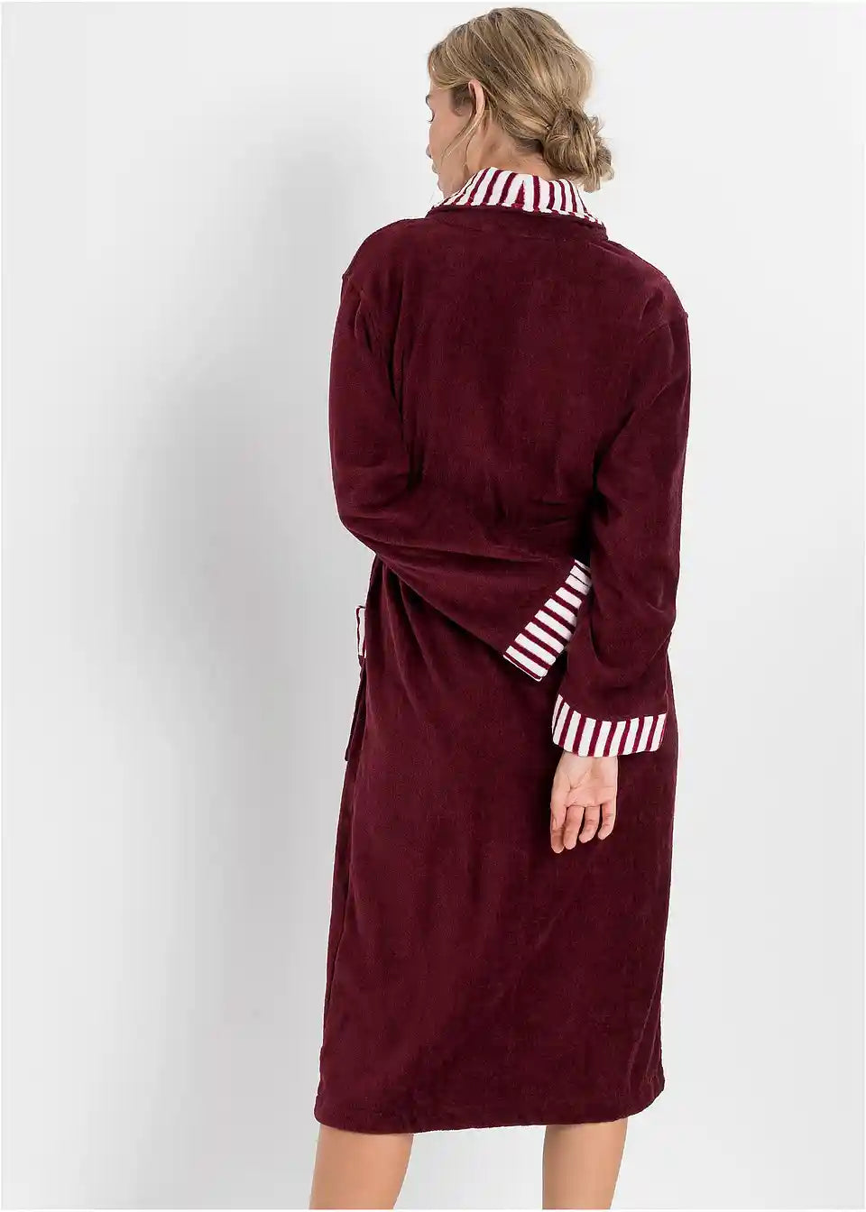 Mehak frotirni kopalni plašč s črtastimi detajli