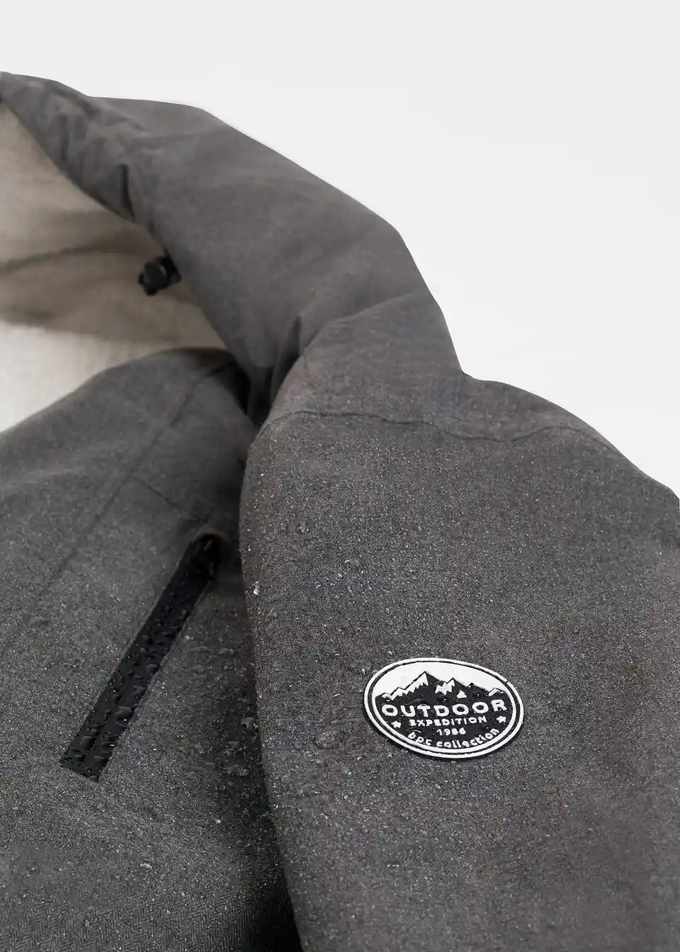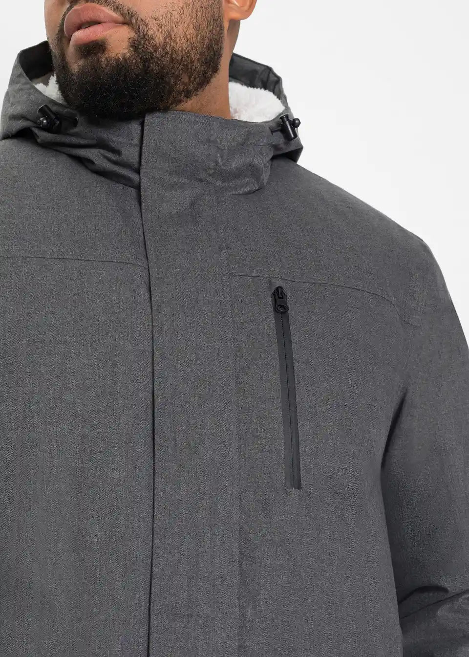 Podloženi funkcijski parka z Teddyjem flisom in naslednjimi funkcijami: zračna, zatesnjeni šivi, nepremočljiva, neprepustna za veter