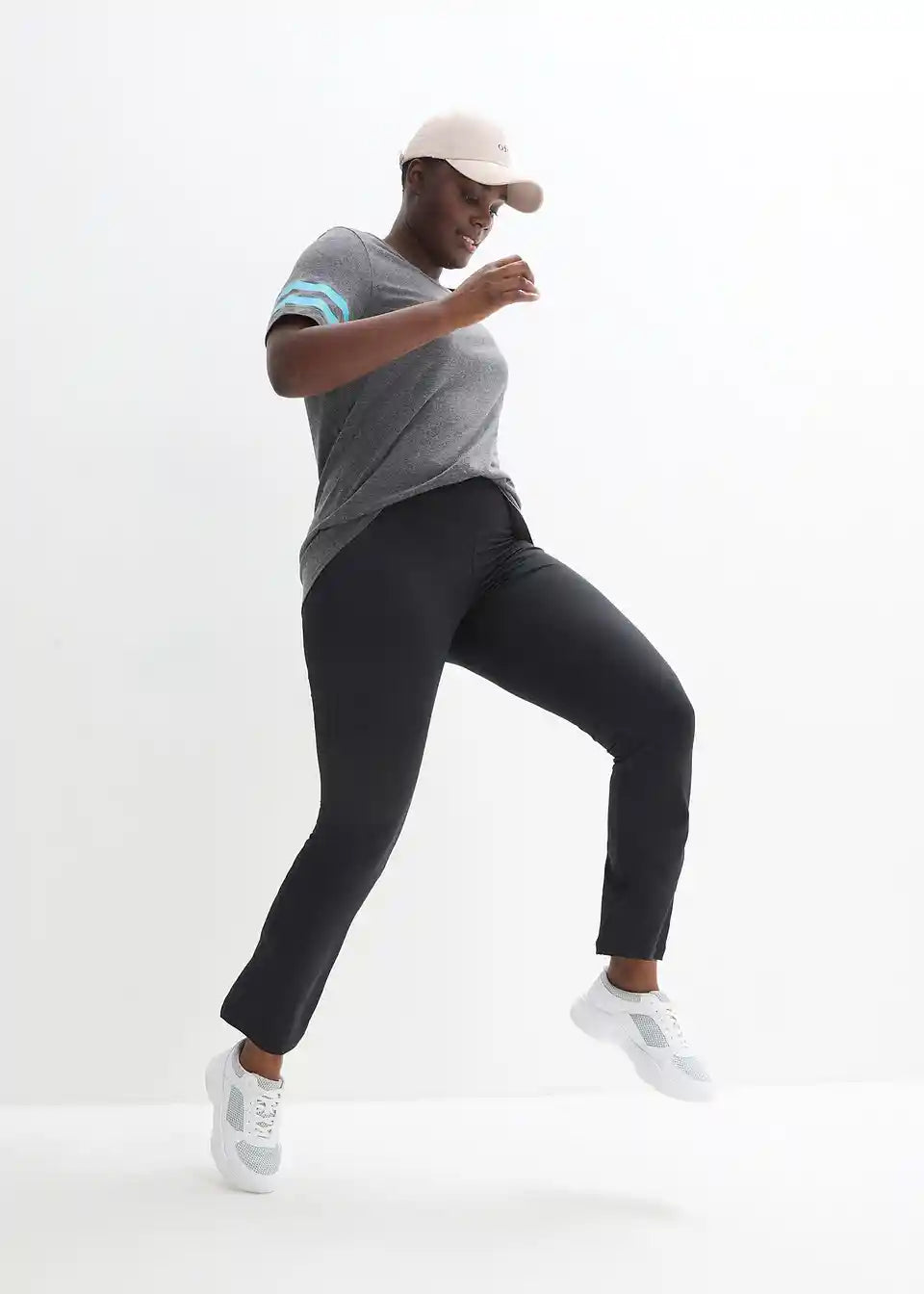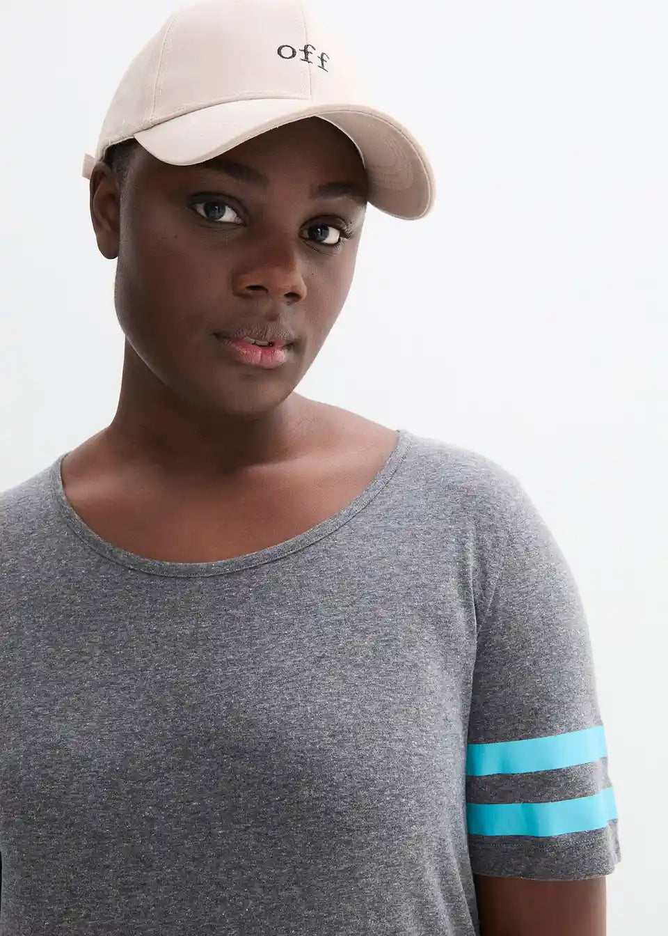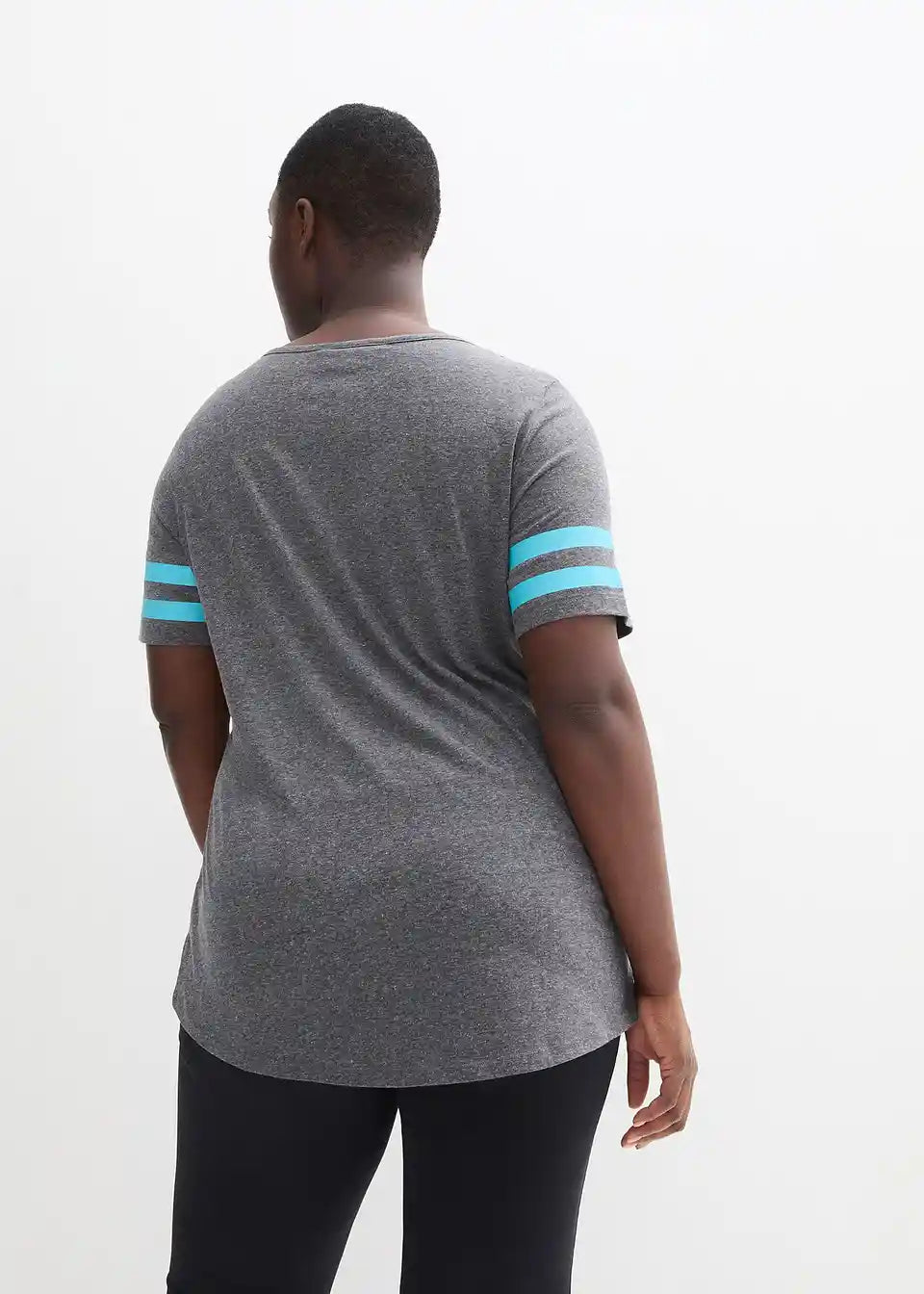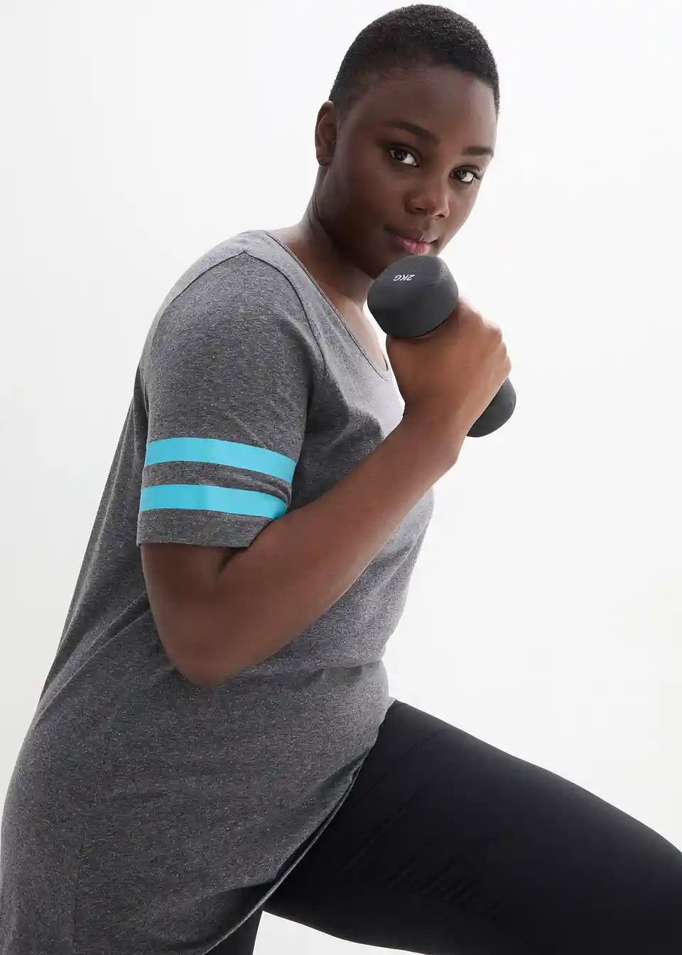 Športna majica s črtami na rokavih, kratki rokavi, rahlo razširjena, pralna v pralnem stroju, dolžina v velikosti 40/42 približno 70cm.
