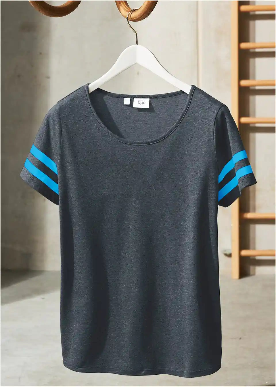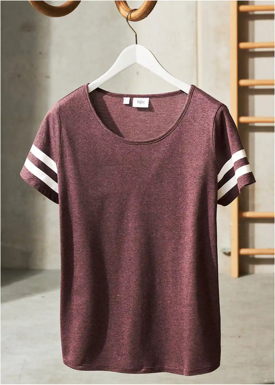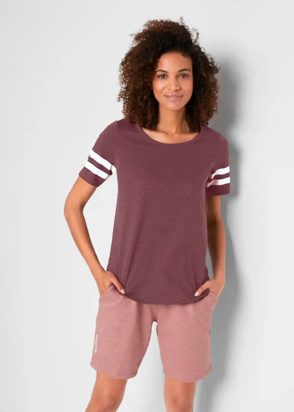 Športna majica s črtami na rokavih, kratki rokavi, rahlo razširjena, pralna v pralnem stroju, dolžina v št. 40/42 pribl. 70 cm.