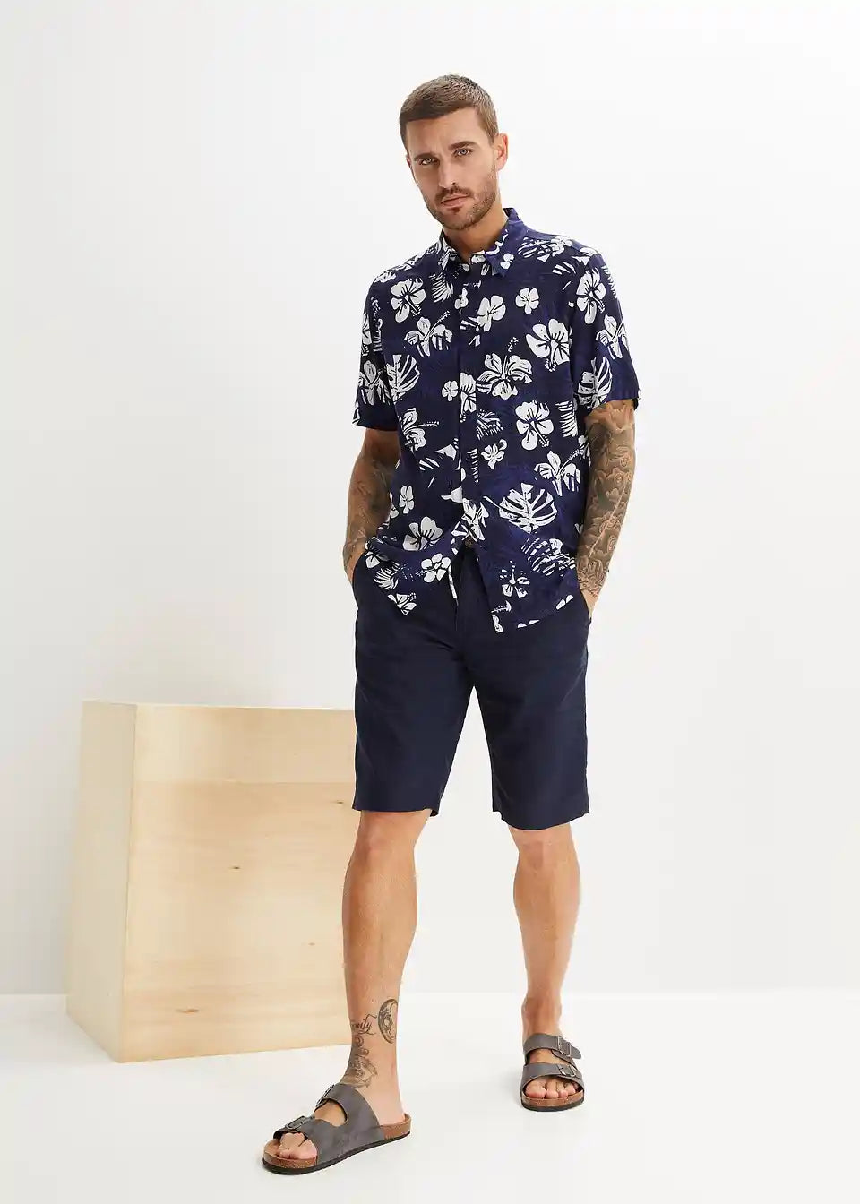 Moška havajska srajca s kratkimi rokavi s cvetličnim potiskom.