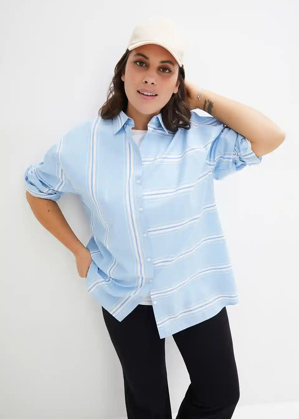 Elegantna črtasta oversize hemdbluza iz bombaža