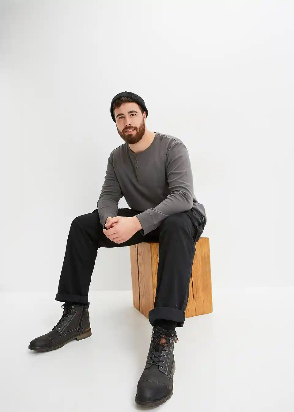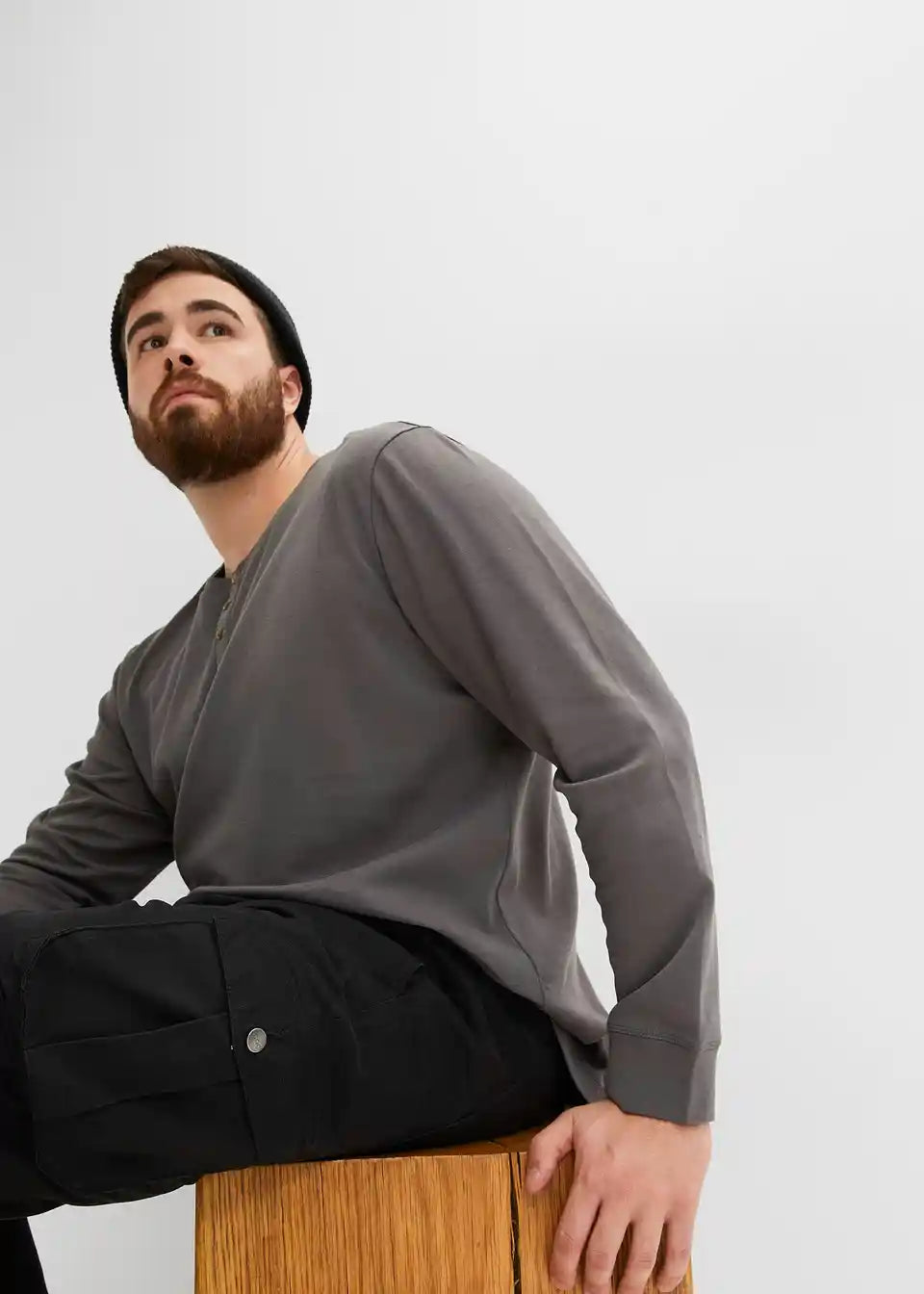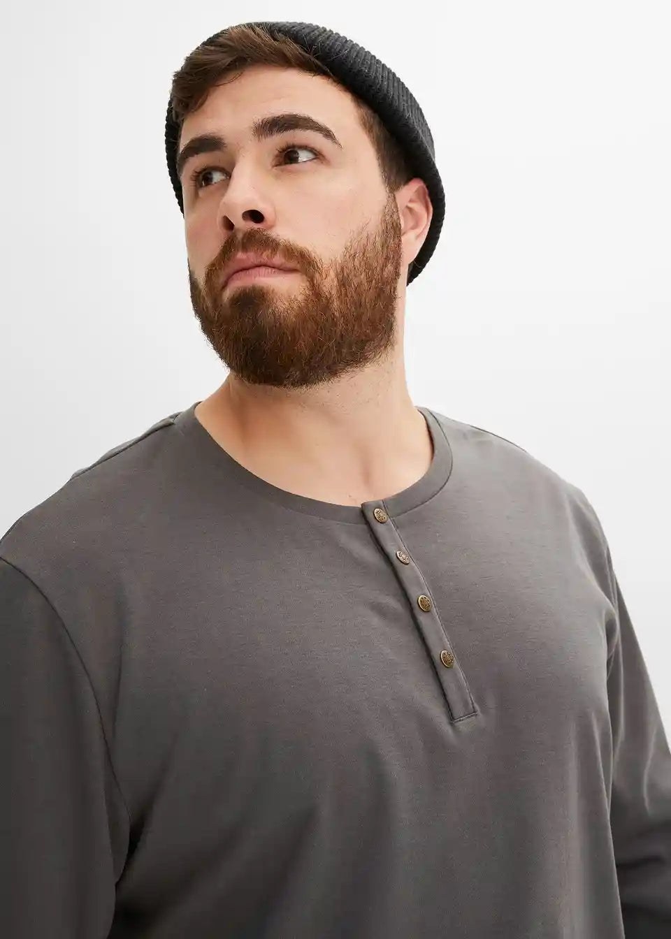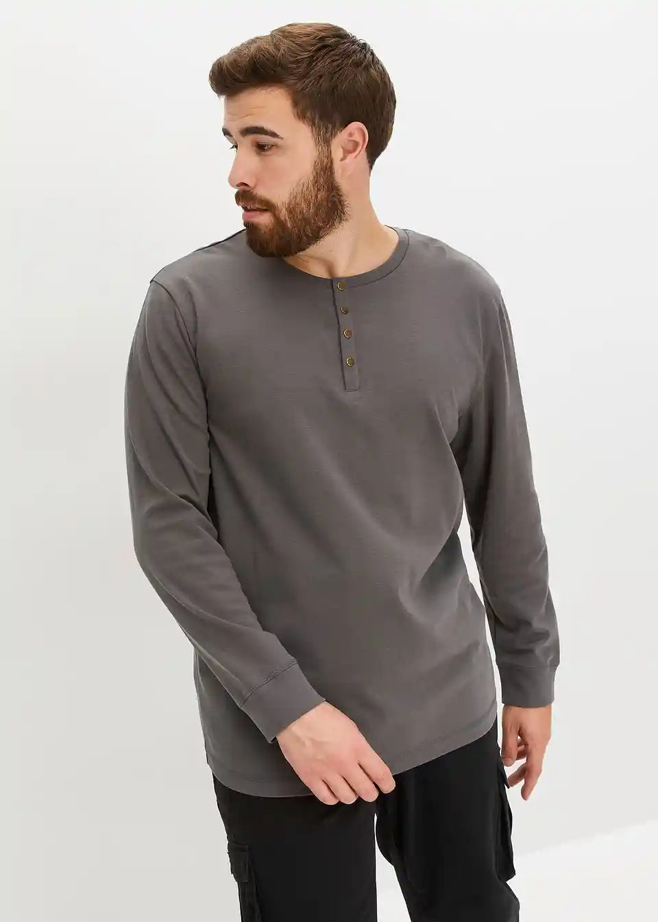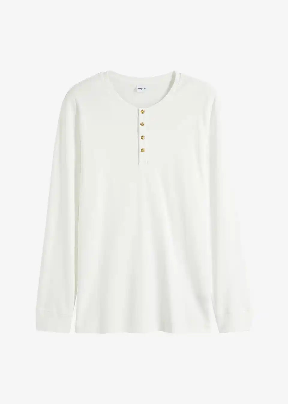 Majica z okroglim ovratnim izrezom z gumbki in dolgimi rokavi