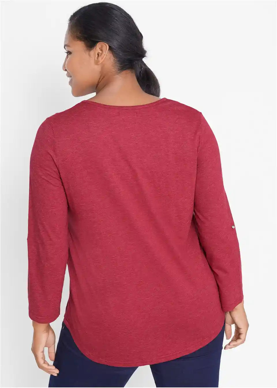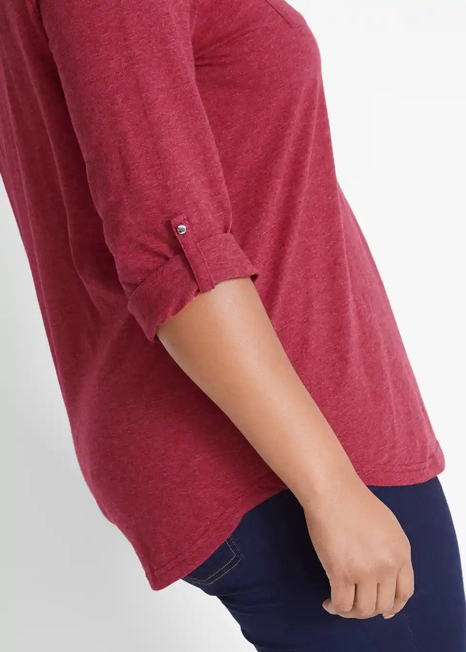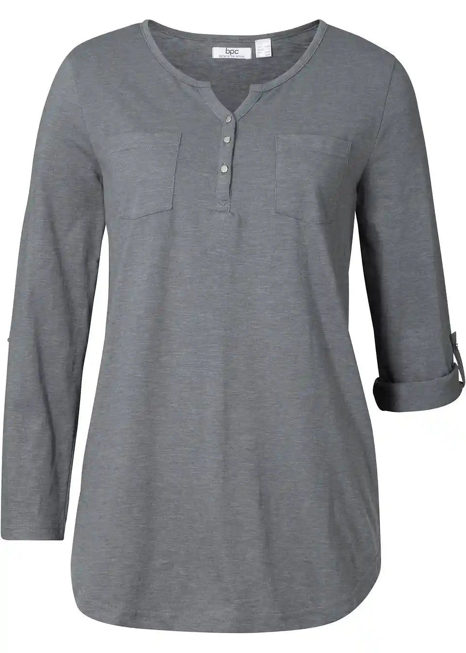 Bombažna majica z okroglim ovratnim izrezom z letvijo z gumbi
