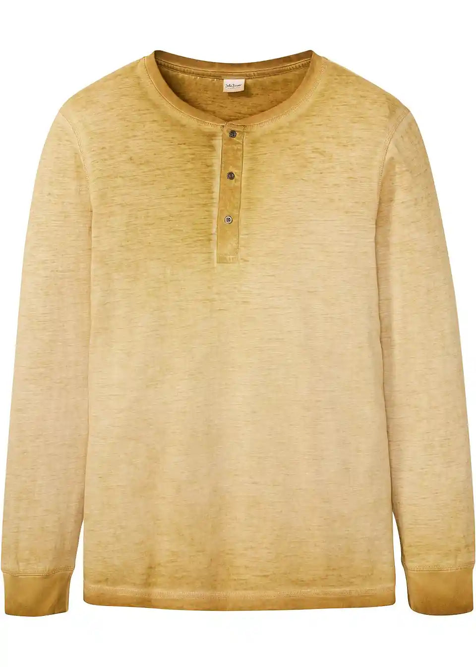 Robustna Henley majica z opranim videzom iz čistega bombaža