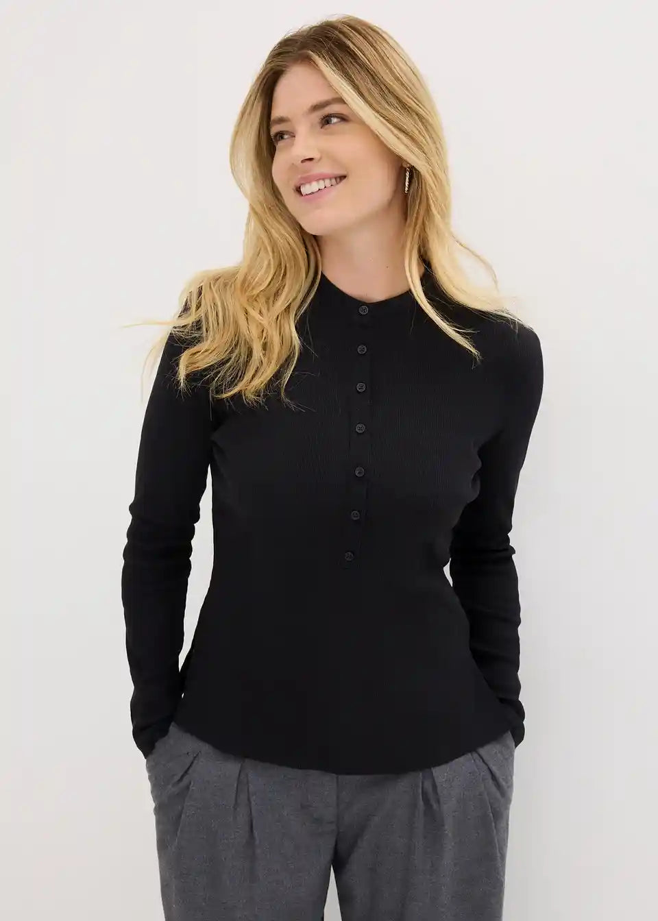 Bombažna majica z okroglim ovratnim izrezom z gumbki iz rebrastega materiala