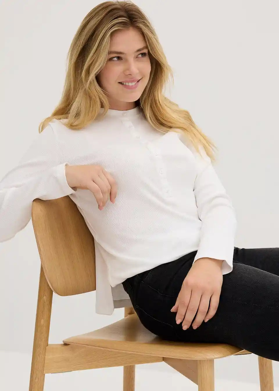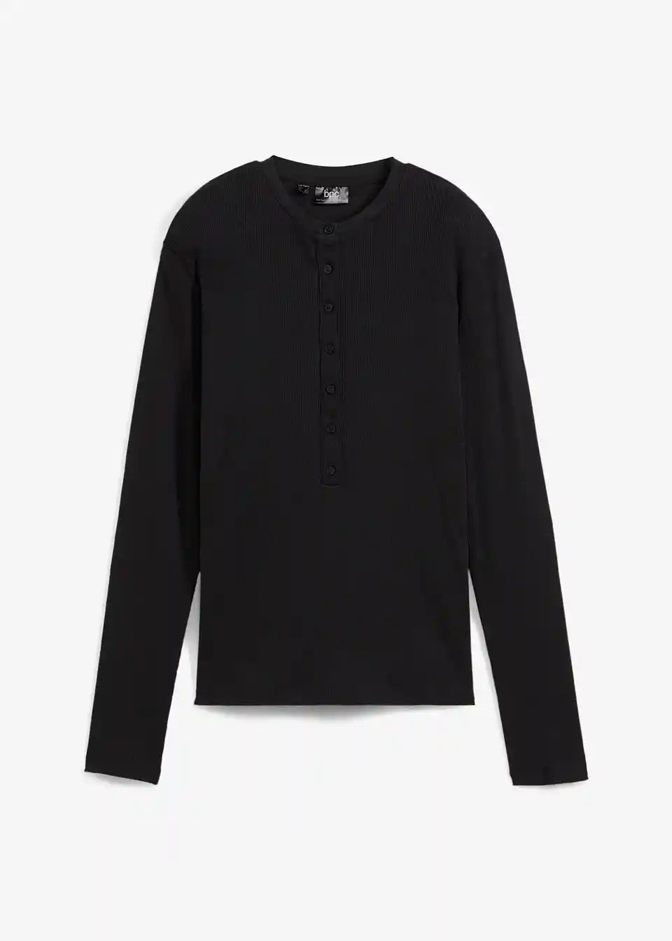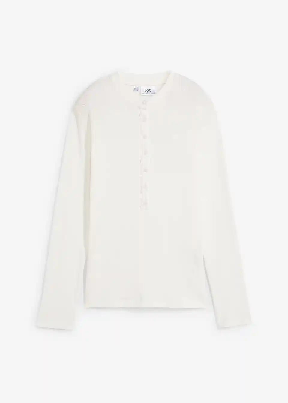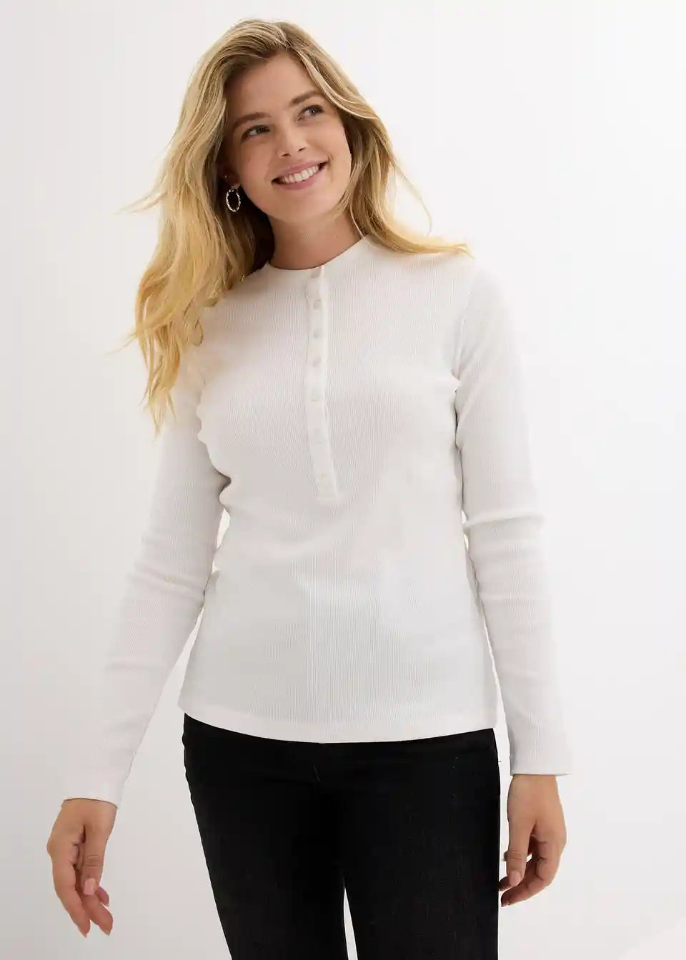 Henley majica iz mehke in padajoče bombažne rebraste tkanine