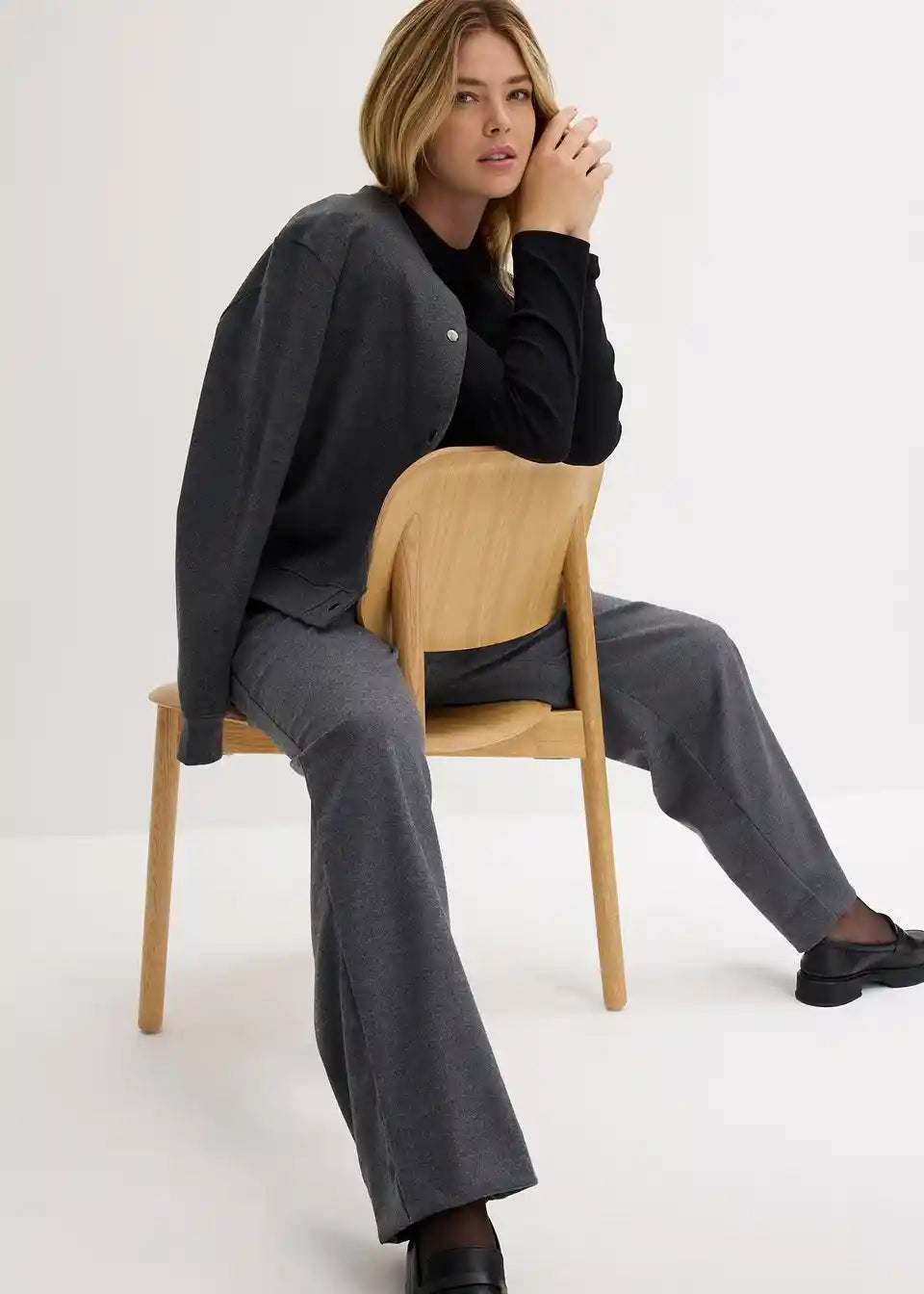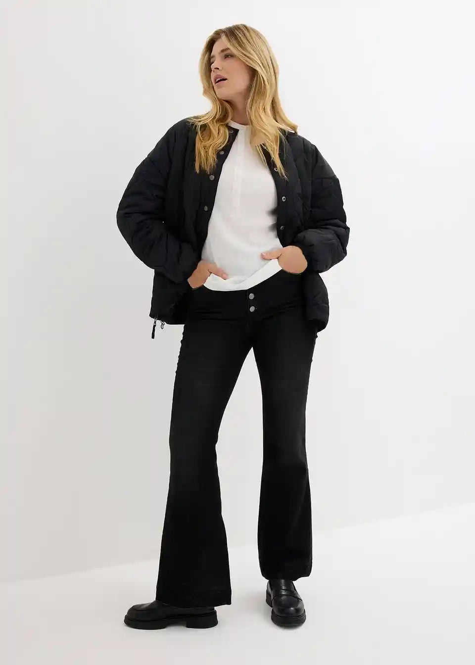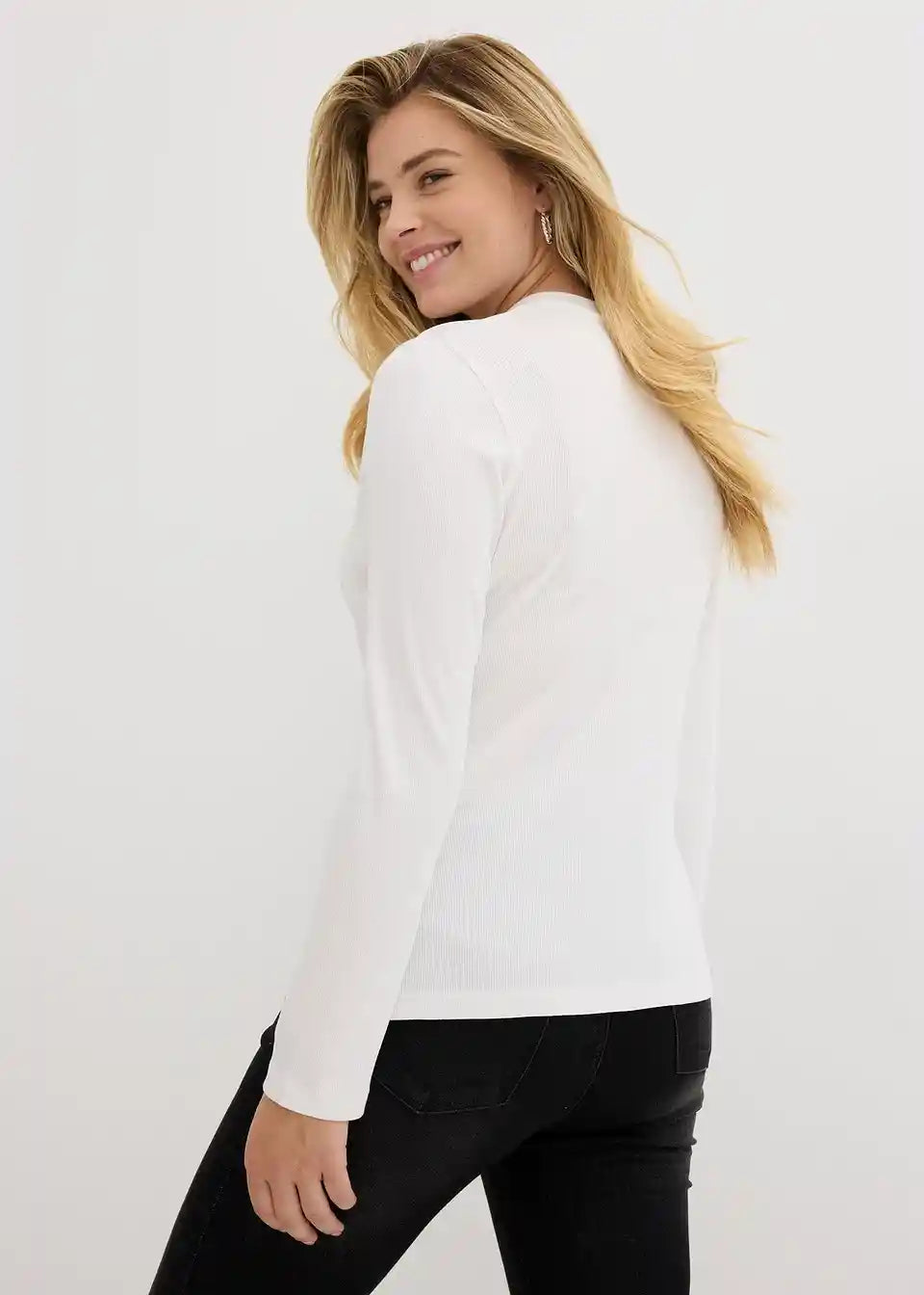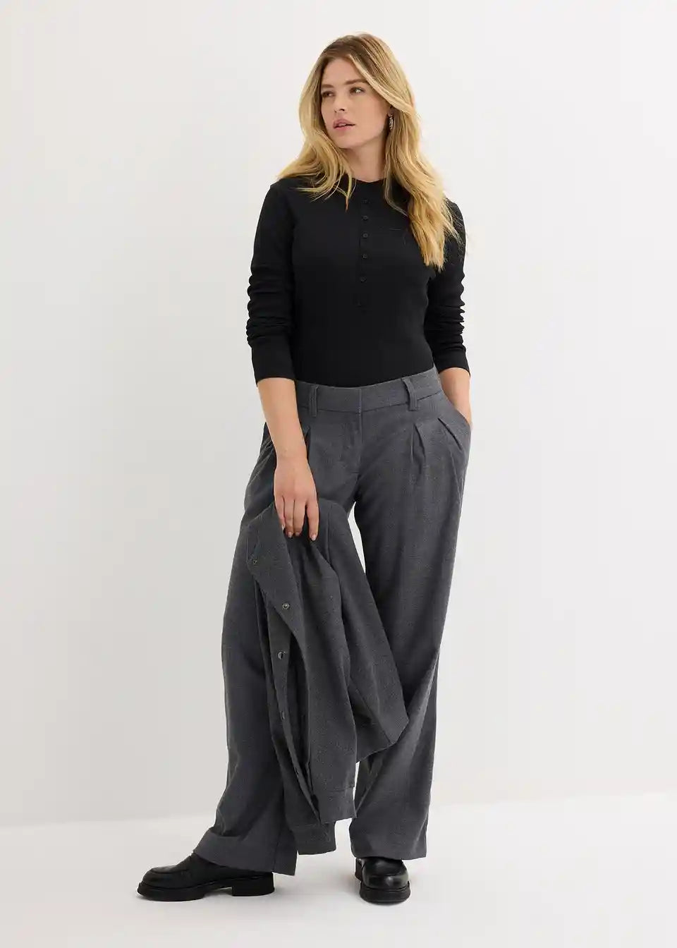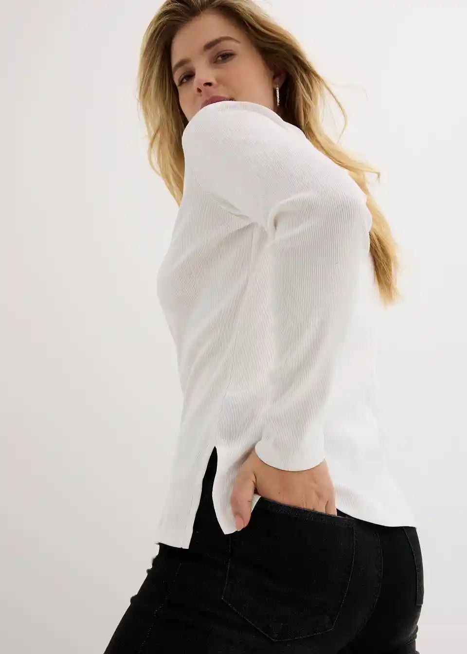Henley majica iz mehke in padajoče bombažne rebraste tkanine