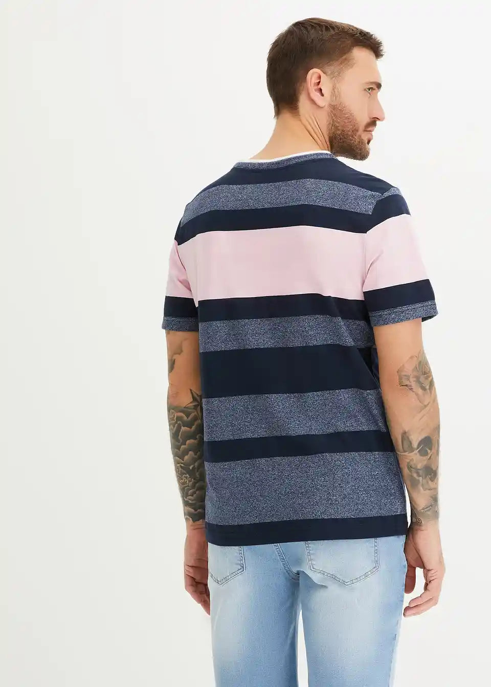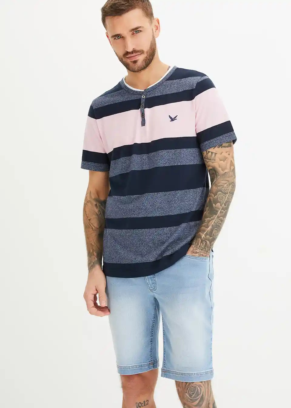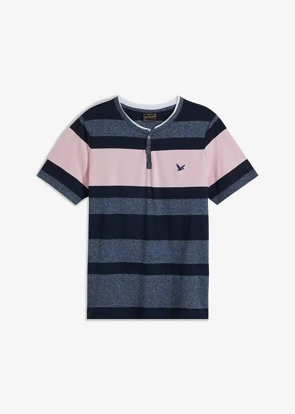 Modna kratka Henley majica s črtastim vzorcem