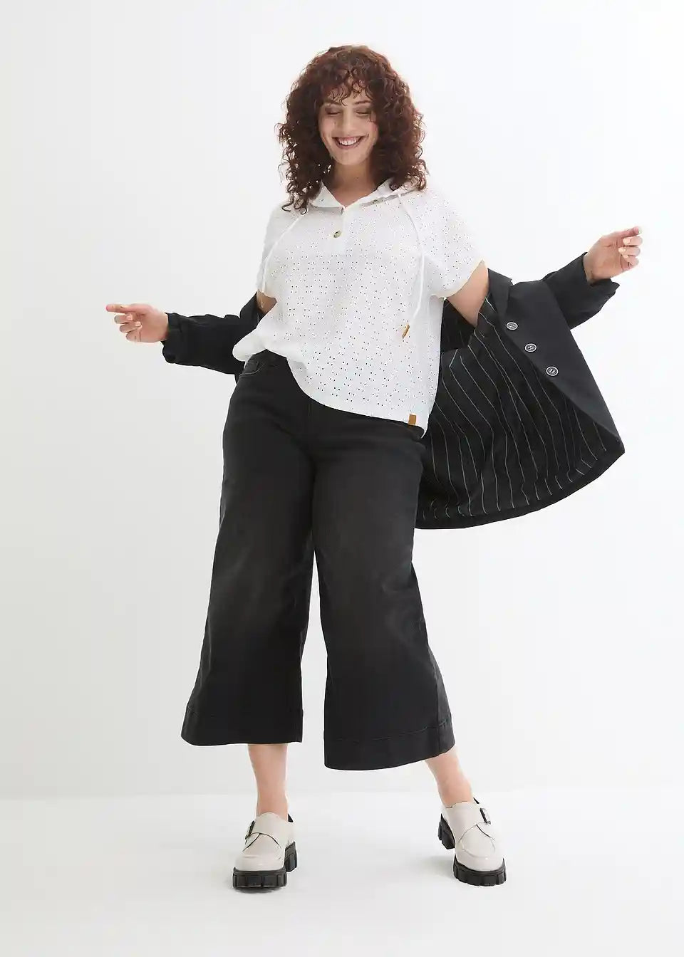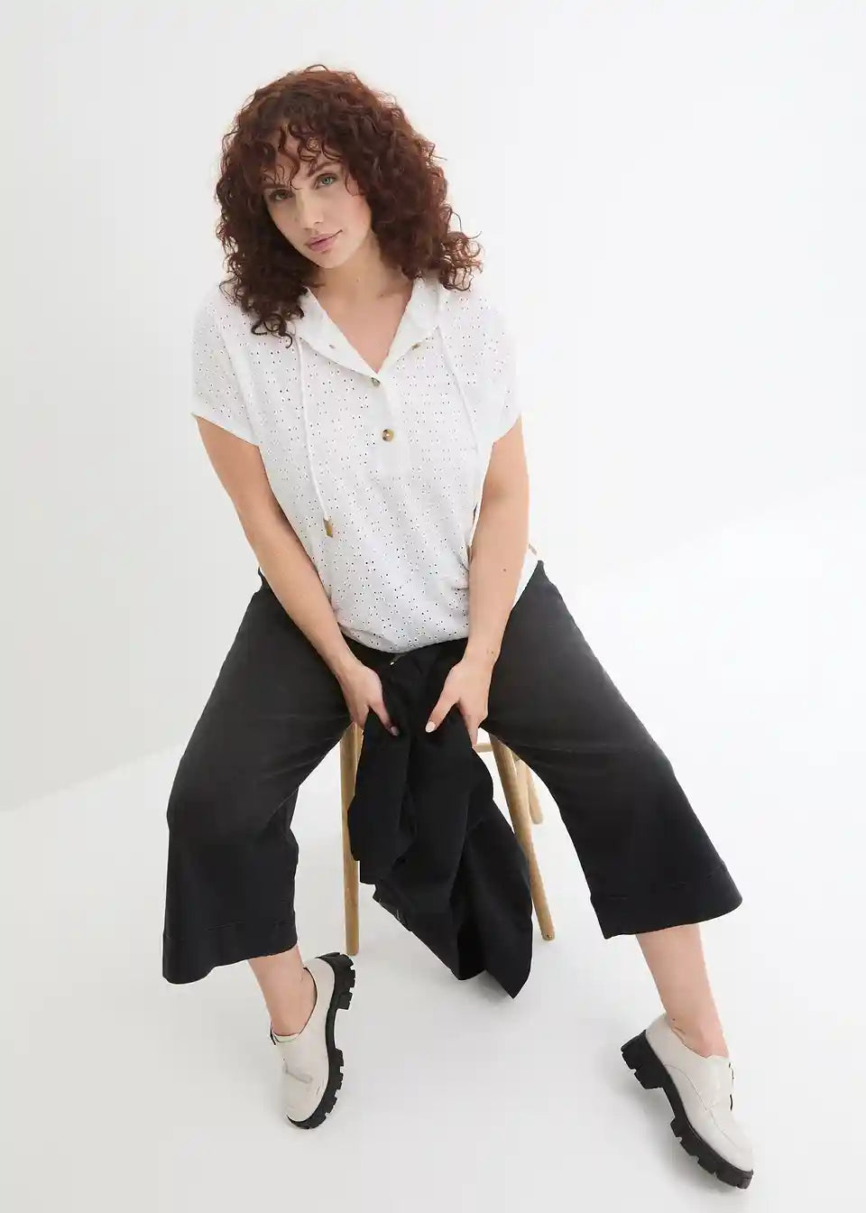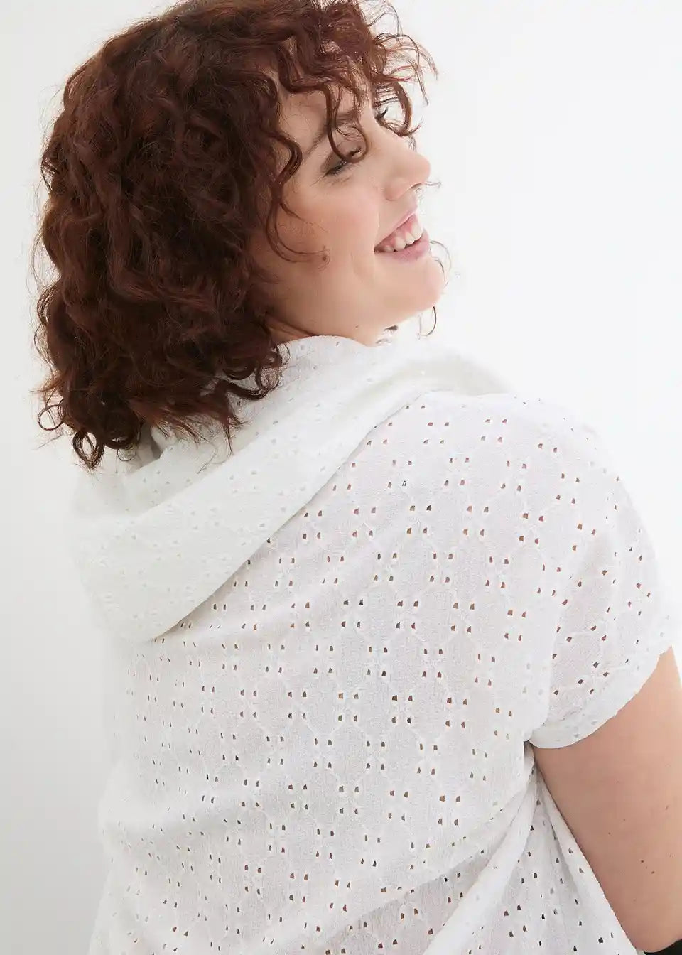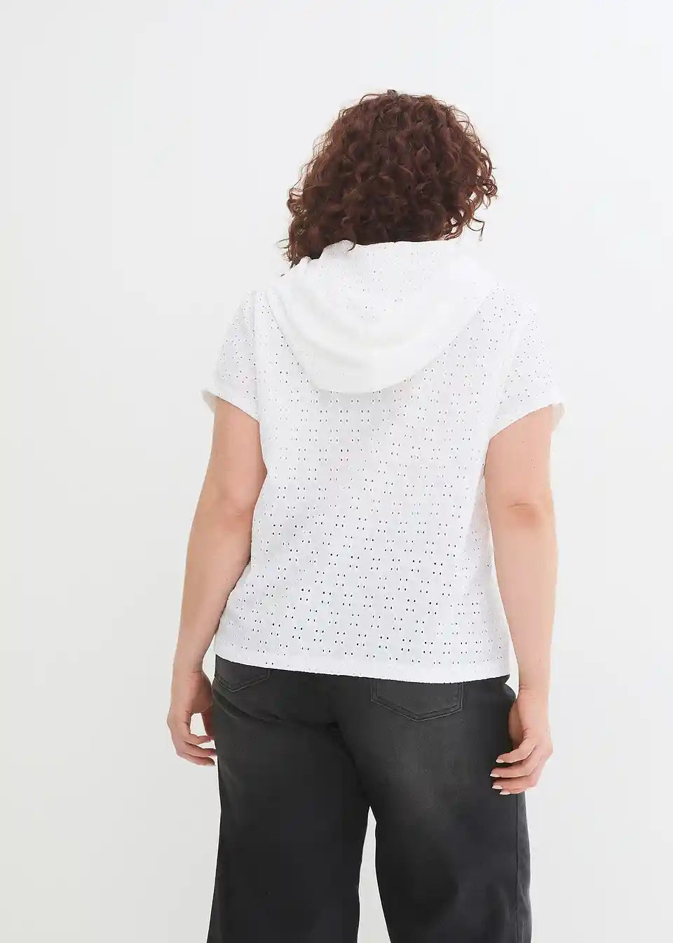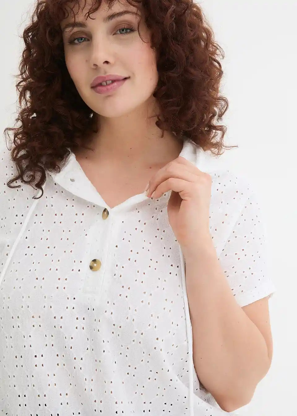 Majica z okroglim ovratnim izrezom z gumbki in kapuco