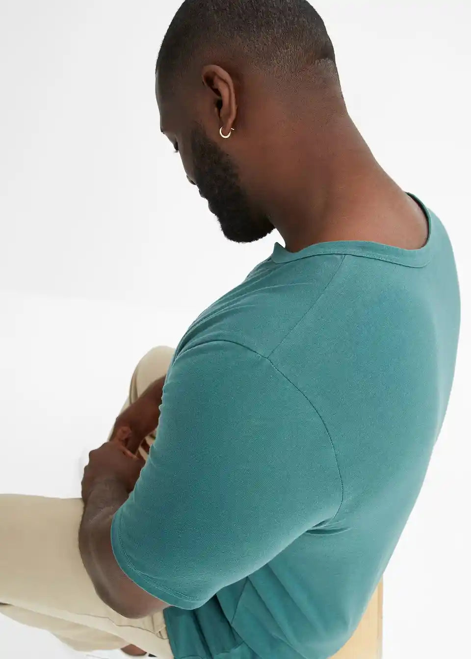 Majica z okroglim ovratnim izrezom z gumbki in kratkimi rokavi iz čistega ekološkega bombaža