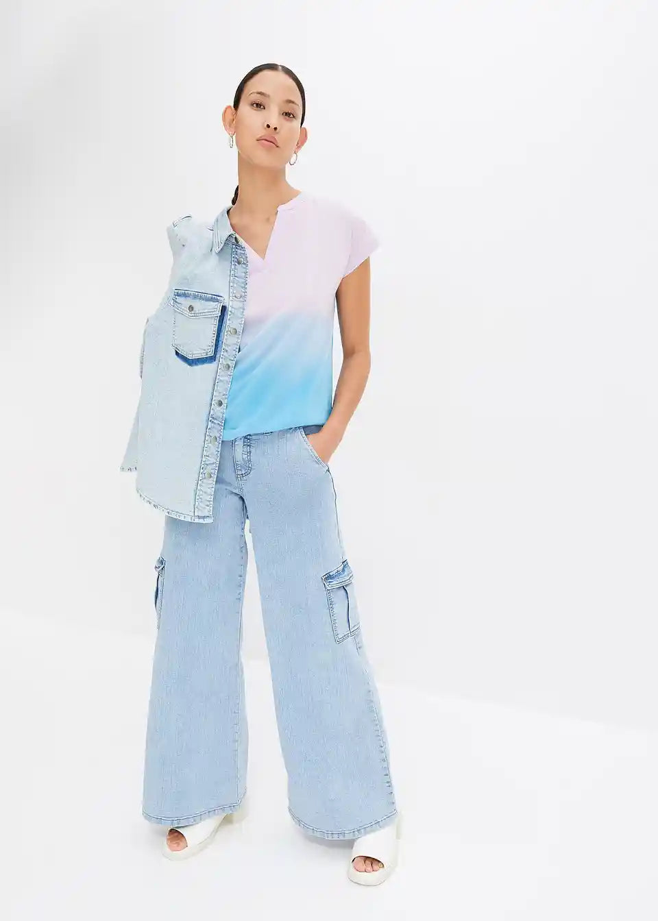 Hanley majica z okroglim ovratnim izrezom z gumbki s prelivajočim efektom