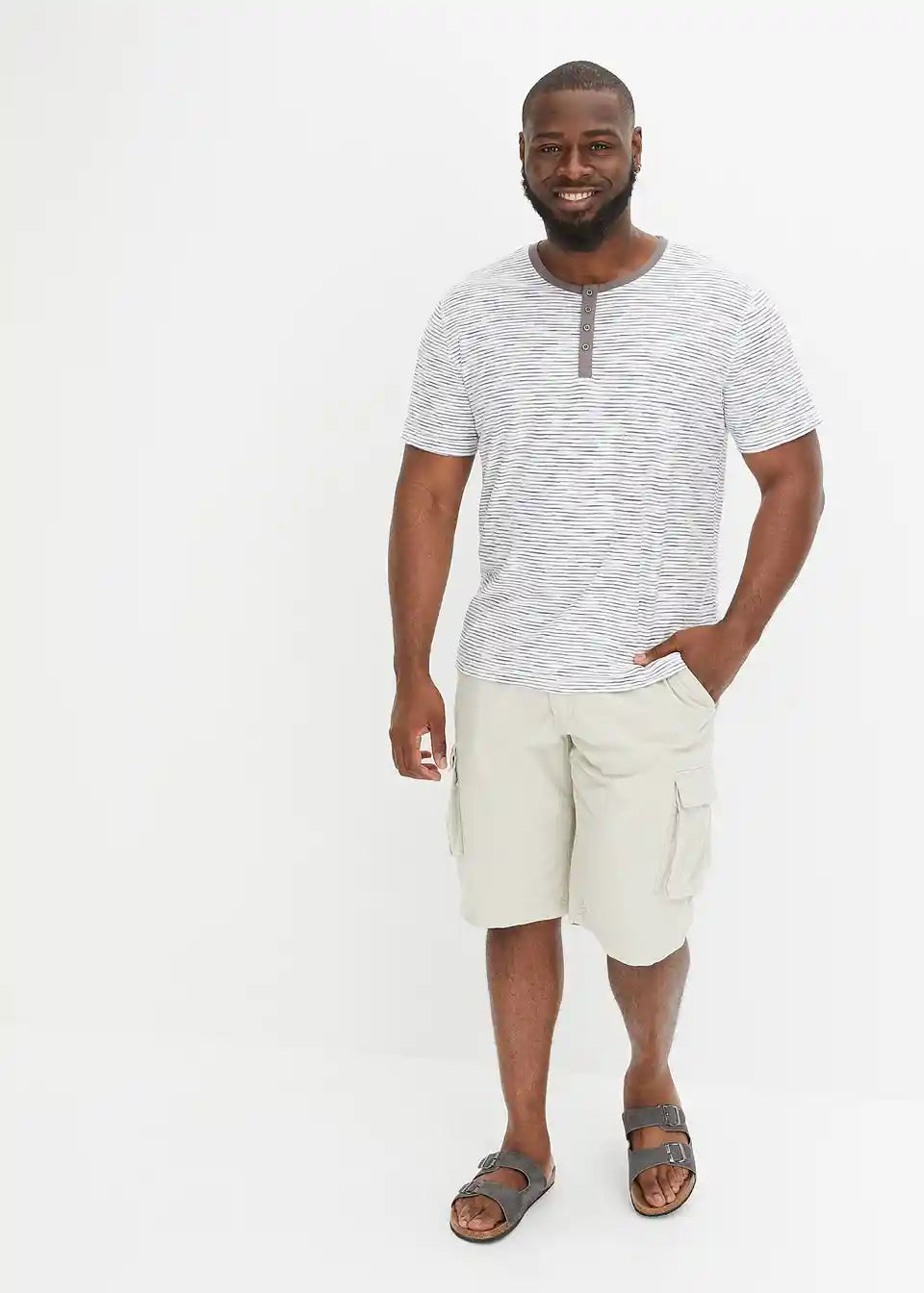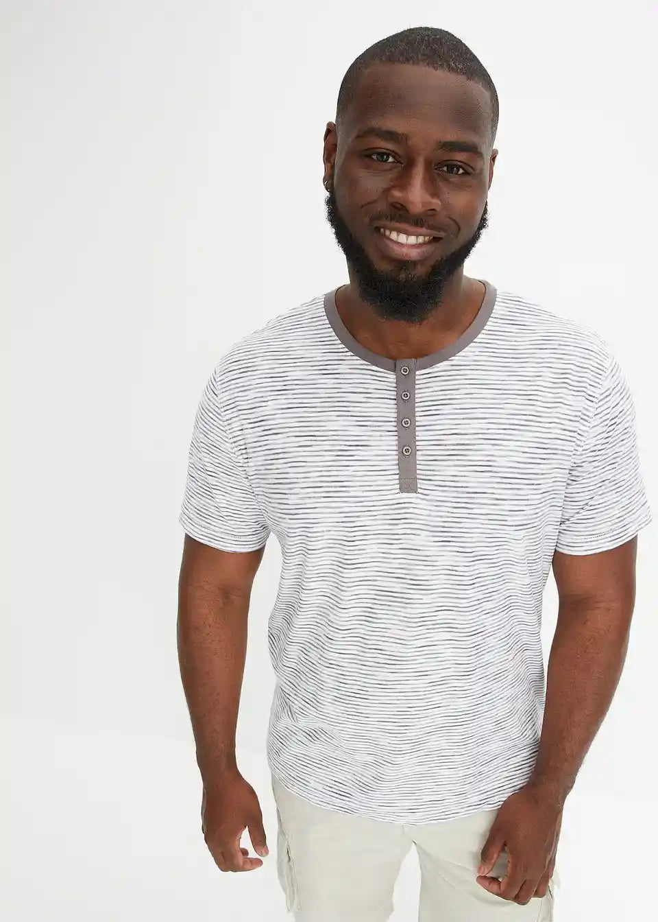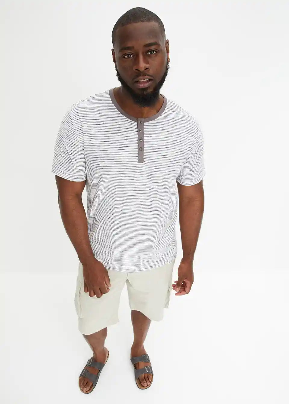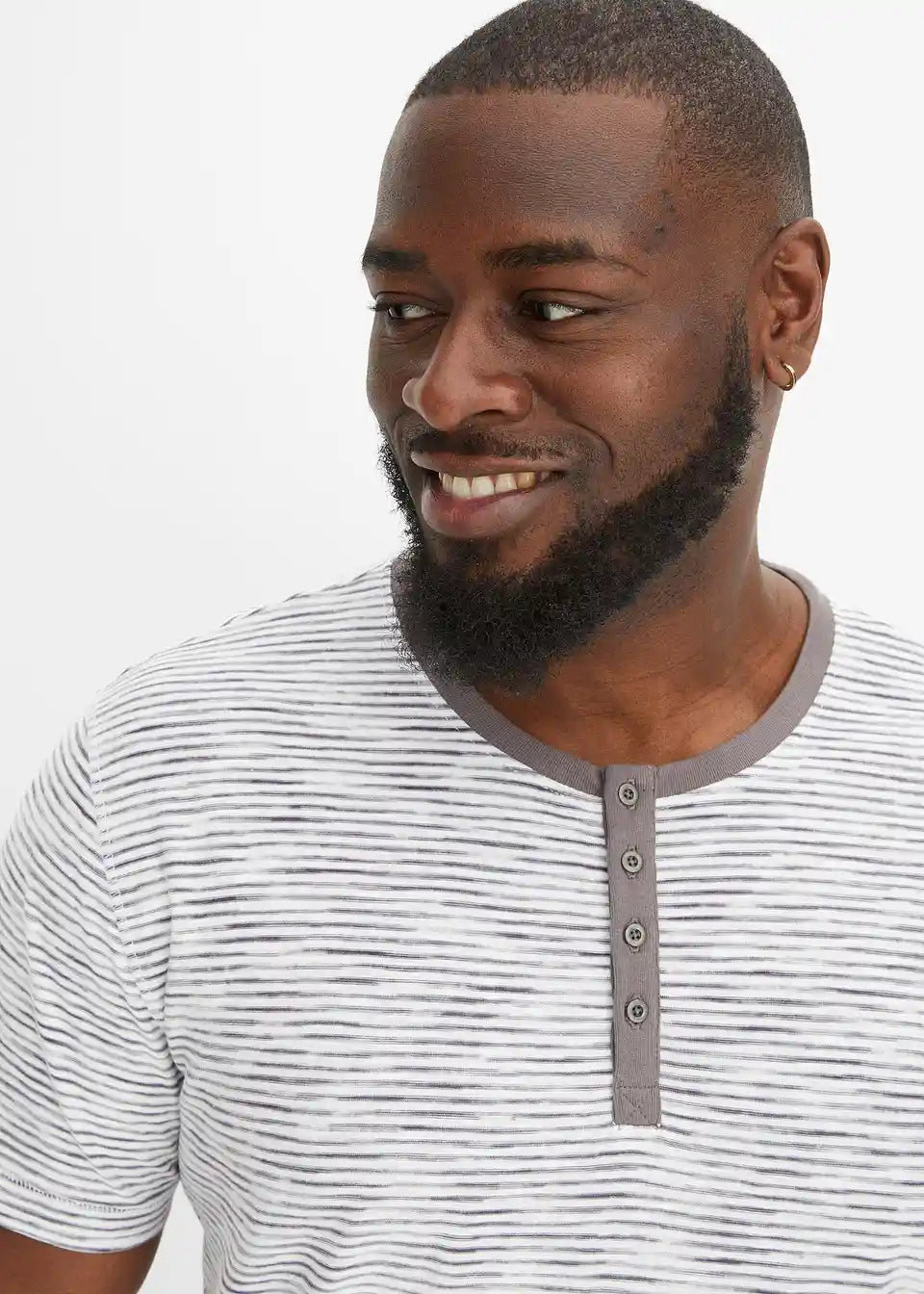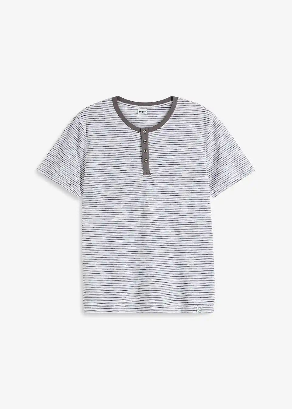 Majica z okroglim ovratnim izrezom z gumbki iz čistega bombaža s kratkimi rokavi