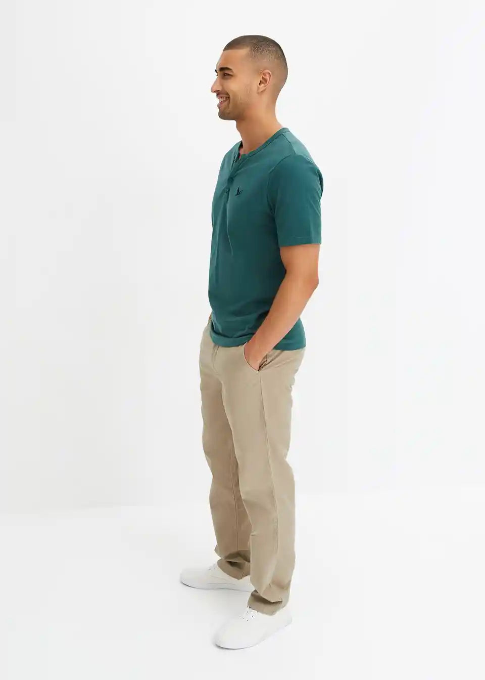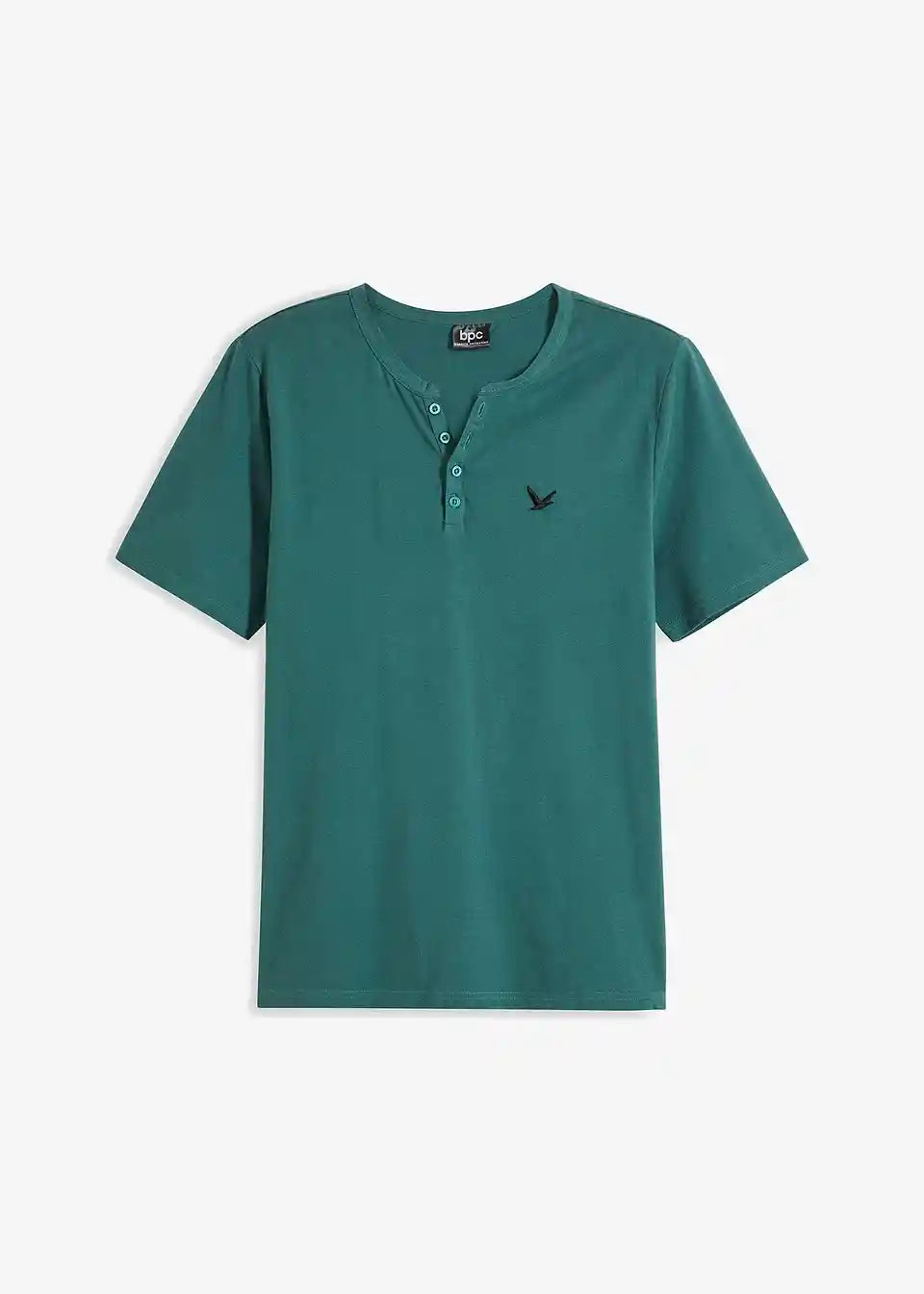 Majica z okroglim ovratnim izrezom z gumbki in kratkimi rokavi iz čistega ekološkega bombaža