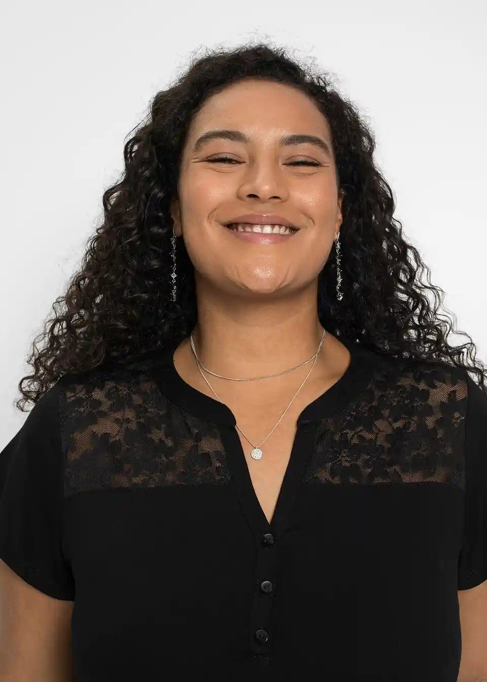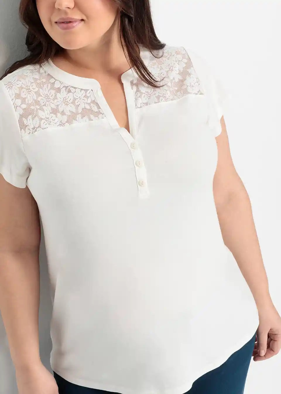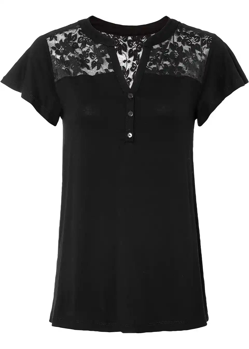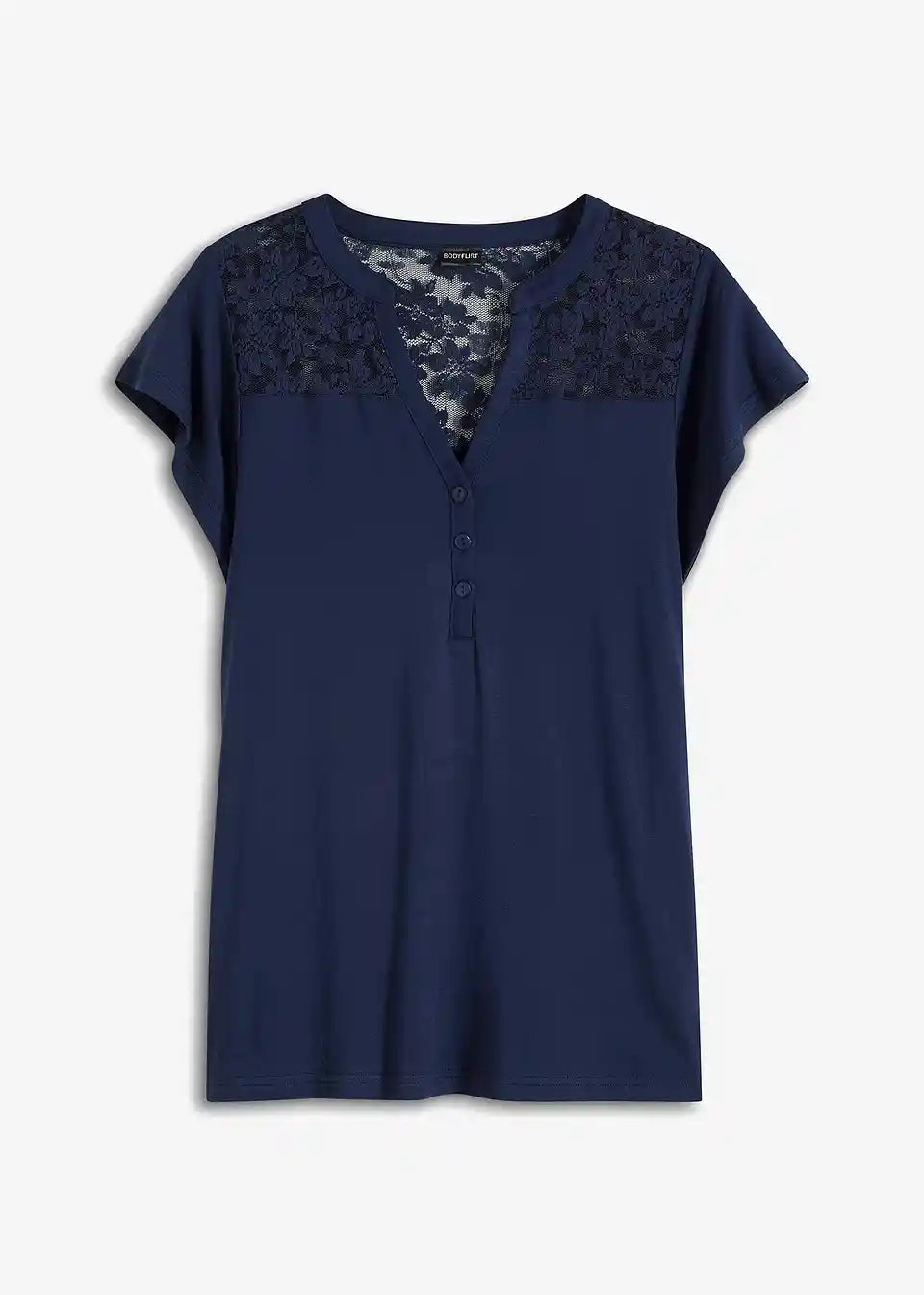 Majica z okroglim ovratnim izrezom z gumbki in čipko