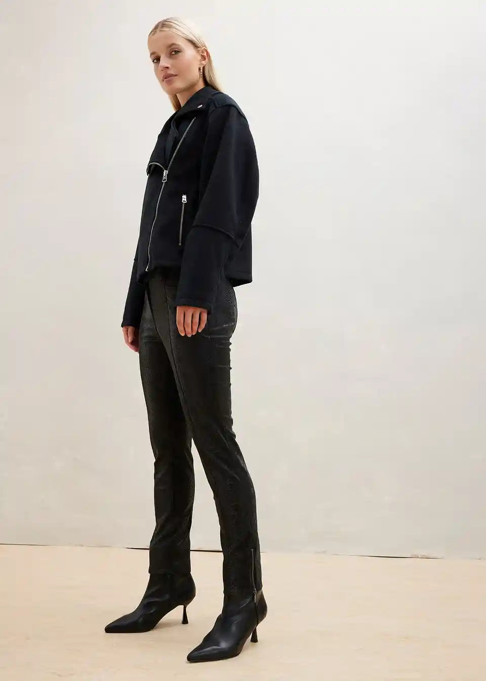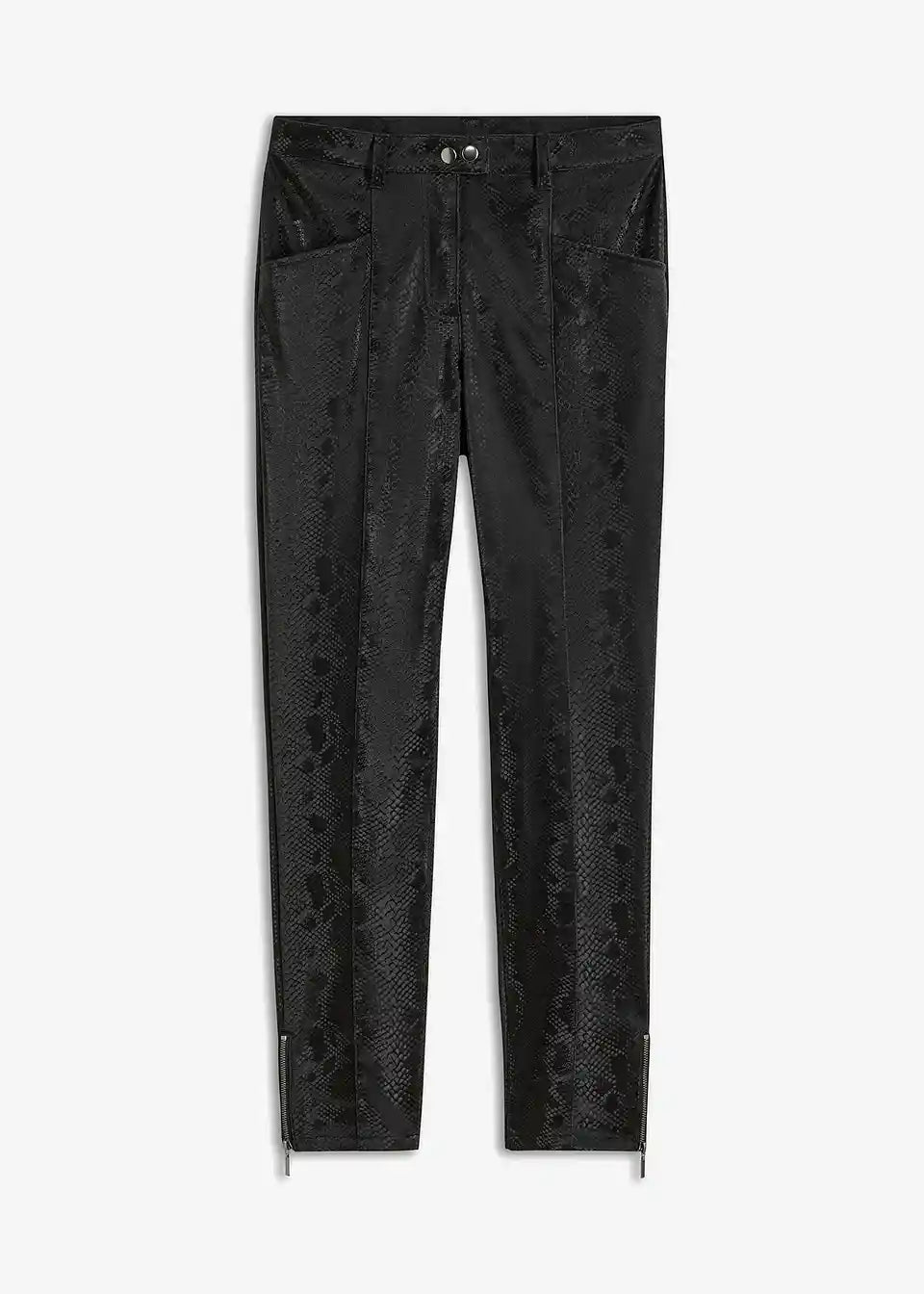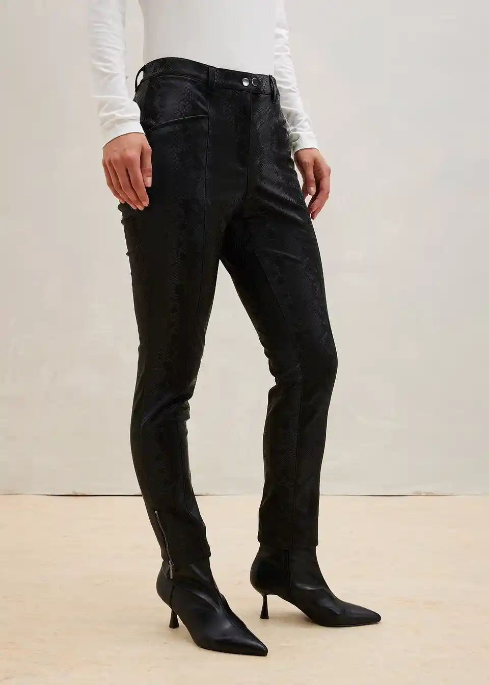 Vsakodnevno kombiniran usnjen/imitativen hlač z motivom kače