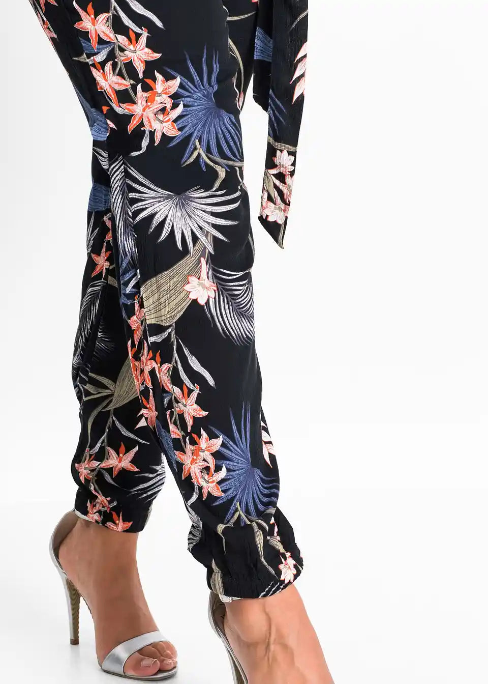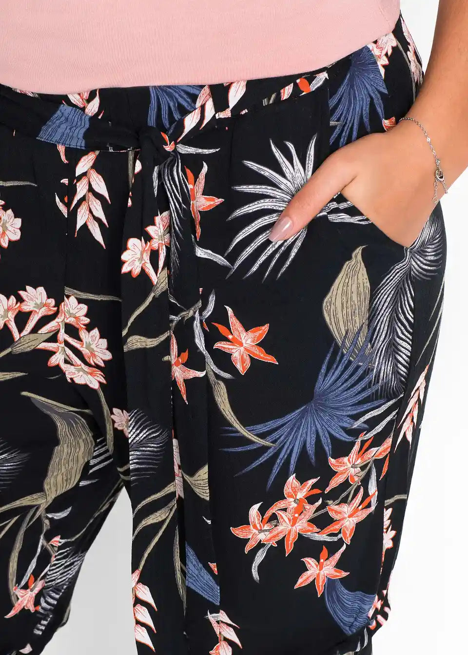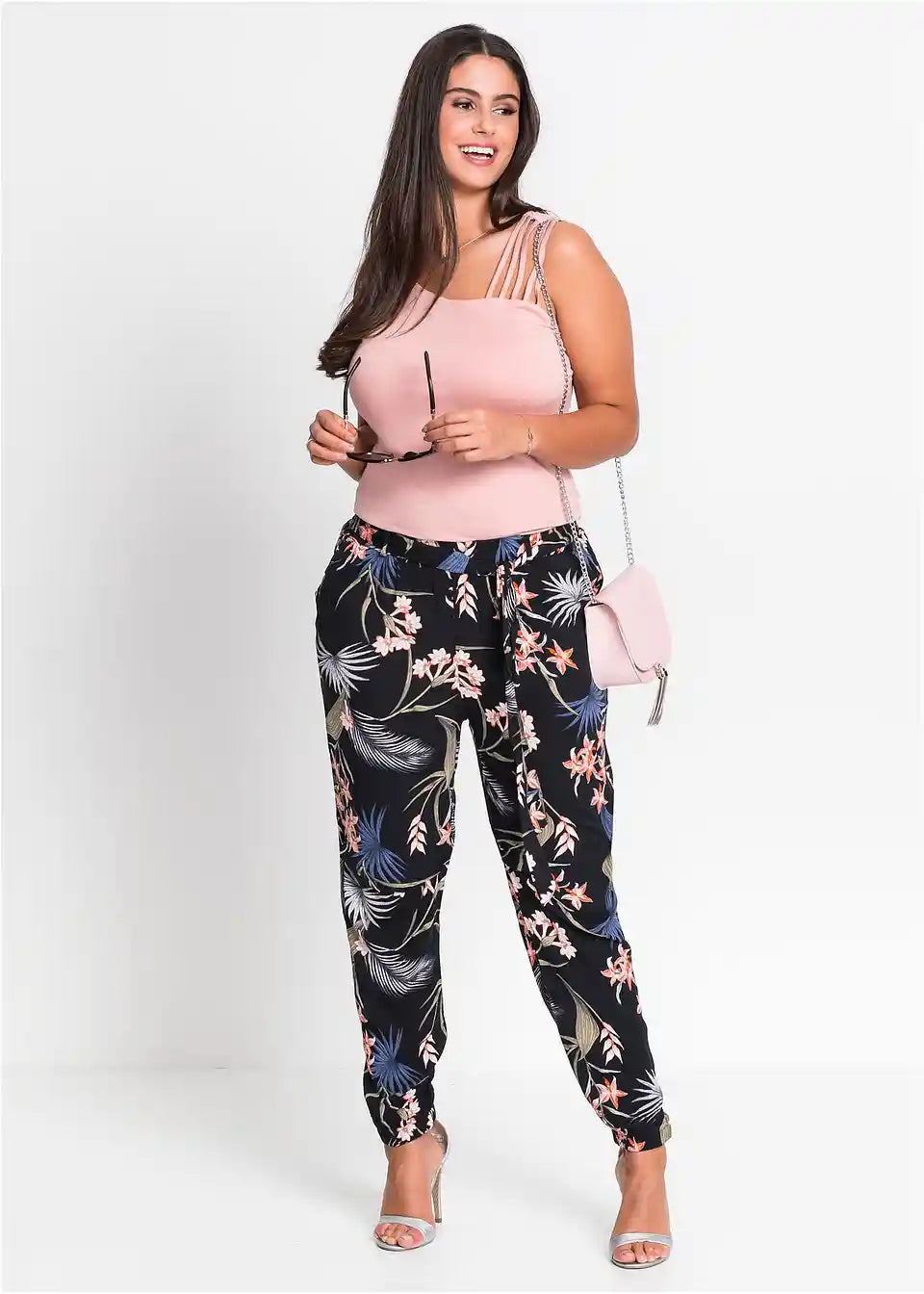 Zračna zasnova tega modela BODYFLIRT lepo objame noge. Široke hlače z lepim pasom in širokim pasničkom pridobijo privlačen videz z elastično gumico na koncu hlačnic. Dva stranska vstavljena žepa dopolnjujeta široke hlače. Ohlapno bluzasto majico in sandale lahko združite s tem čudovitim kosom za minimalističen, a stilski videz. Nekoliko bolj modno delujejo s preprostim topom in opaznim etno nakitom.