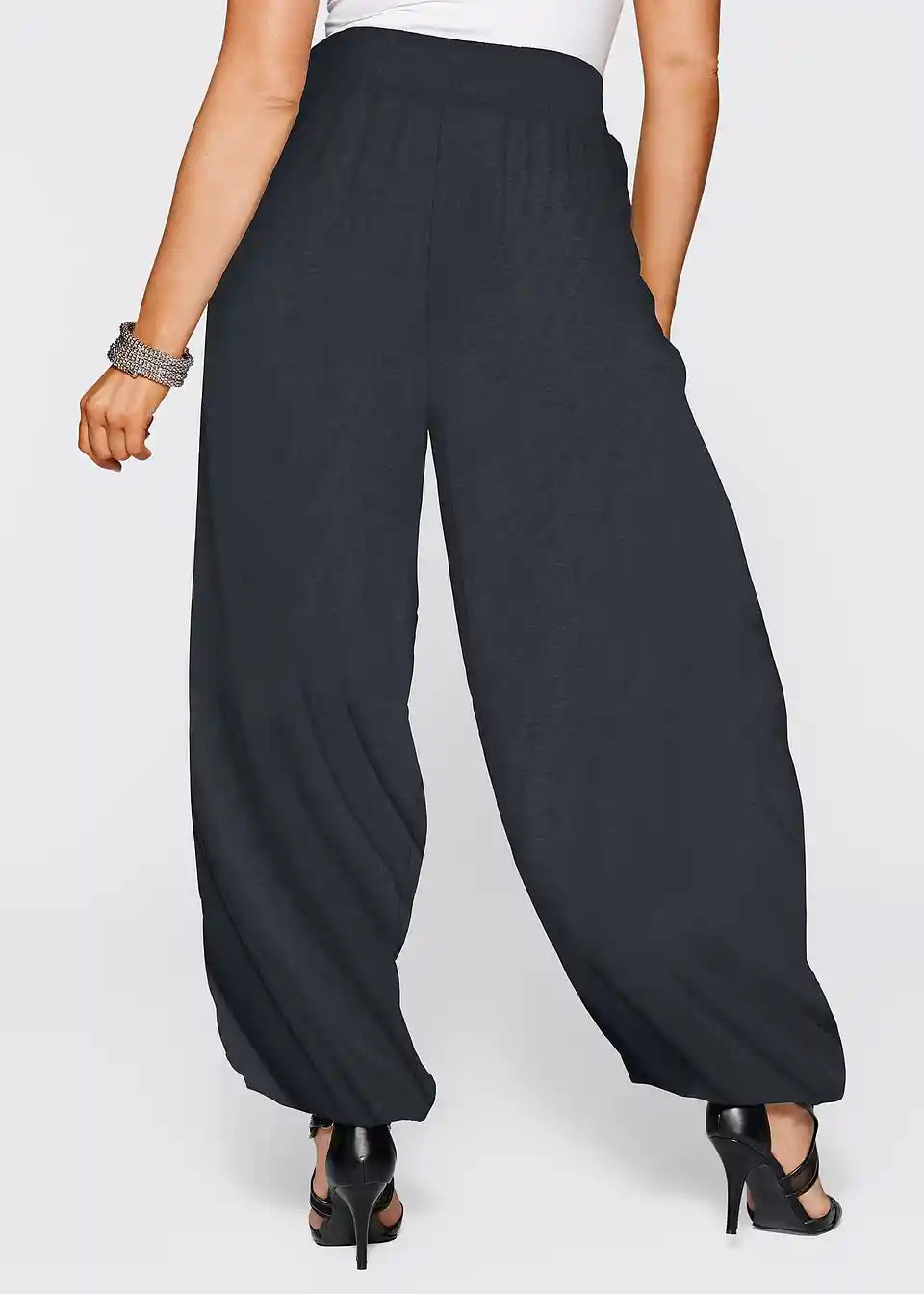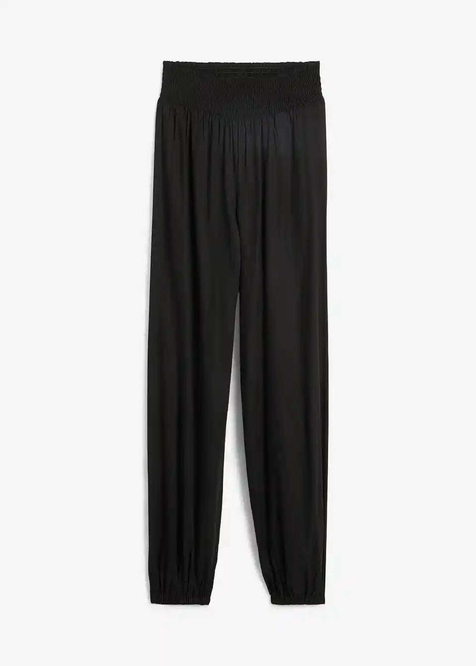 Mehko padajoče hlače z nabranim pasom in nabranimi robovi
