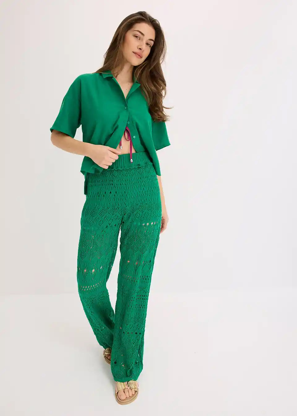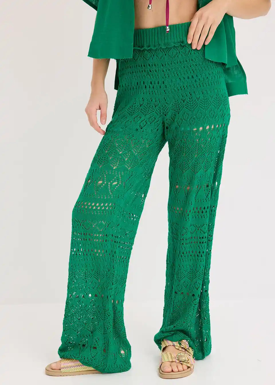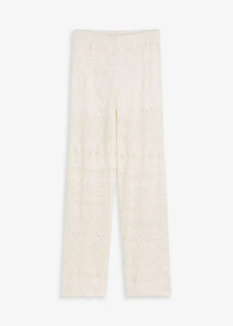 Hlače brez zapenjanja z luknjičasto pletenim vzorcem