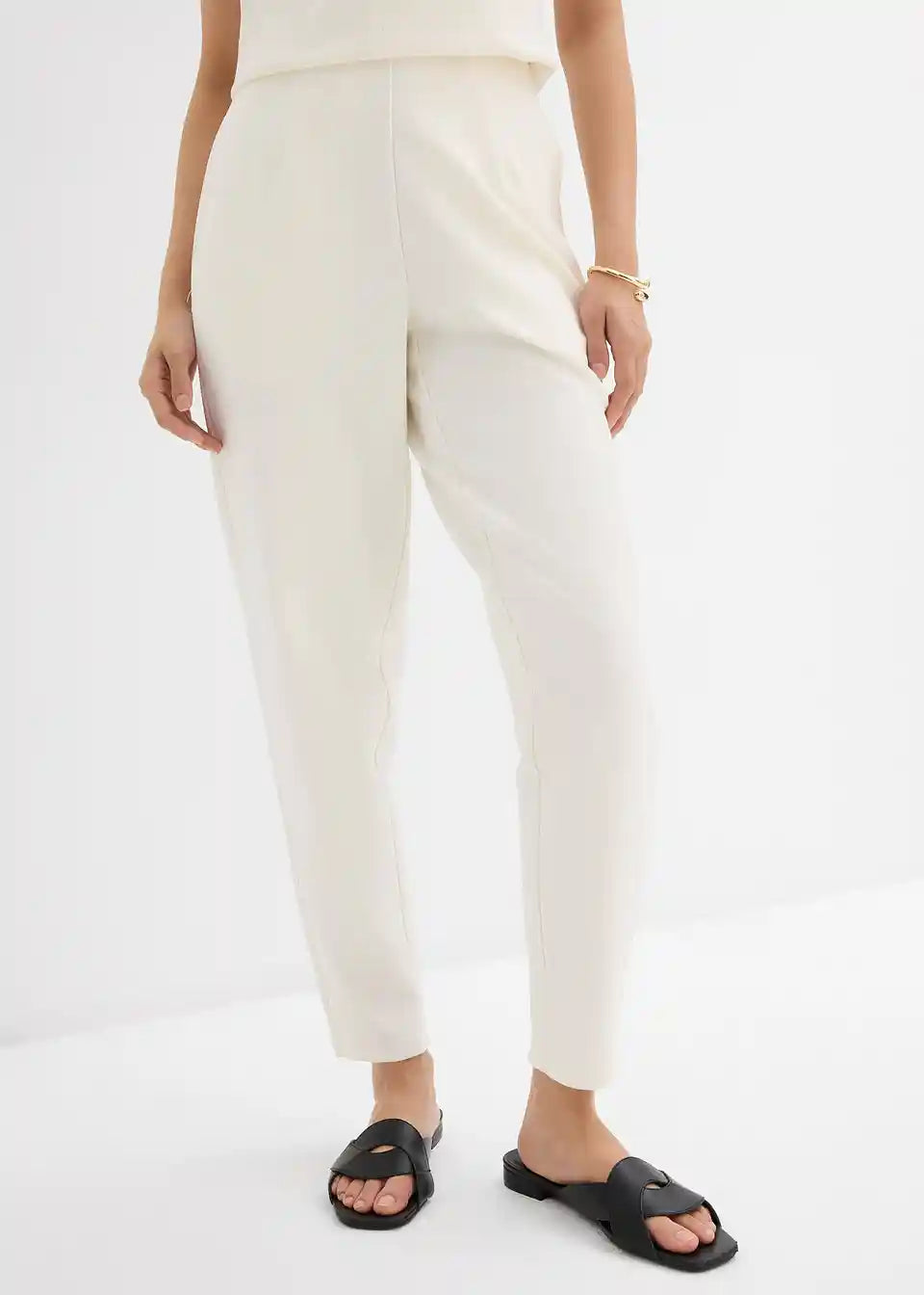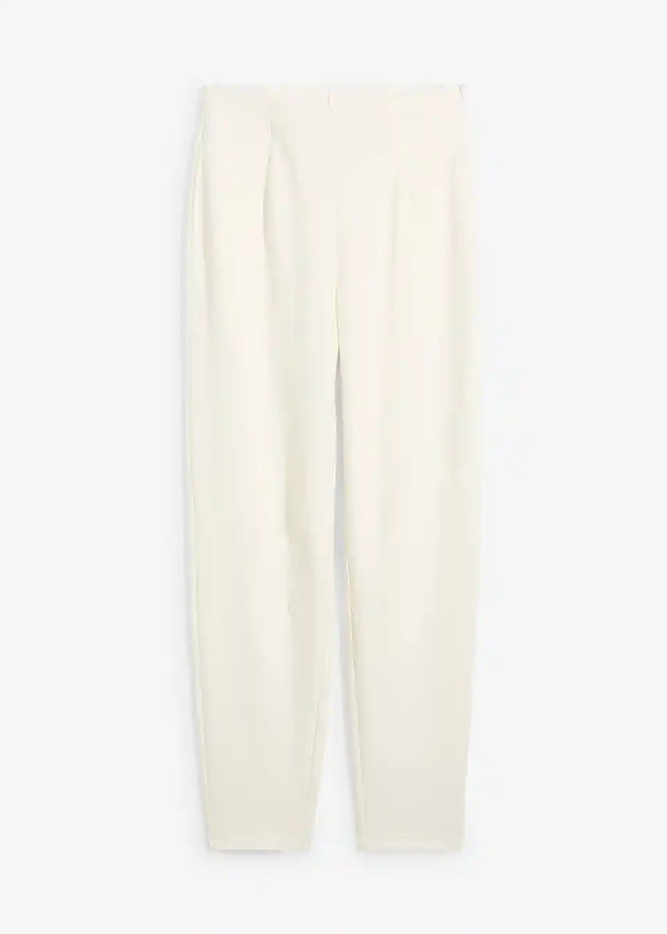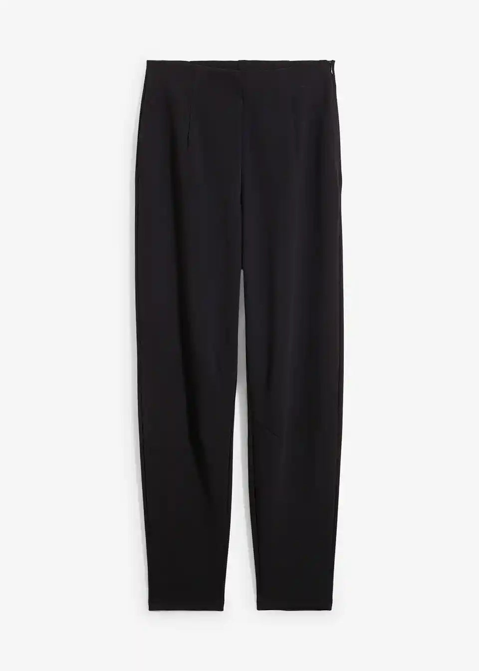 Hlače z visokim pasom, všitimi gubami spredaj, stranskimi žepi ter s stransko skrito zadrgo