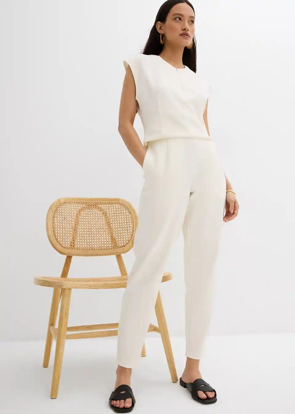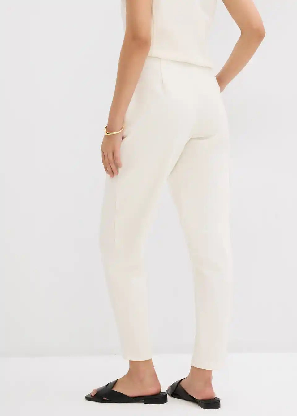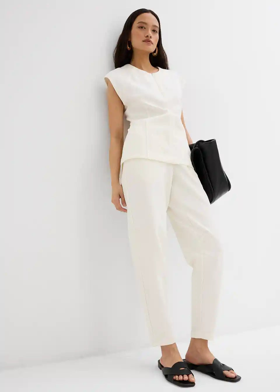 Hlače z visokim pasom, všitimi gubami spredaj, stranskimi žepi ter s stransko skrito zadrgo