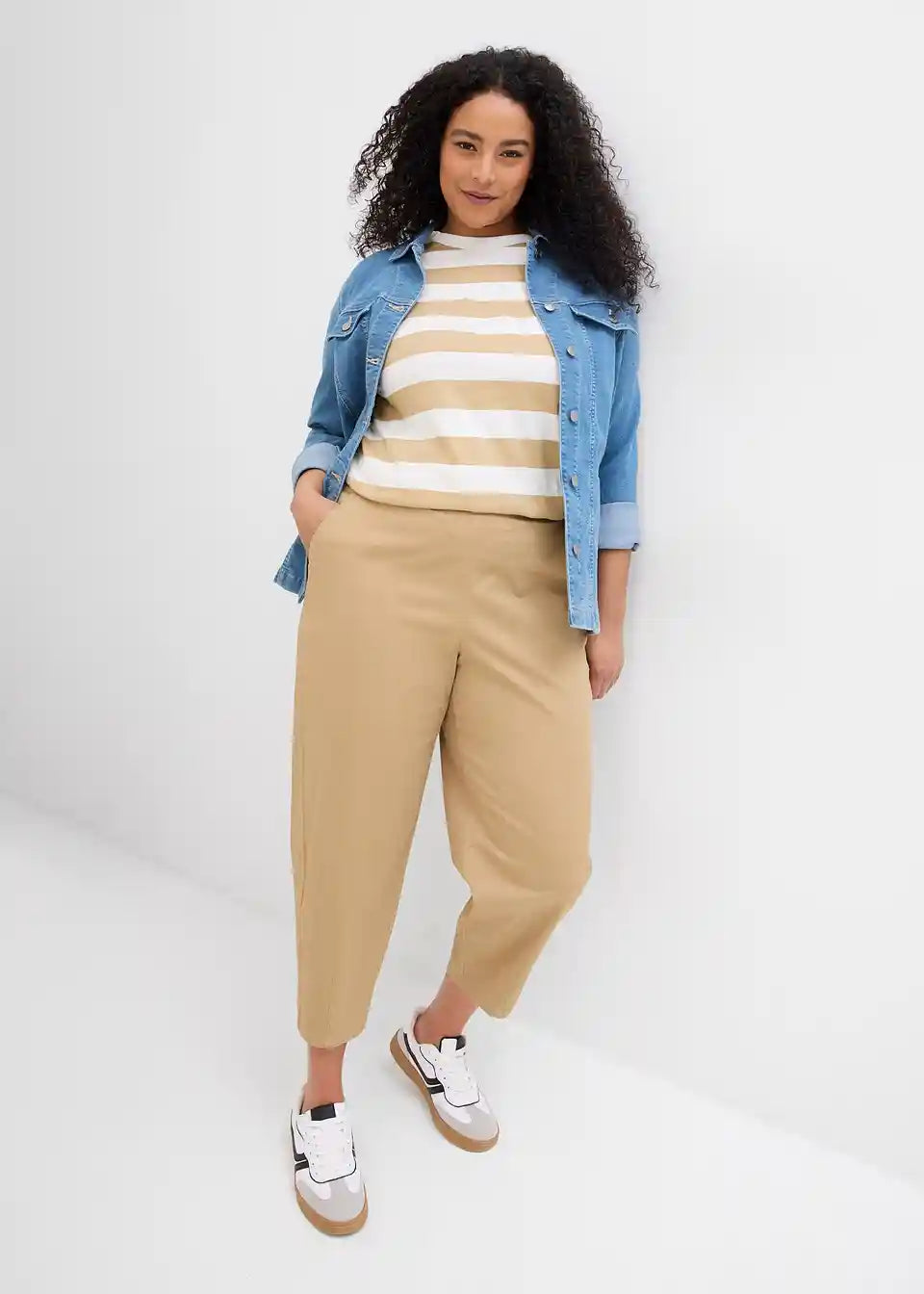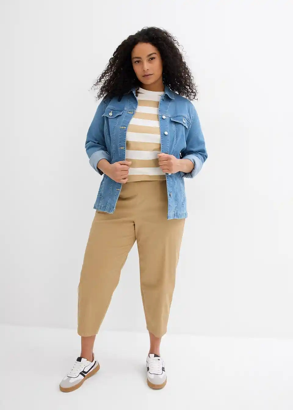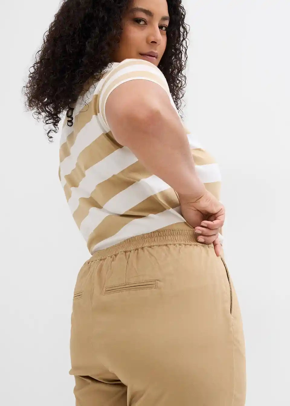 Posebnosti kroja:z oblikovalnimi šivi, za veliko udobja pri nošenju, z elastičnimi všitki za večjo svobodo pri gibanju, efektom vitkosti zaradi vnaprej pomaknjenih šivov, za zakriti trebušček, zadnjico in boke ter udobje na stegnih