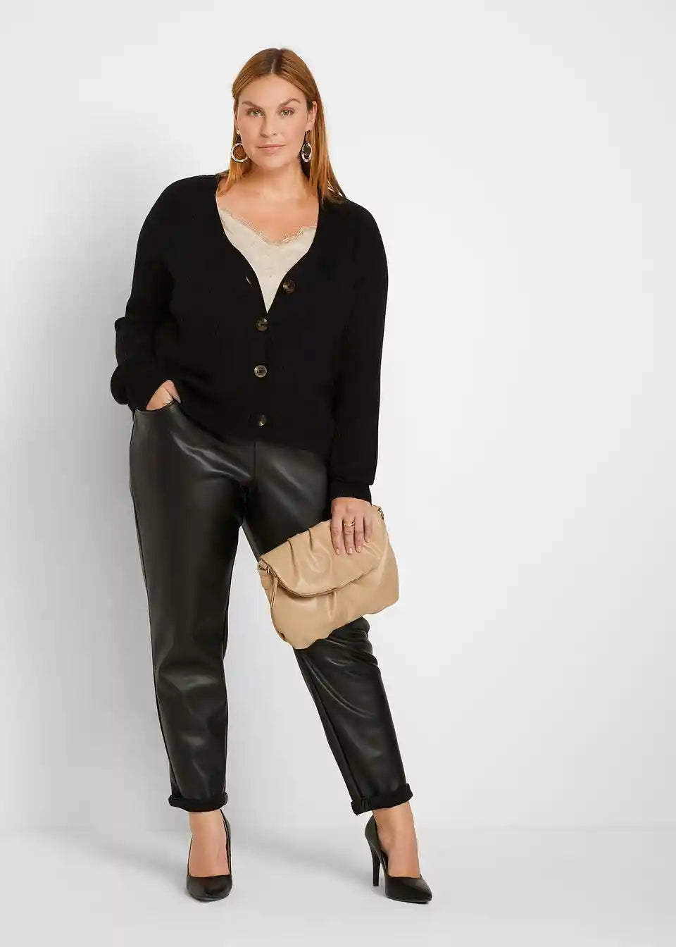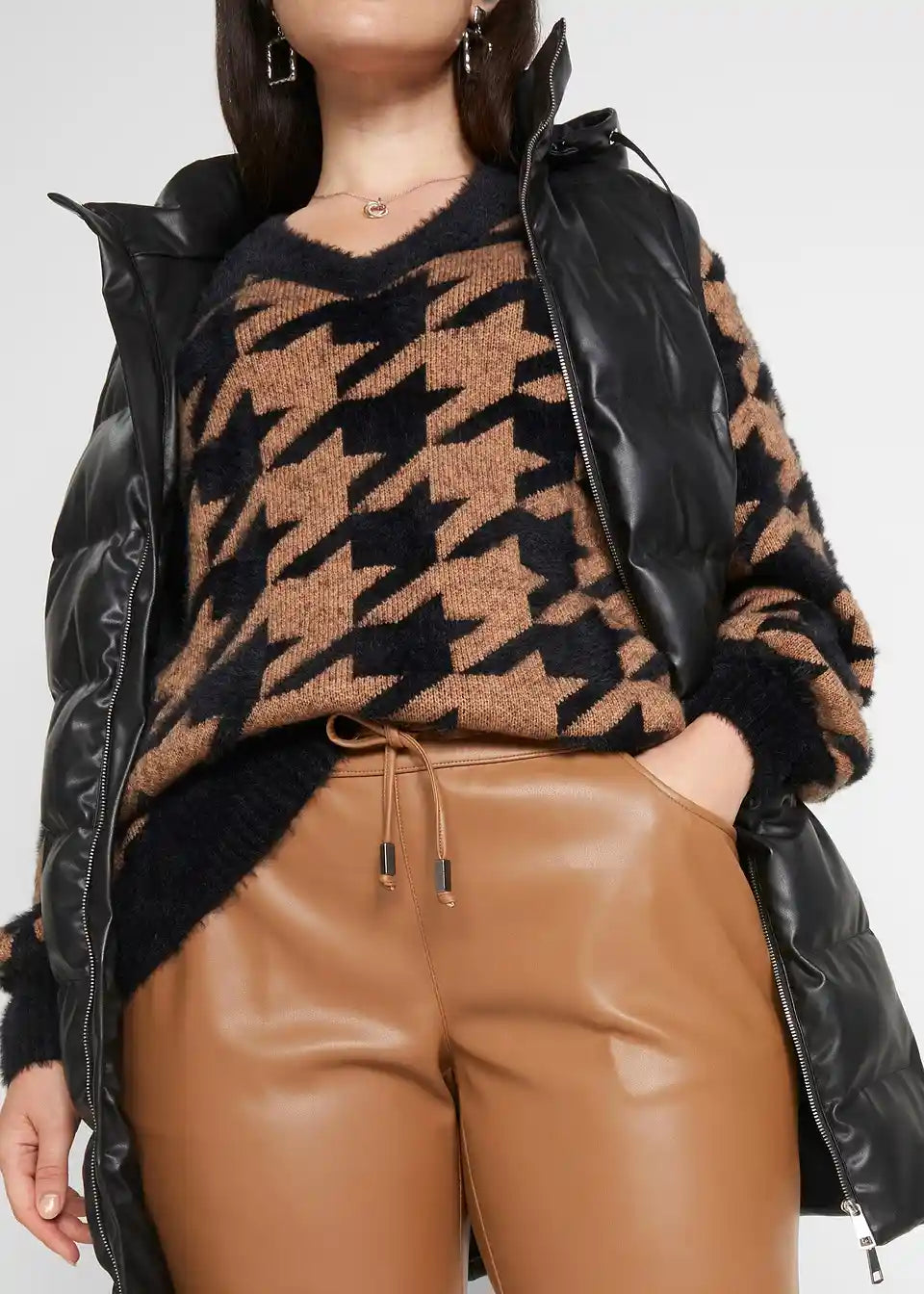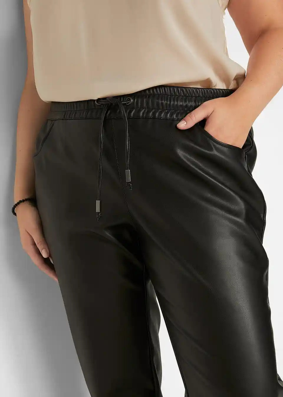 Hlače brez zapenjanja iz umetnega usnja