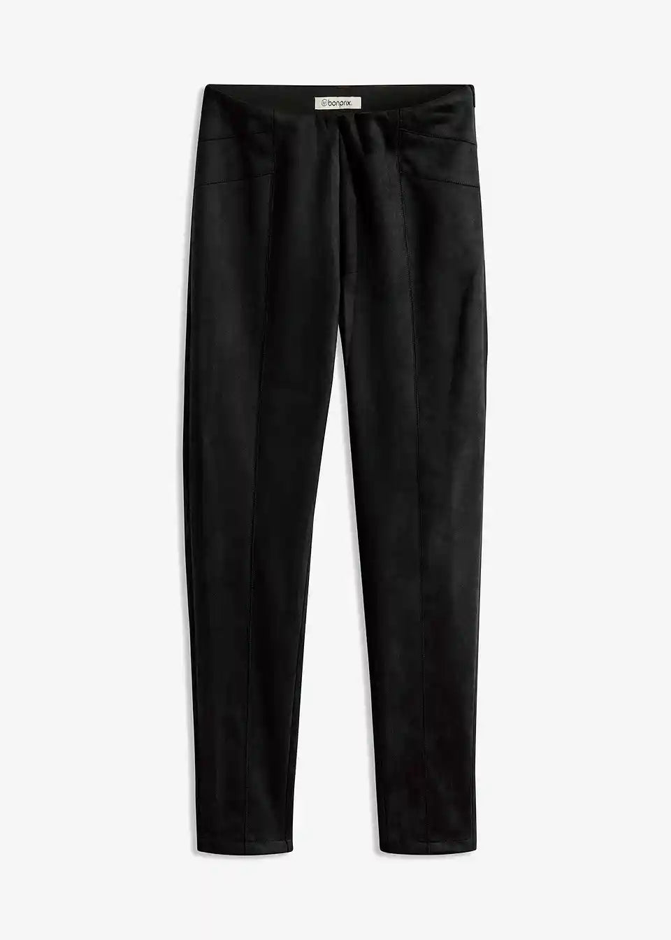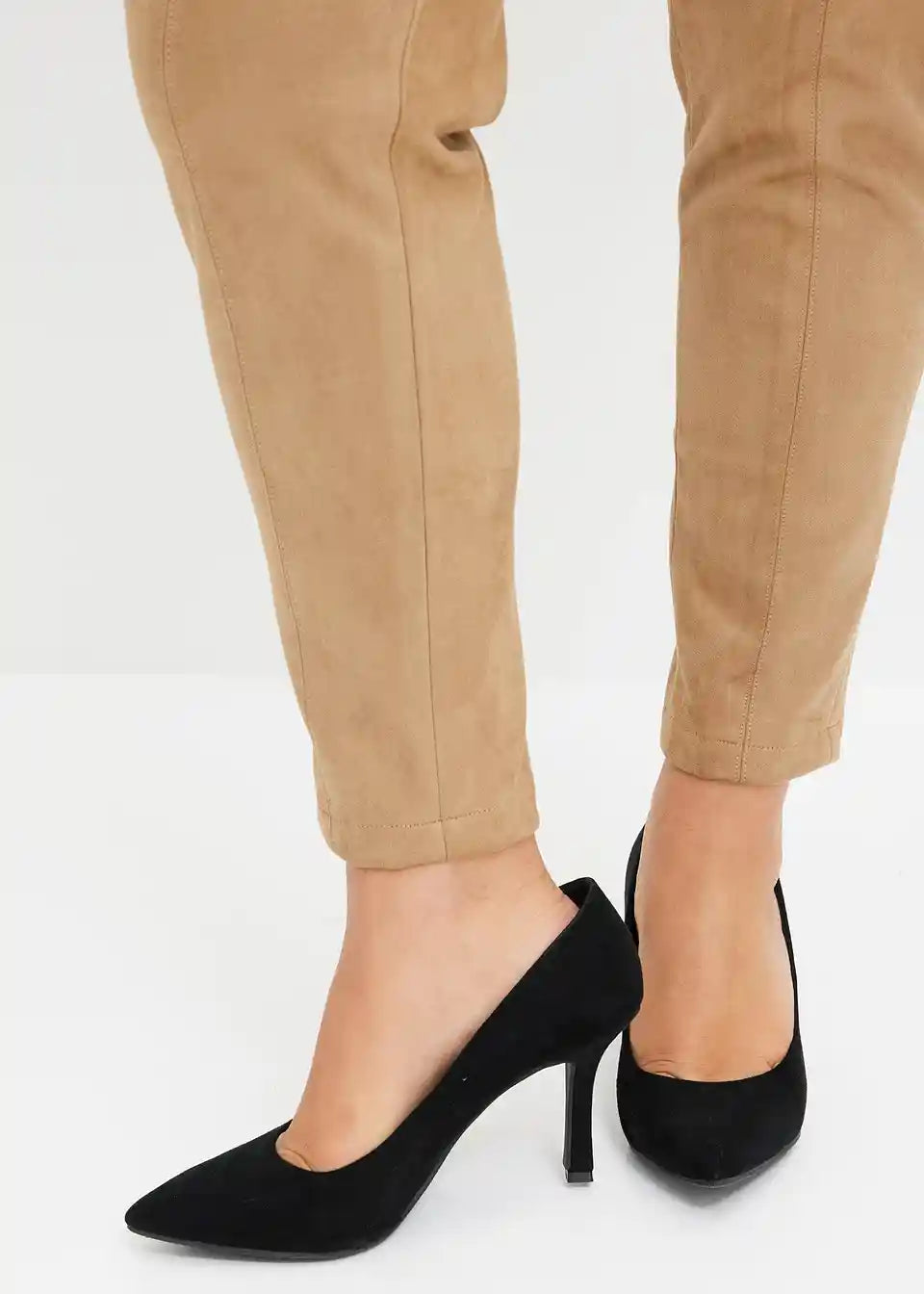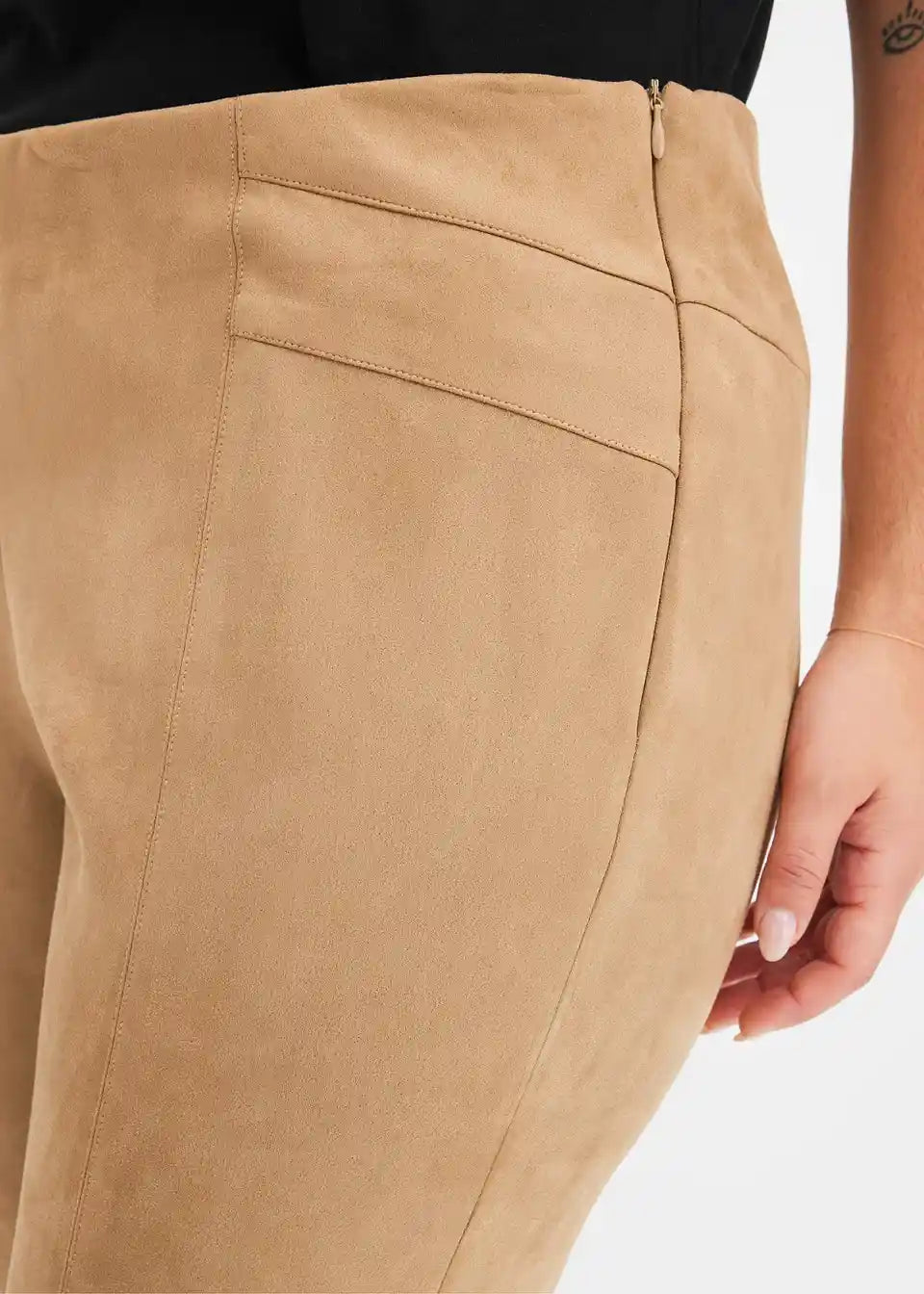 Hlače iz umetnega velurnega usnja z udobnim pasom