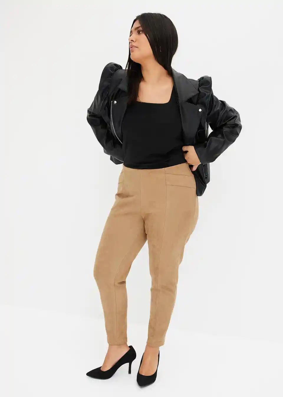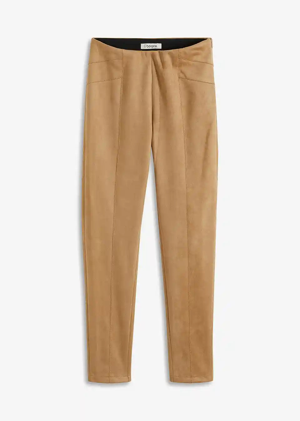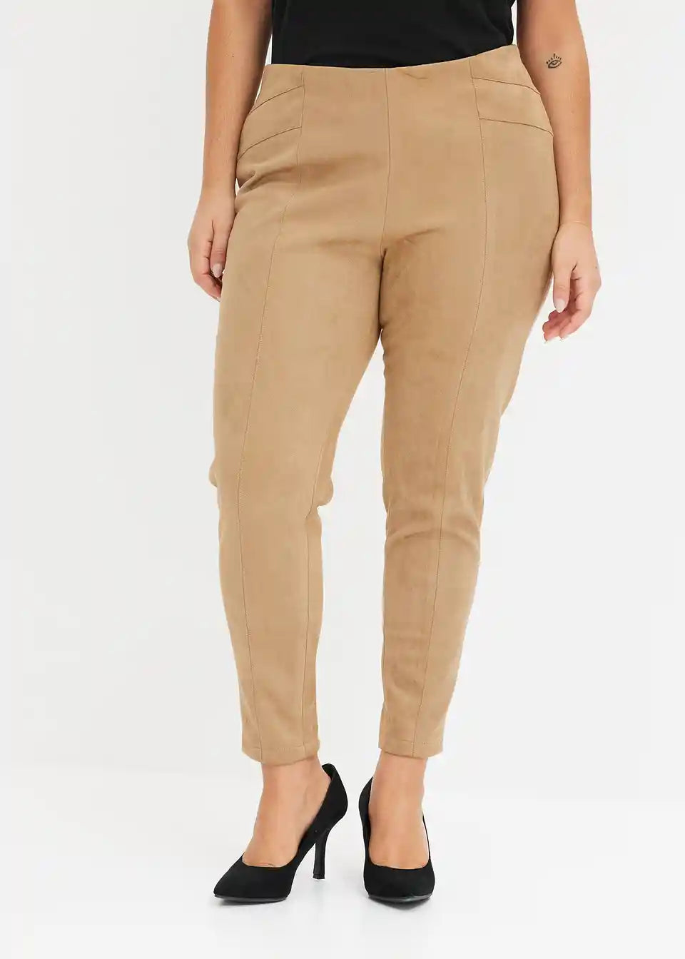Hlače iz umetnega velurnega usnja z udobnim pasom