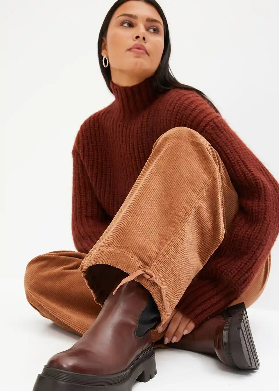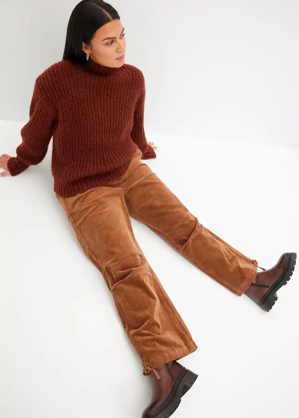 Priložnostne padalske hlače iz kordnega žameta iz elastične mešanice bombaža z udobnim pasom