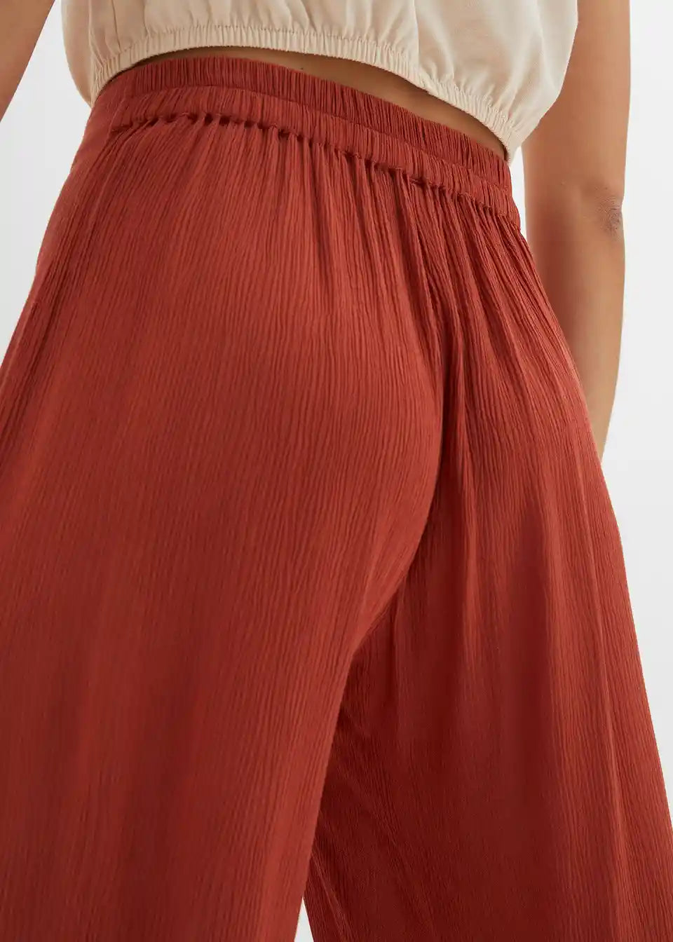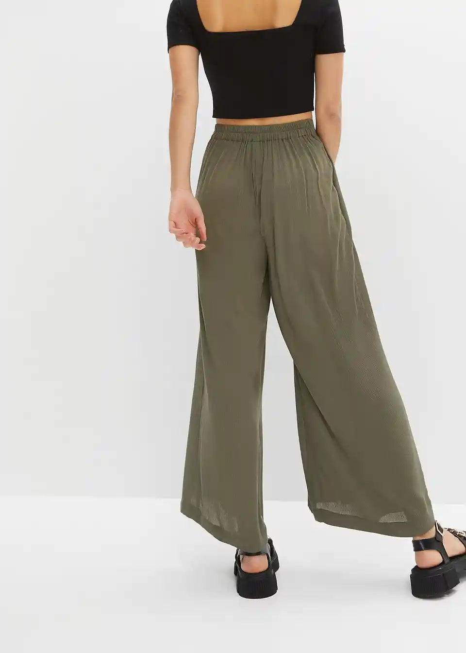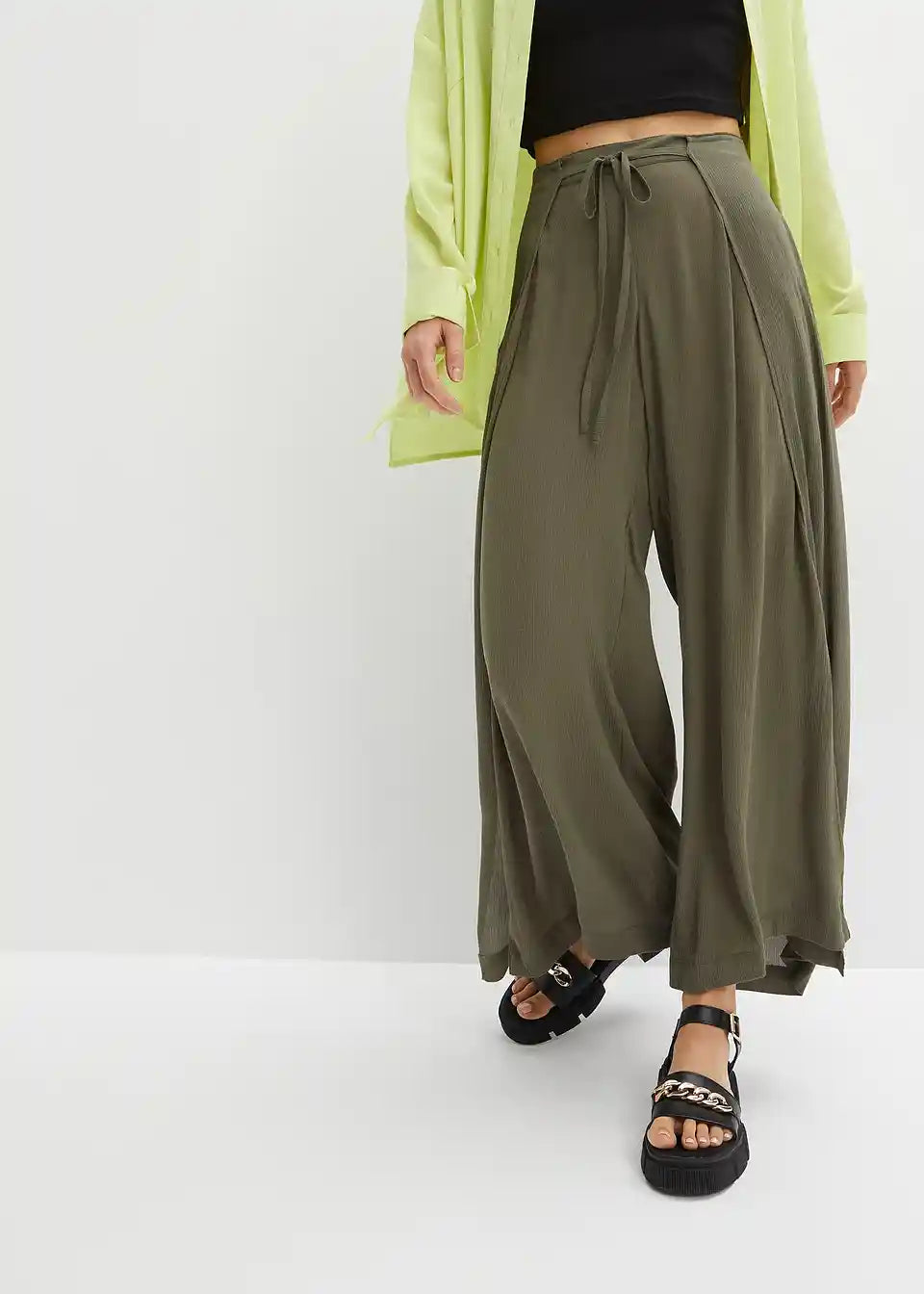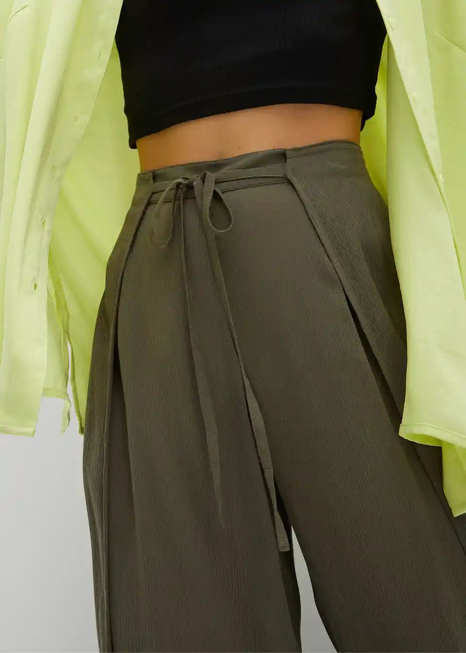 Priložnostne hlače s širokimi hlačnicami in zavezovanjem