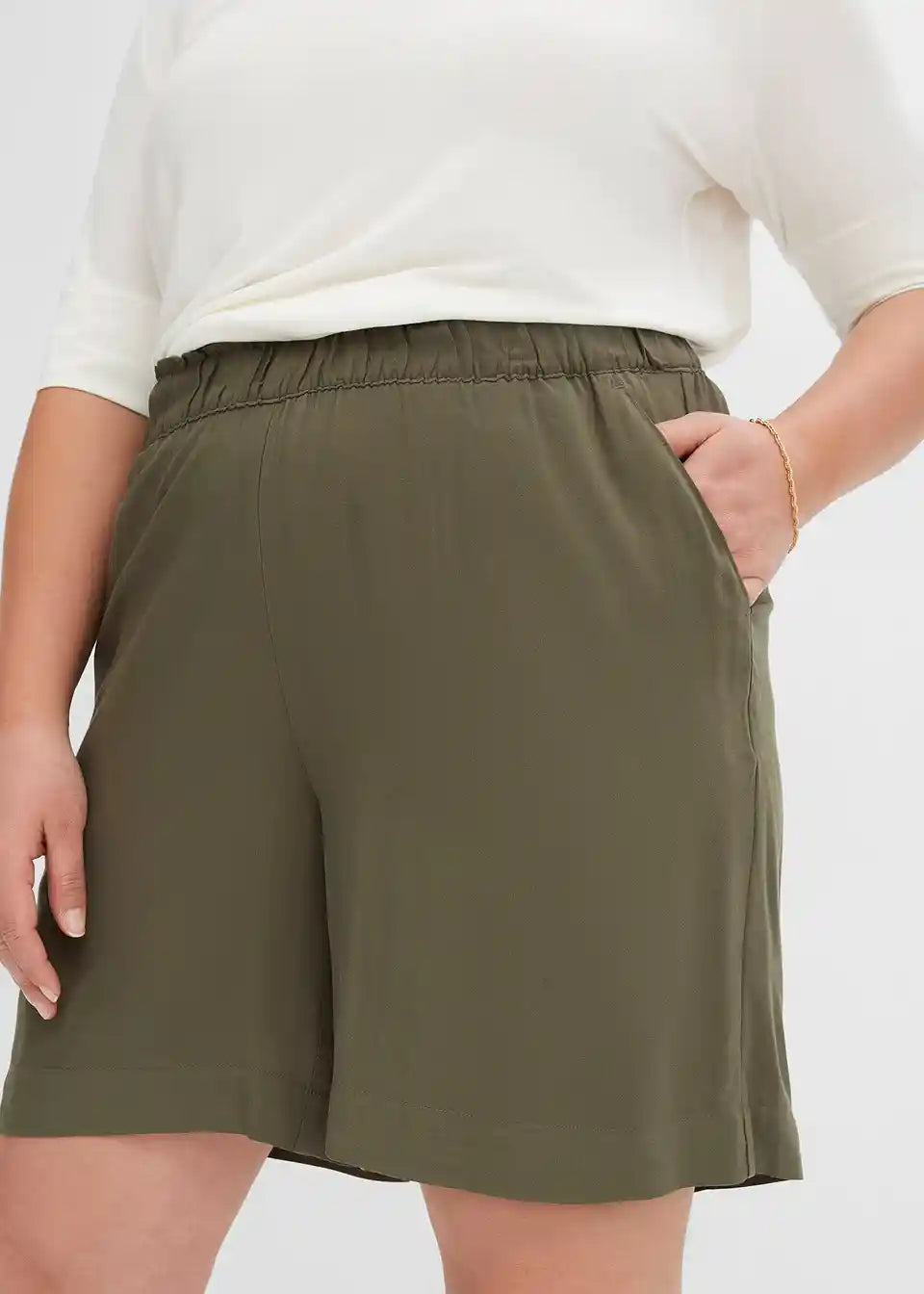 Prisrčne hlače iz trajnostne viskoze z igrivimi naborki.