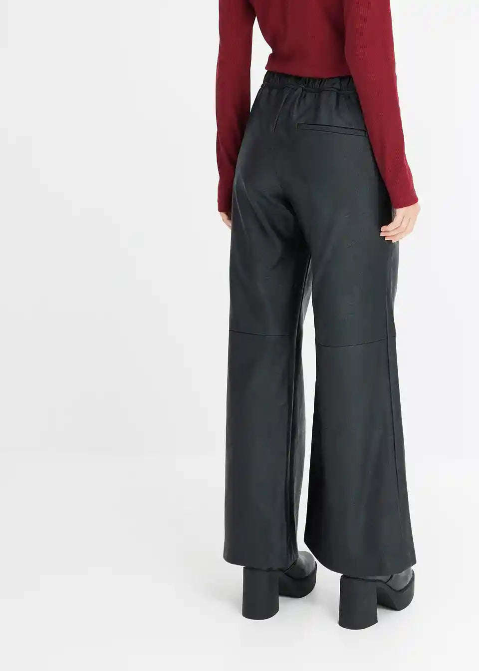 Razširjene hlače iz umetnega usnja z udobnim pasom in detajlom zavezovanja