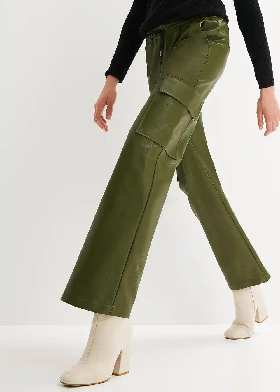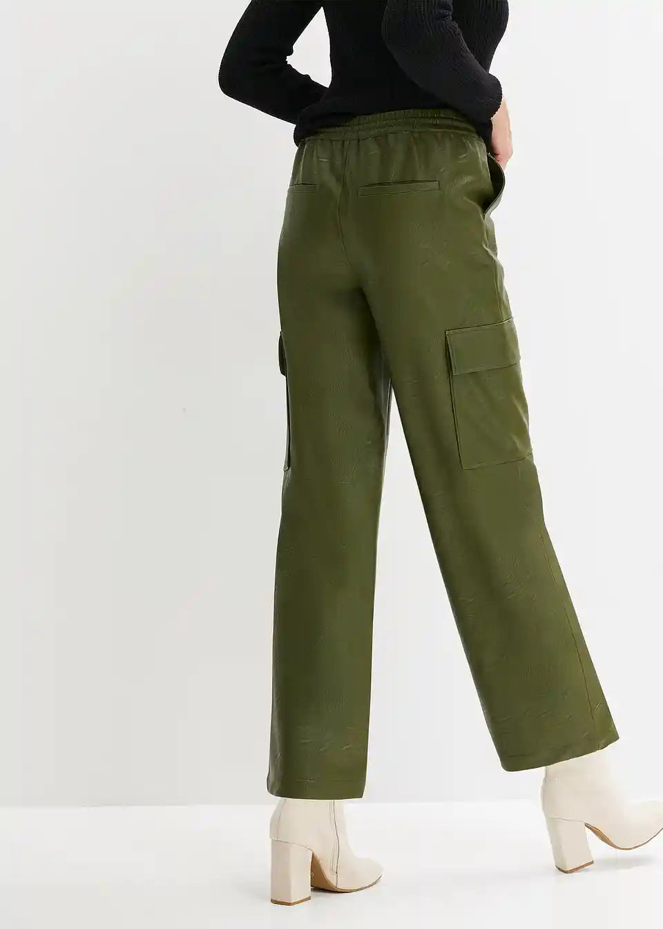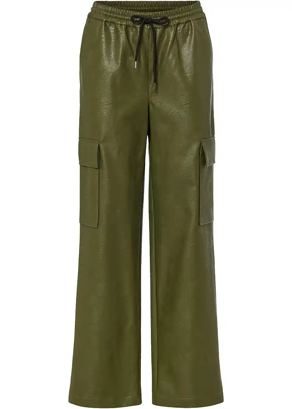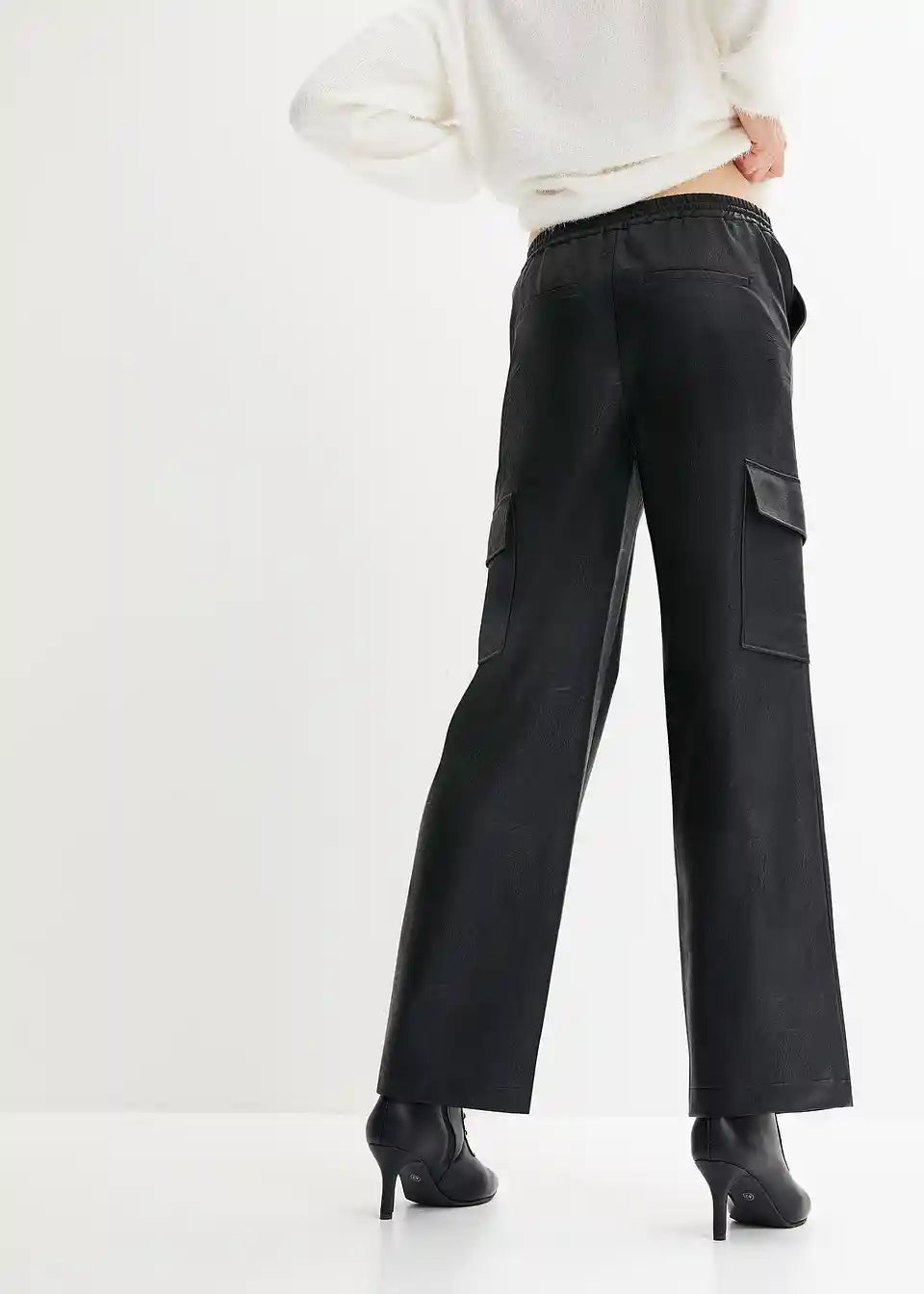 trendovske hlače iz umetnega usnja z elastičnim pasom